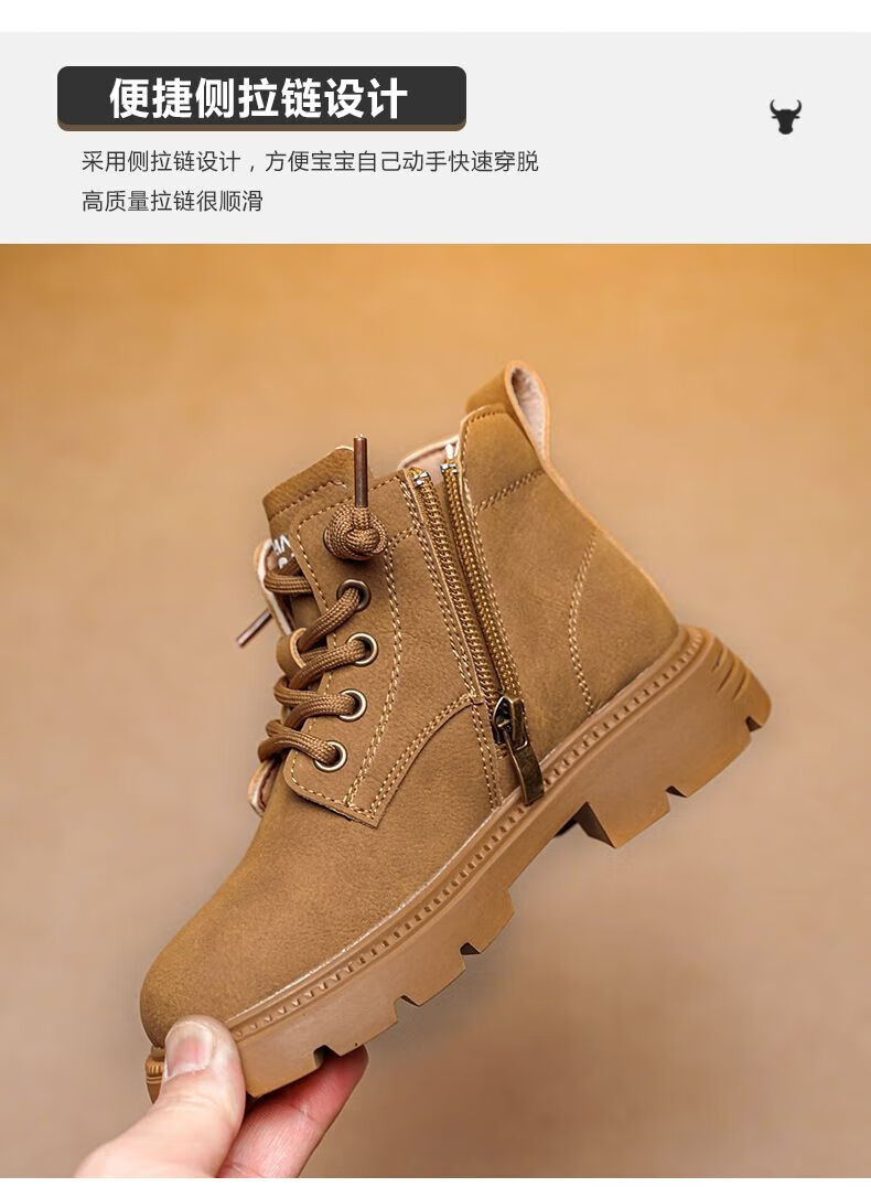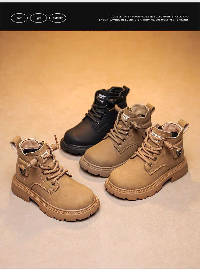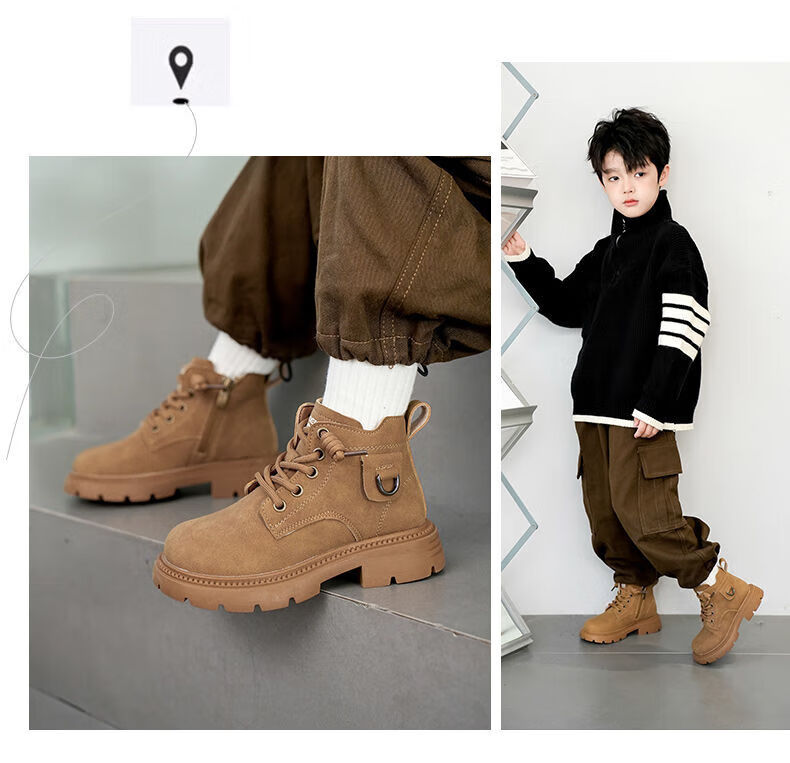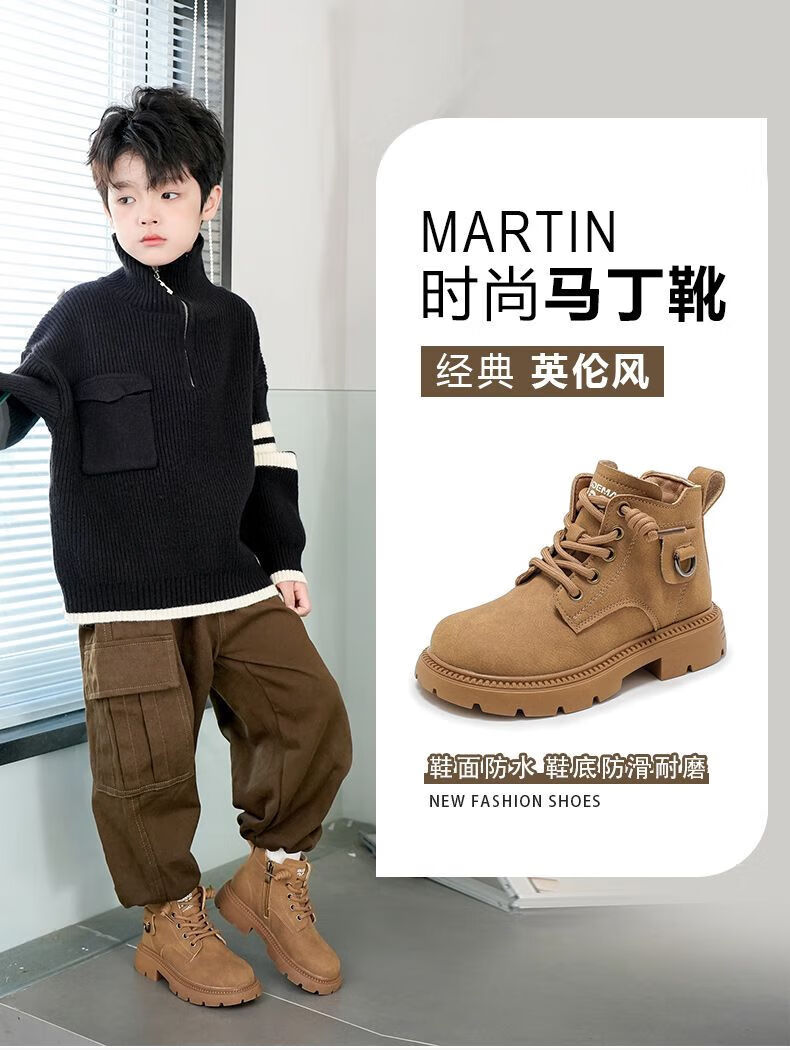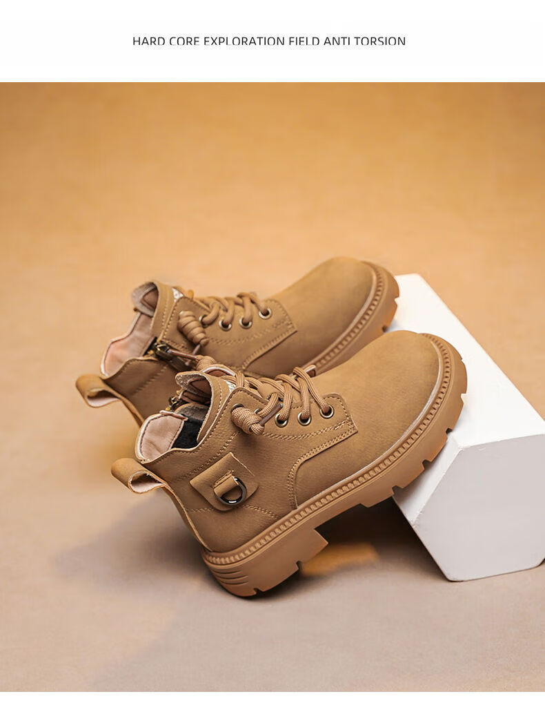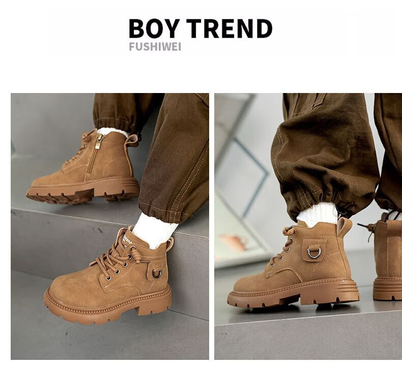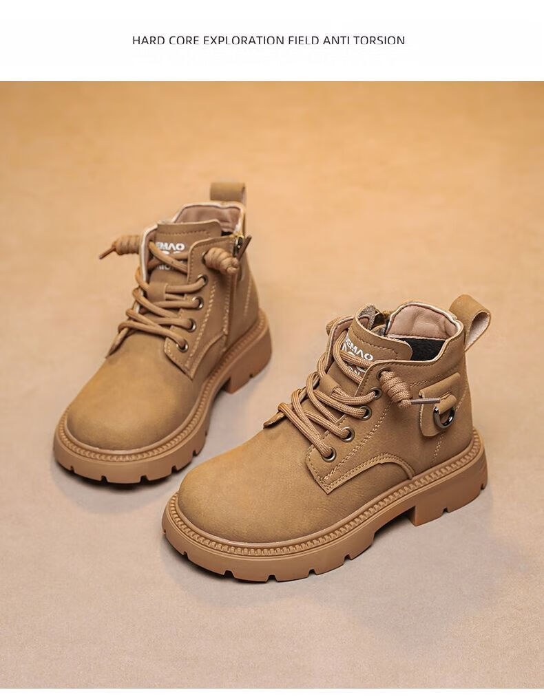 LiYunHouSe boys' Martin boots, real cowhide, fashionable velvet short boots, autumn and winter new style 2025 British style big children's shoes, handsome 25 new models - upgraded version - cow split leather yellow - no velvet, size 37, inner length 22.8cm