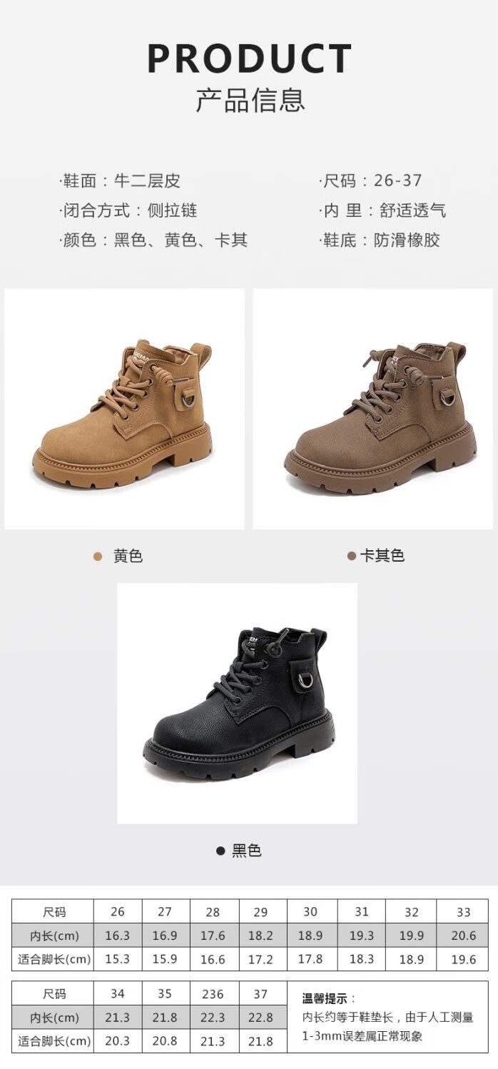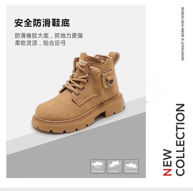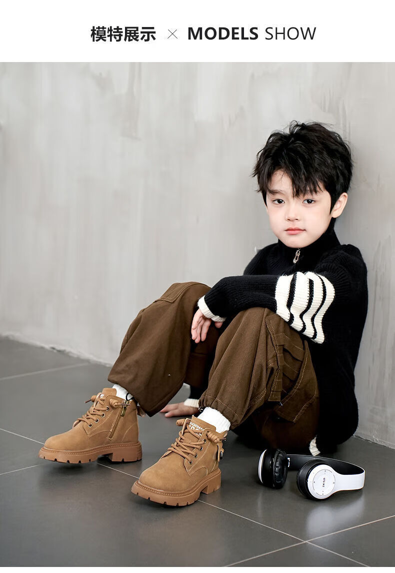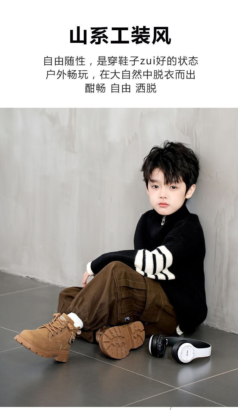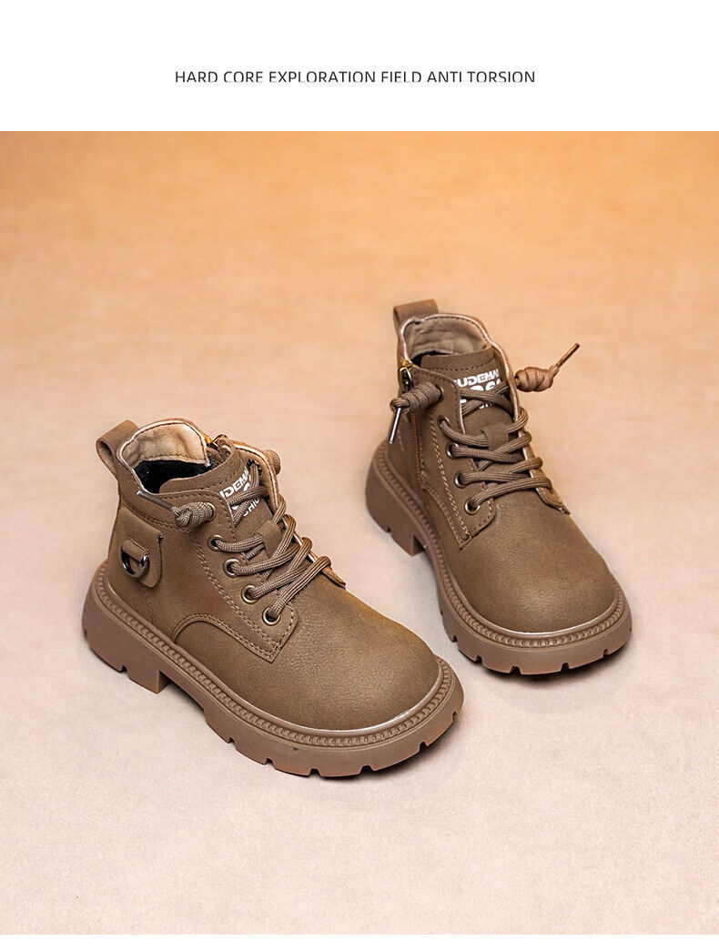 LiYunHouSe boys' Martin boots, real cowhide, fashionable velvet short boots, autumn and winter new style 2025 British style big children's shoes, handsome 25 new models - upgraded version - cow split leather yellow - no velvet, size 37, inner length 22.8cm