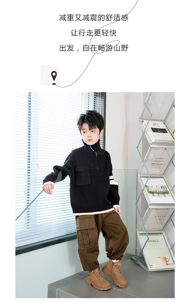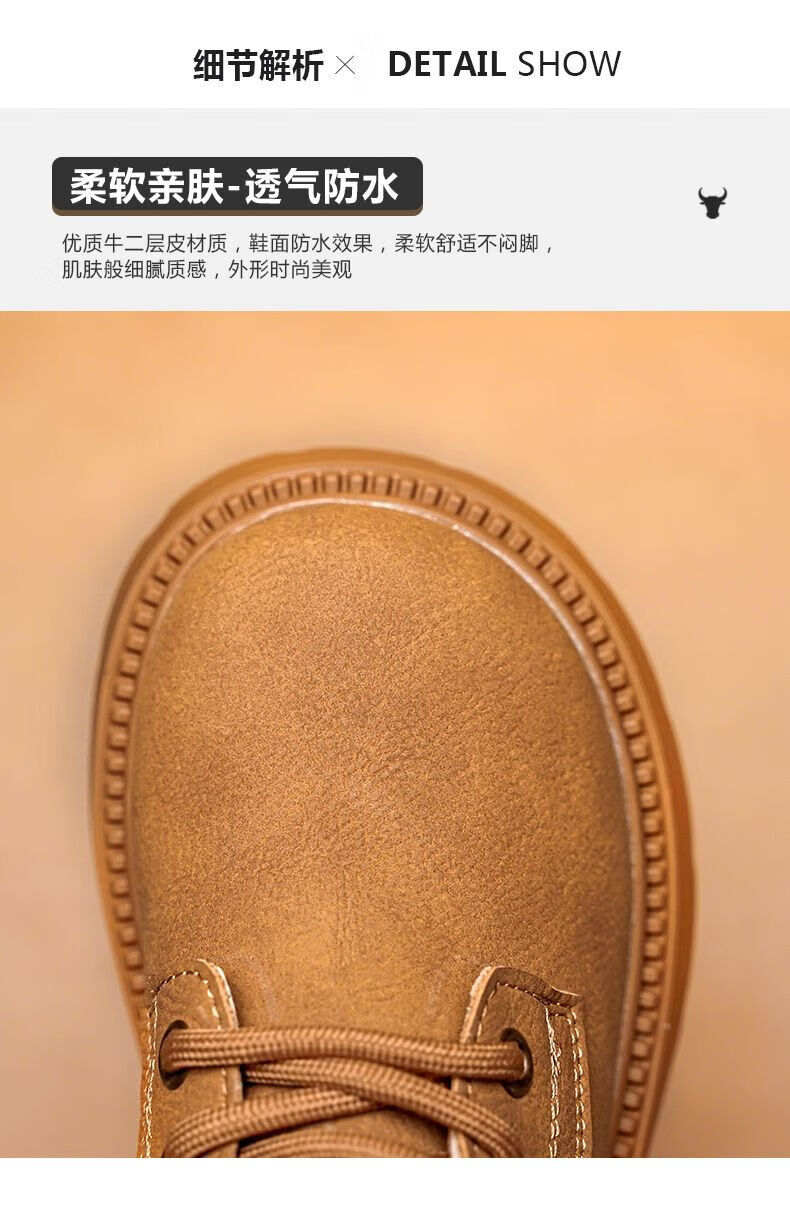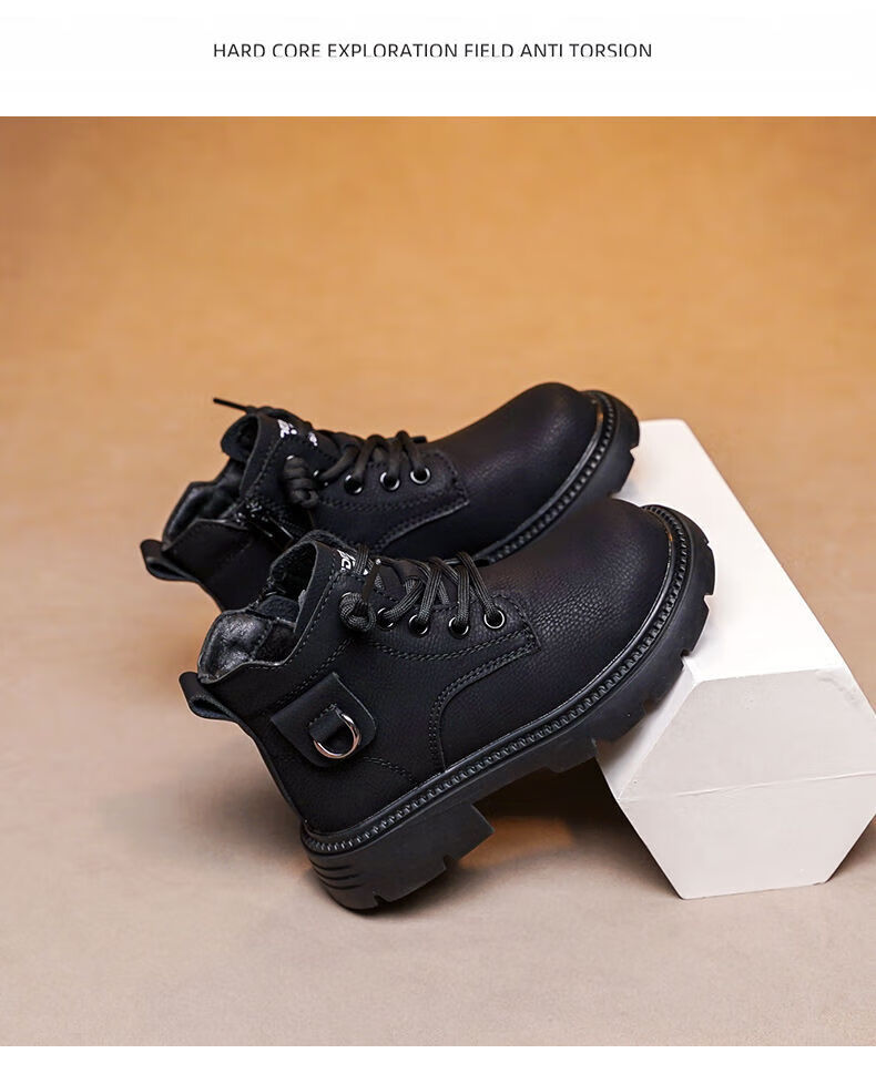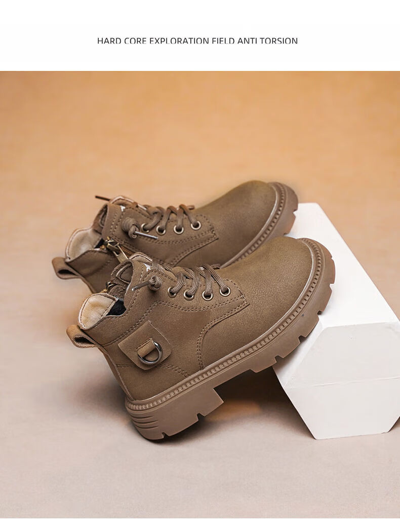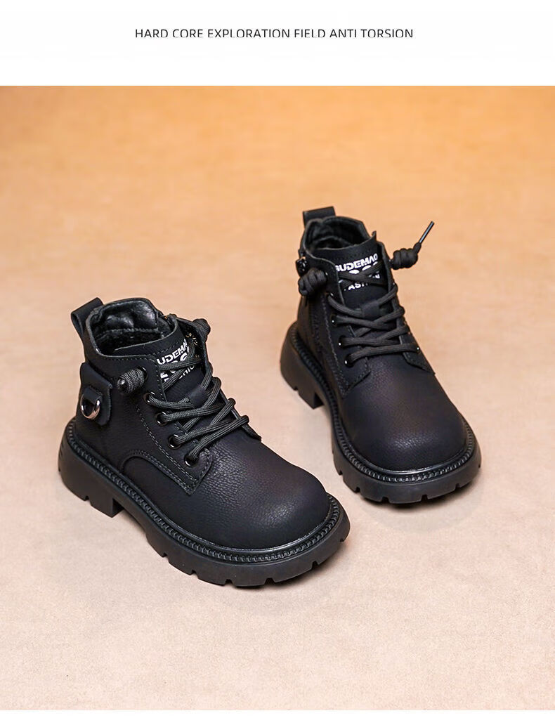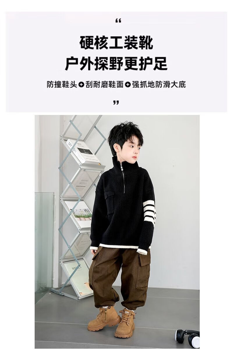 LiYunHouSe boys' Martin boots, real cowhide, fashionable velvet short boots, autumn and winter new style 2025 British style big children's shoes, handsome 25 new models - upgraded version - cow split leather yellow - no velvet, size 37, inner length 22.8cm