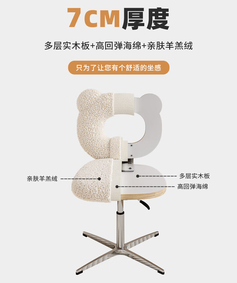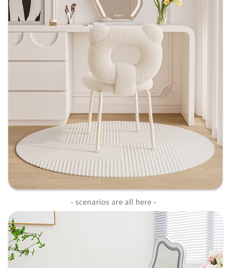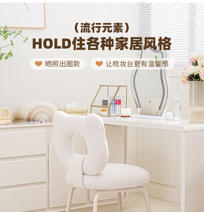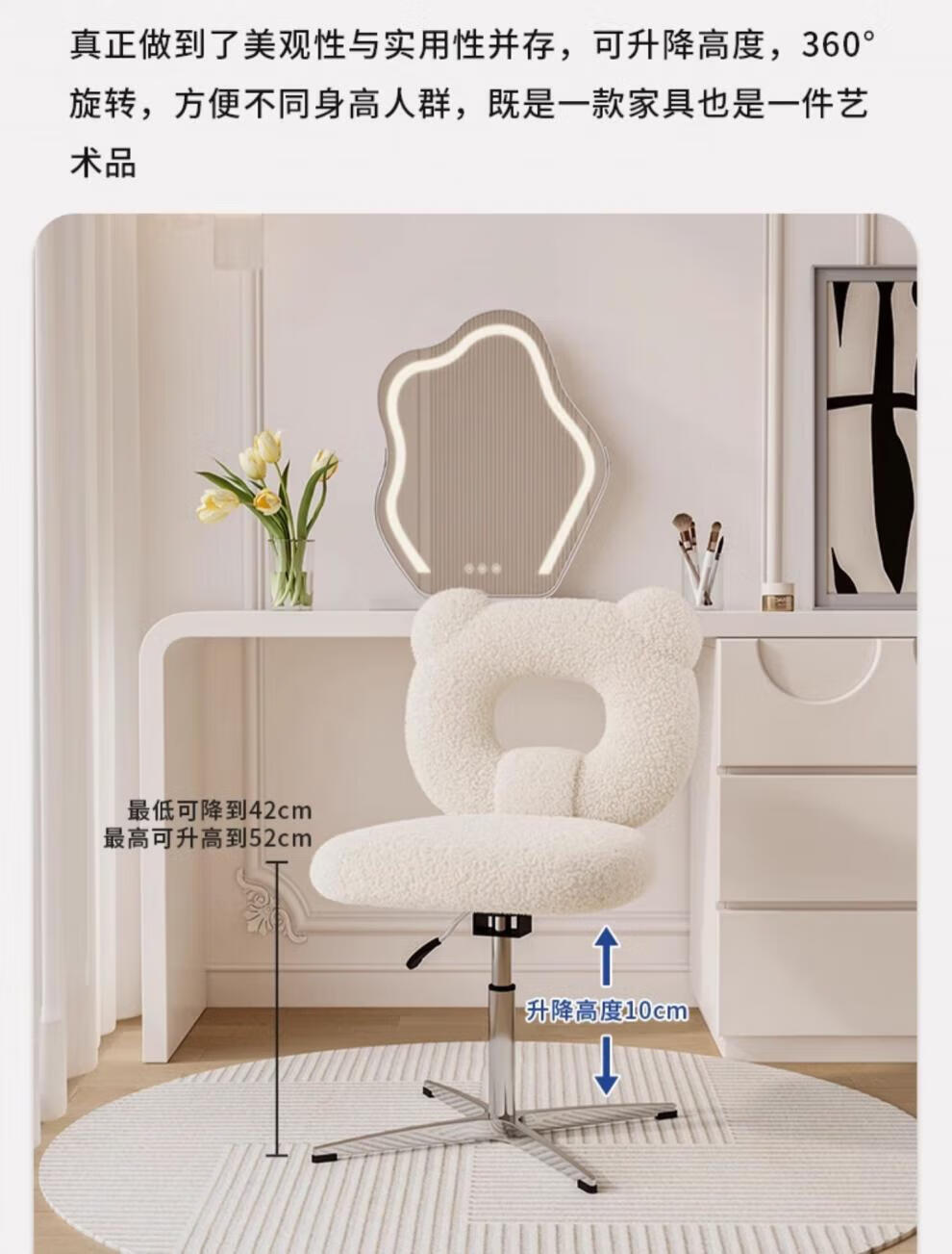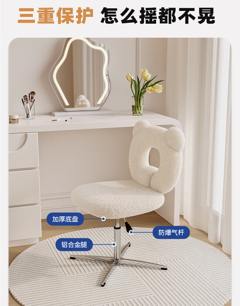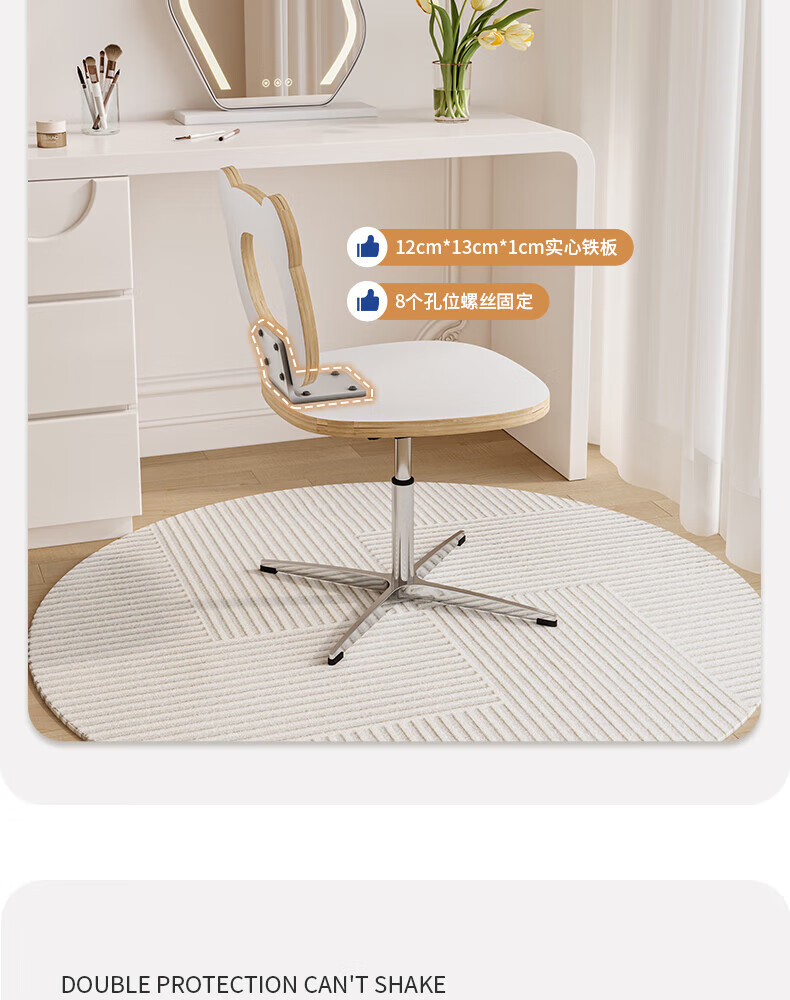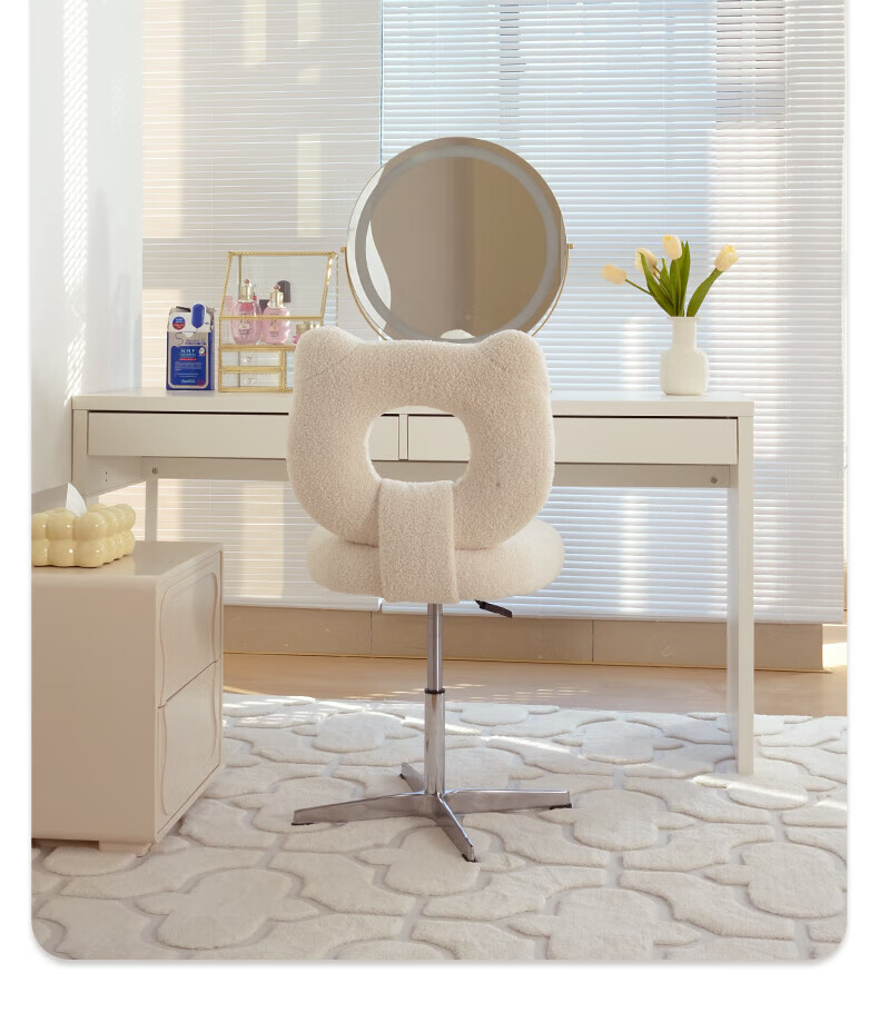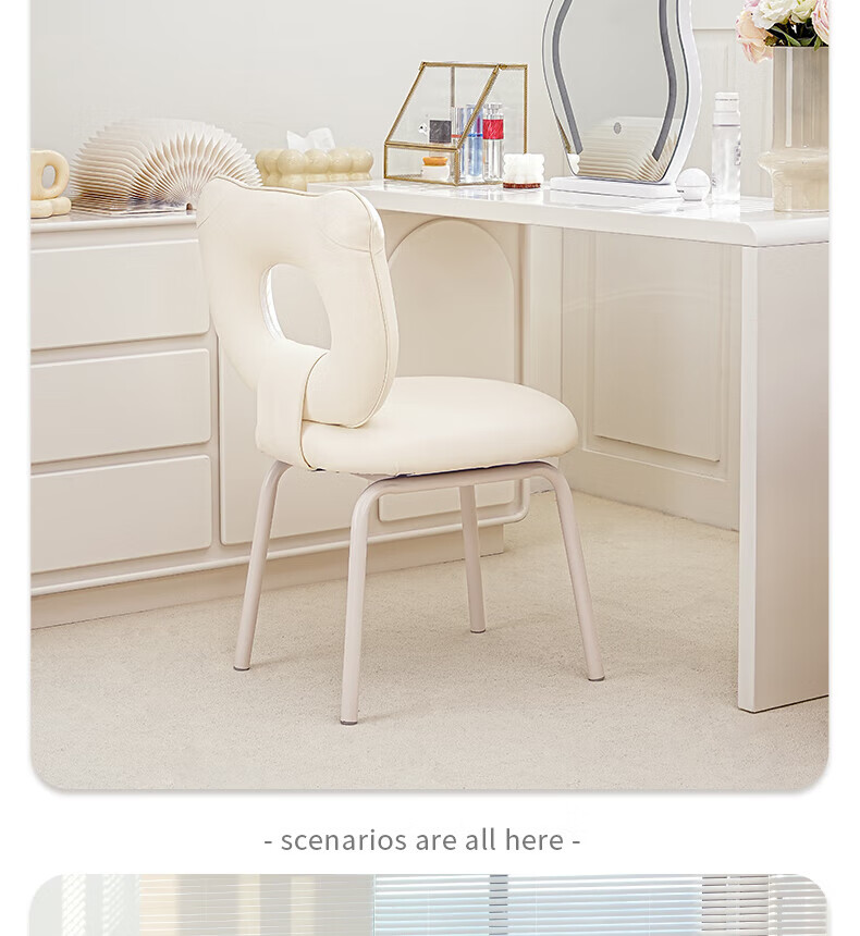 Tulio Light Luxury Makeup Stool Bedroom Dressing Stool Modern Simple Small Household Dressing Table Chair-like Manicure Stool Skin-Friendly Cat Scratch Leather + Solid Wood Legs-Cream White Makeup Stool