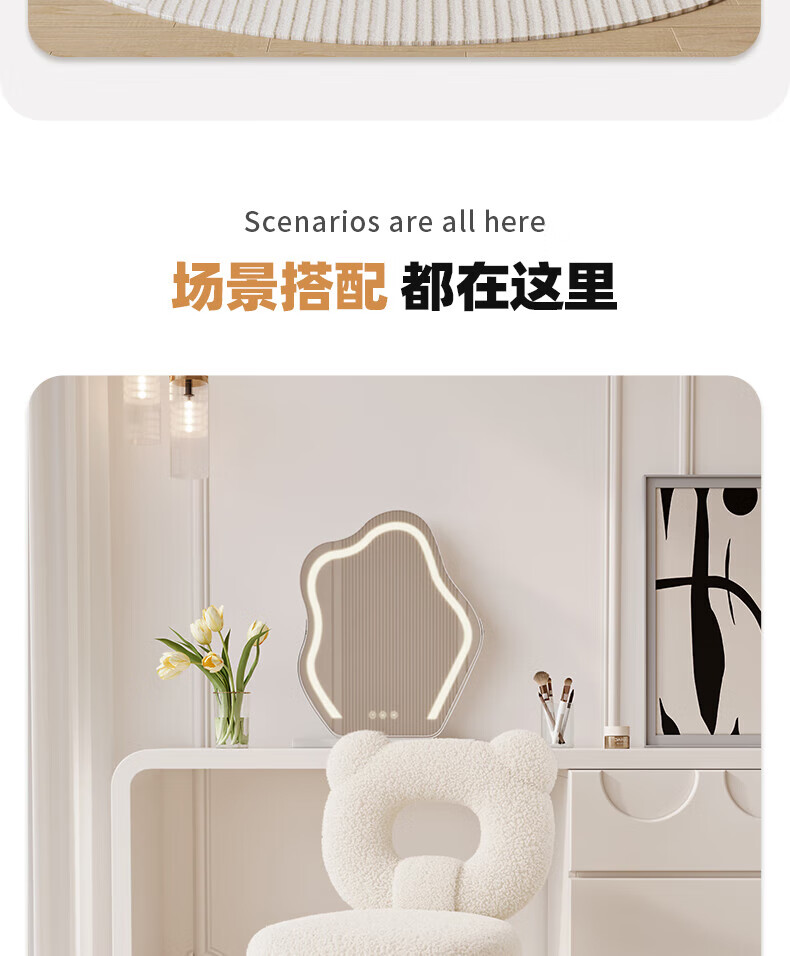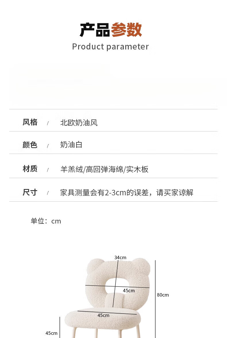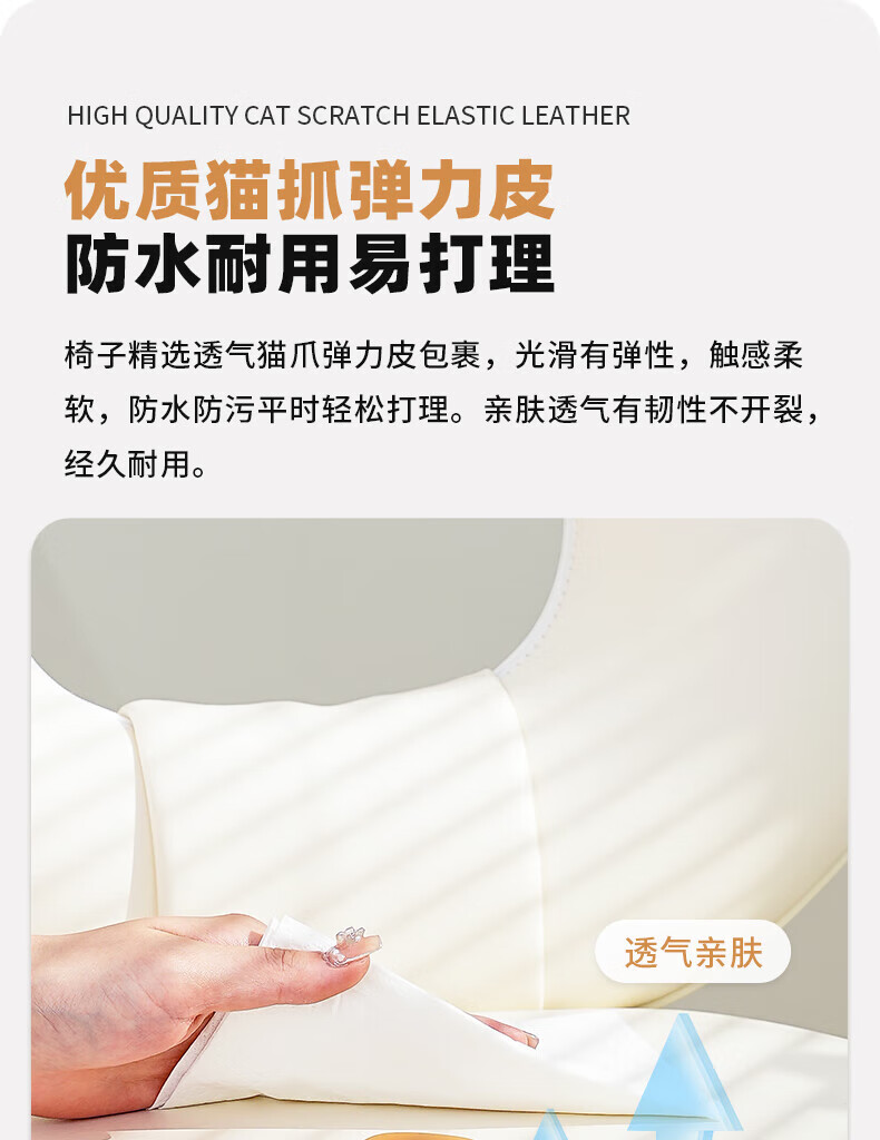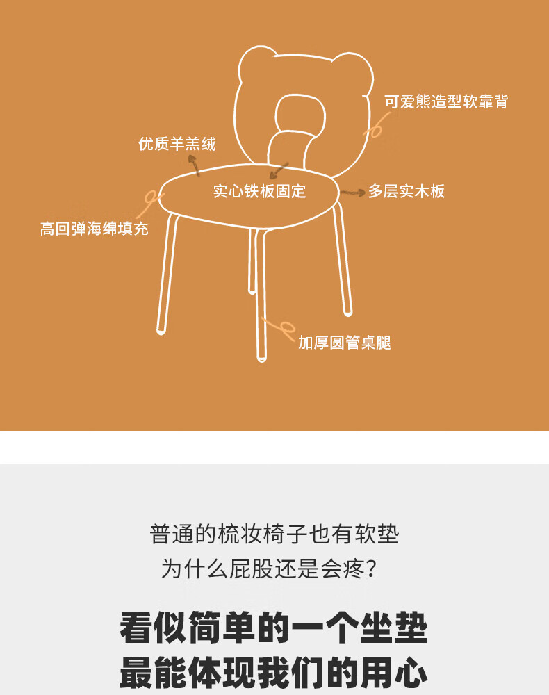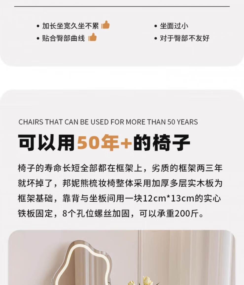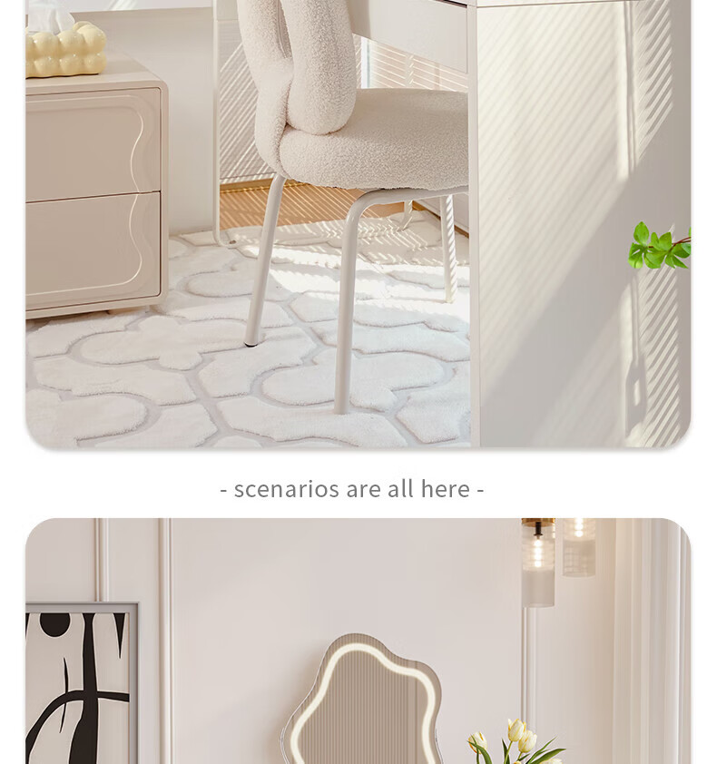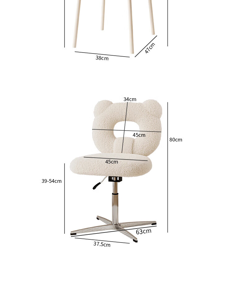Tulio Light Luxury Makeup Stool Bedroom Dressing Stool Modern Simple Small Household Dressing Table Chair-like Manicure Stool Skin-Friendly Cat Scratch Leather + Solid Wood Legs-Cream White Makeup Stool