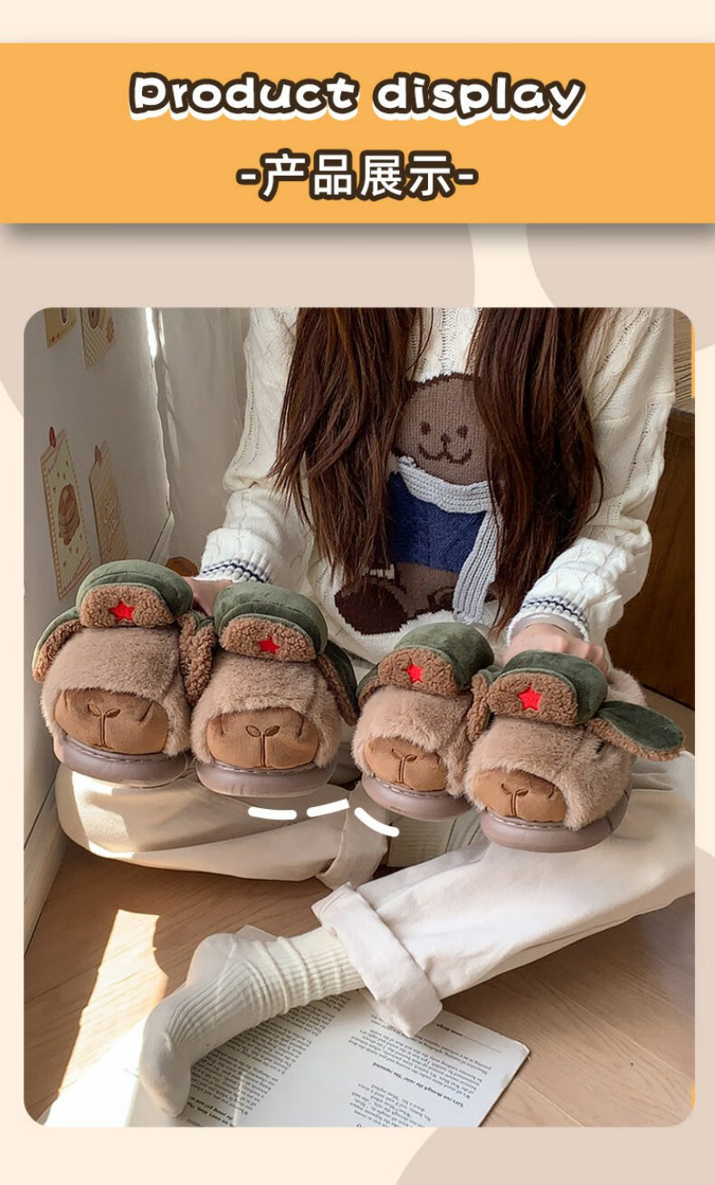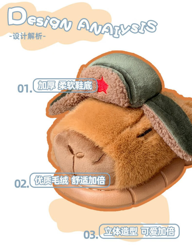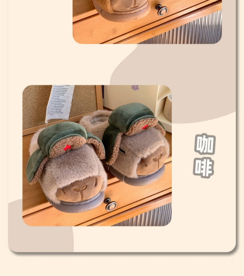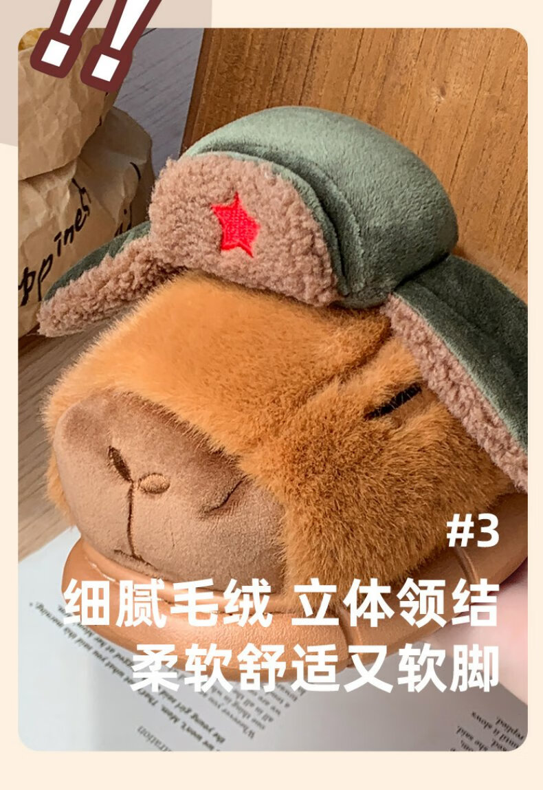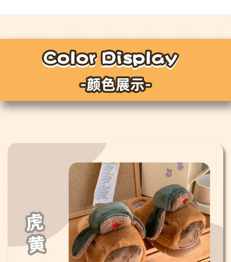 LINBUXAN Kapibara children's funny and cute cotton slippers boys' winter non-slip home wear warm plush slippers Tiger Yellow 18 Inner length cm 26-27 yards