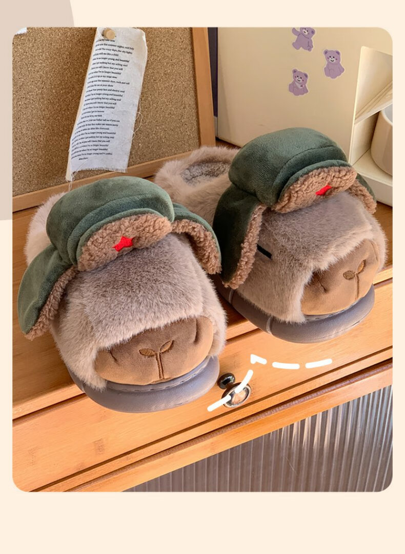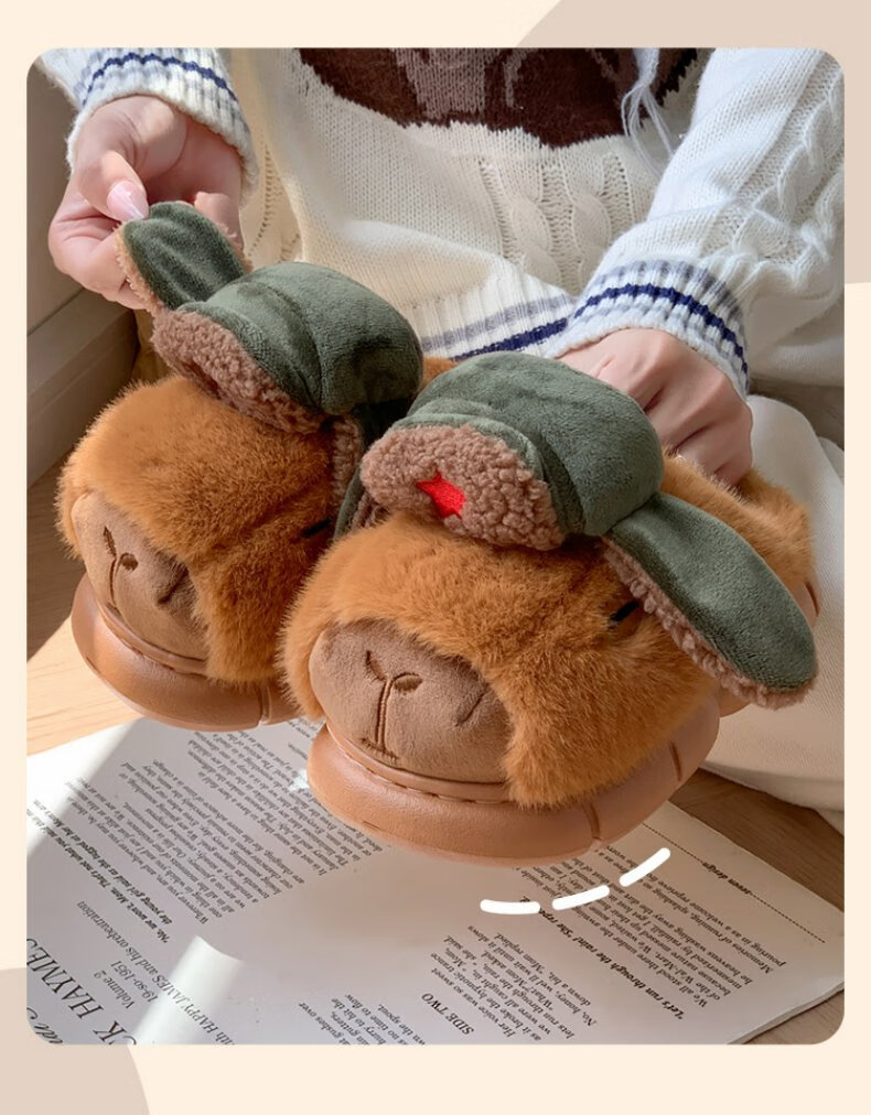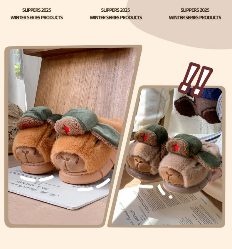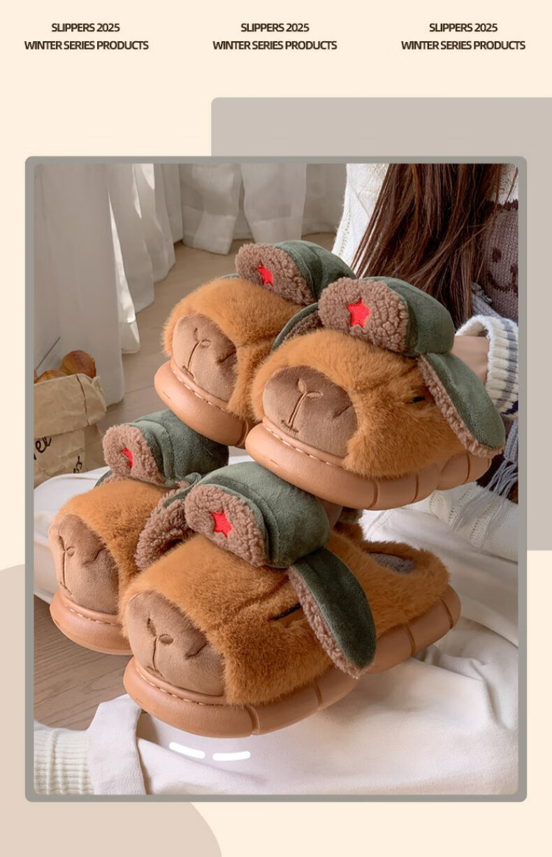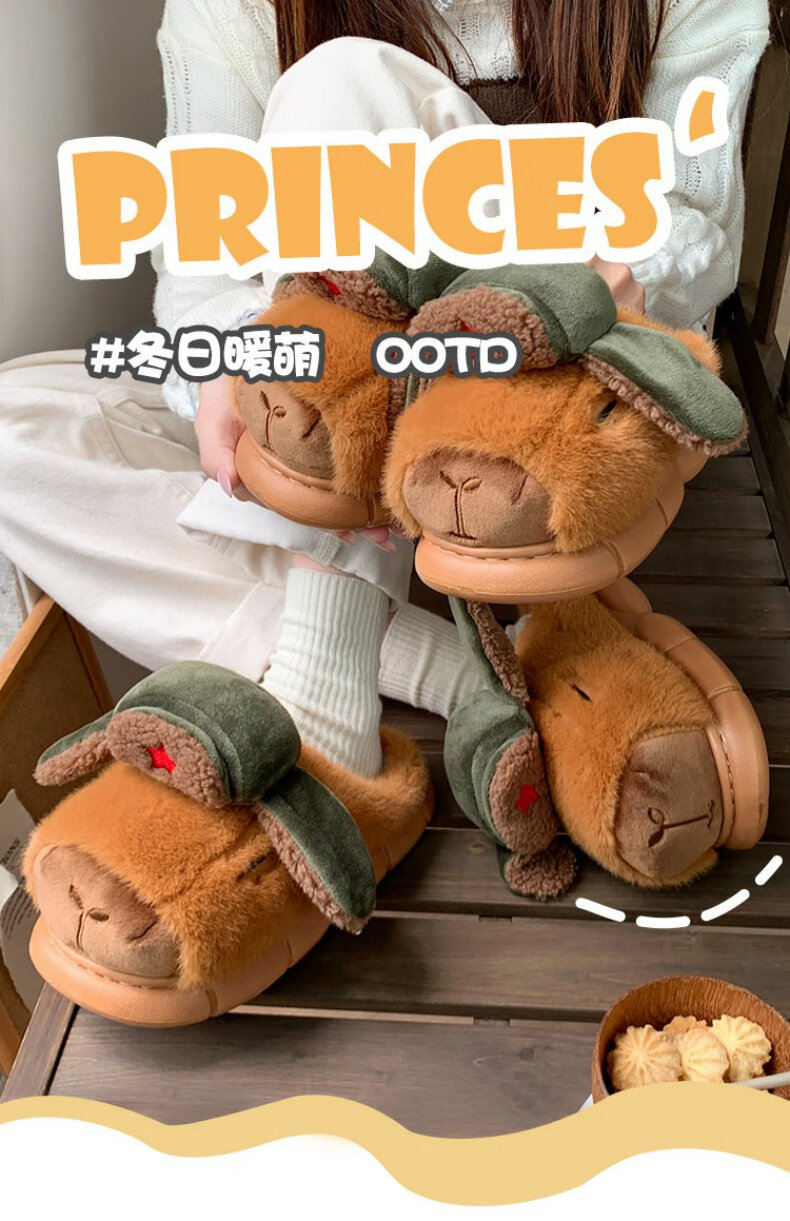 LINBUXAN Kapibara children's funny and cute cotton slippers boys' winter non-slip home wear warm plush slippers Tiger Yellow 18 Inner length cm 26-27 yards