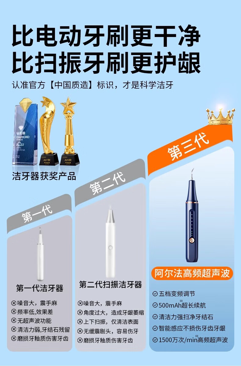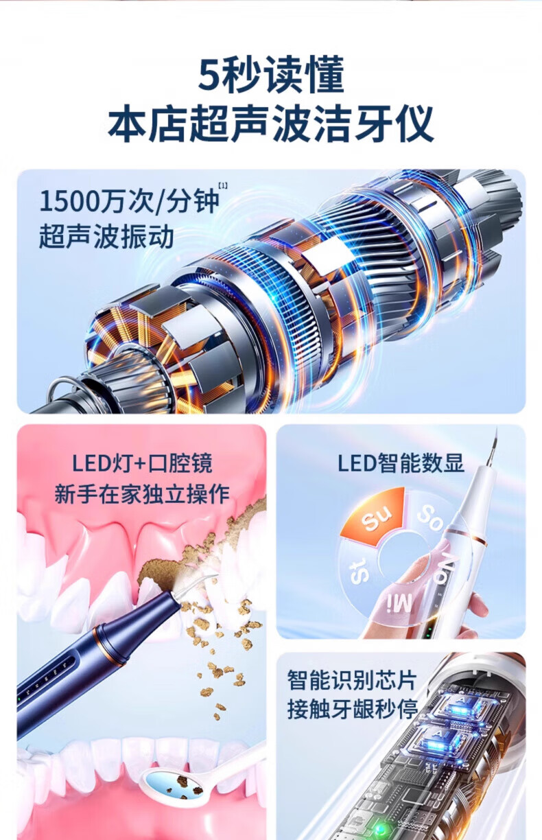 DIKTT German dental scaler ultrasonic cleaning tooth calculus remover smoke stain removal artifact household electric dental scaler teeth cleaning dirt removal tartar gift for the elderly parents and boyfriends Yuanshan Blue - 5-speed adjustment - high frequency ultrasonic - free full set of teeth cleaning gifts easy to use + tooth cleaning gravel does not hurt the teeth
