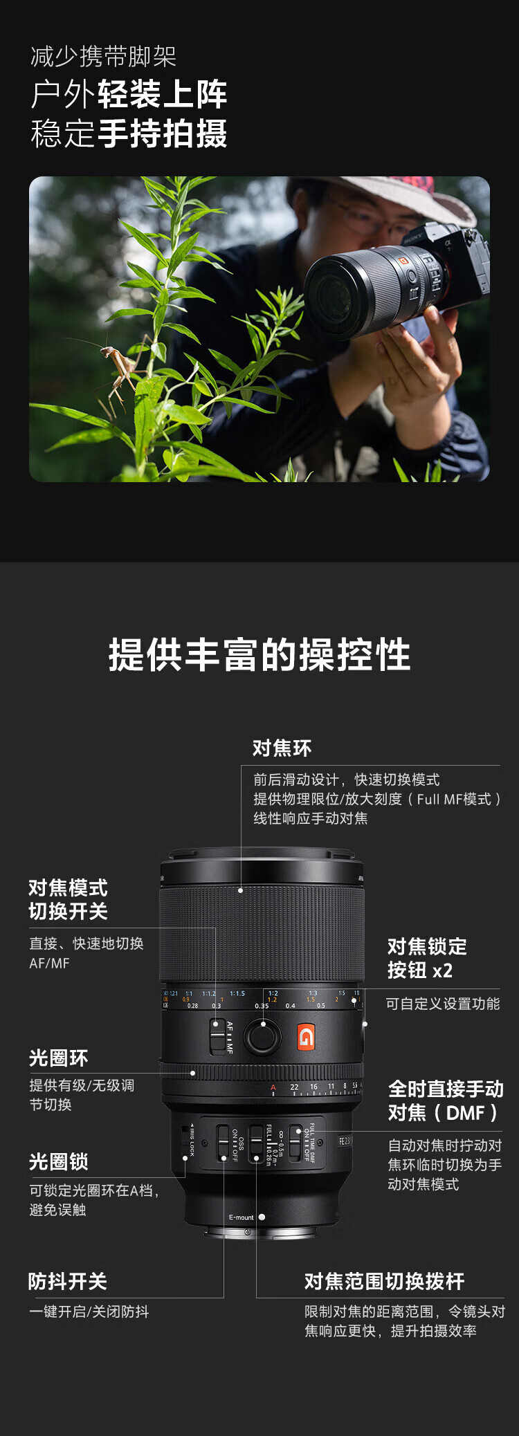 Sony (SONY) macro full-frame macro lens FE100mmF2.8GM+ color MCUV third generation 67mm