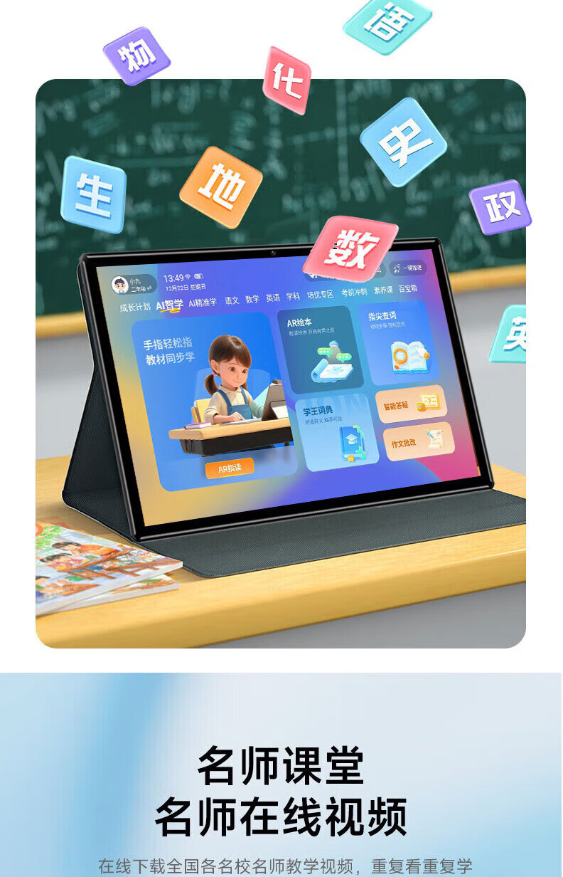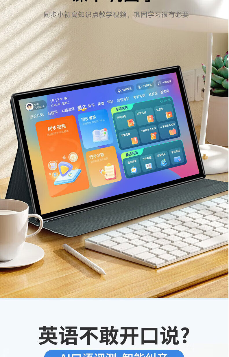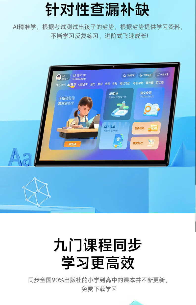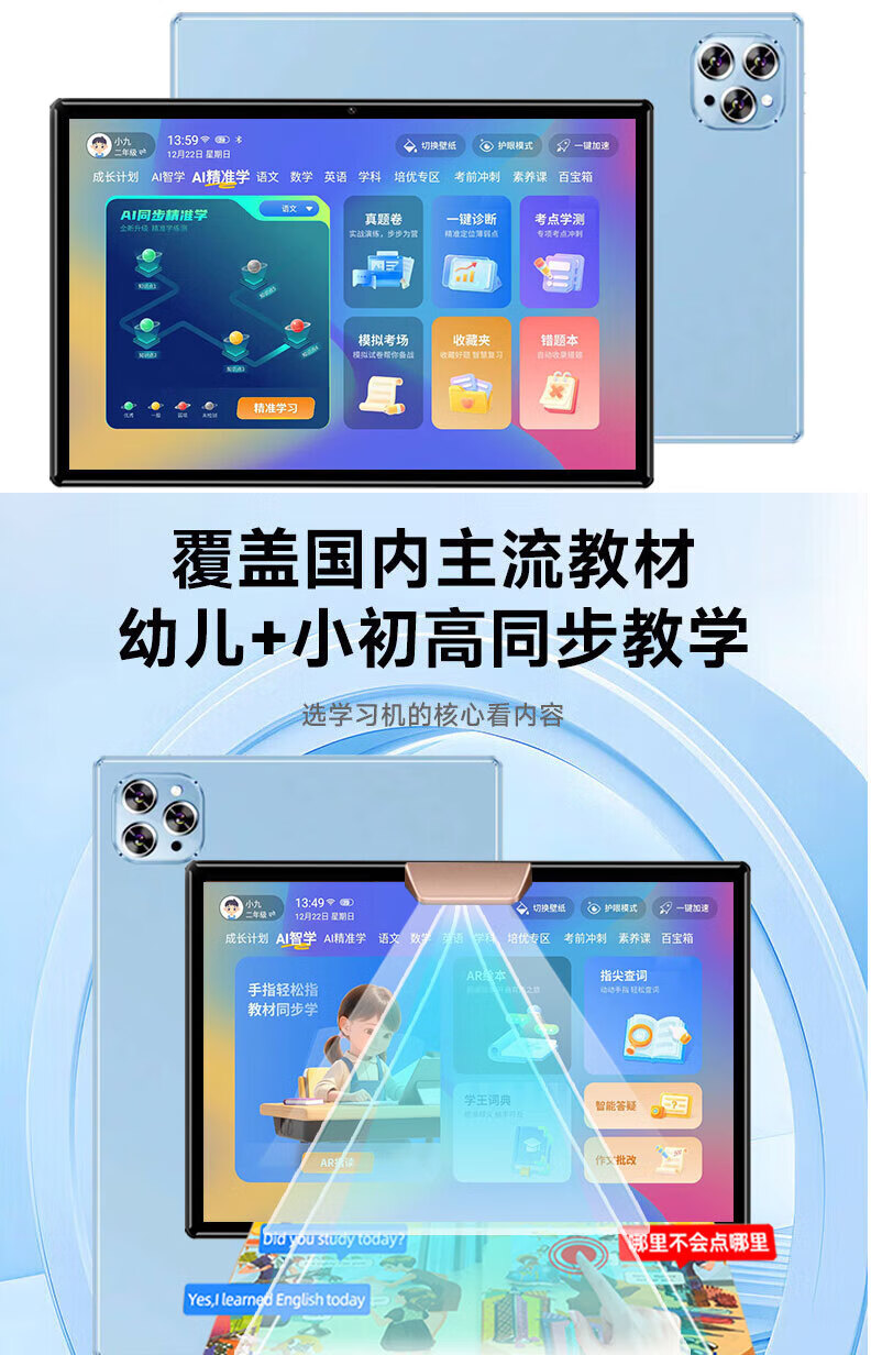Step-by-step learning machine tablet computer for first grade to middle school and high school students English learning machine primary school reading machine Sky Blue Full subject synchronization + permanent free 12+512 official standard configuration