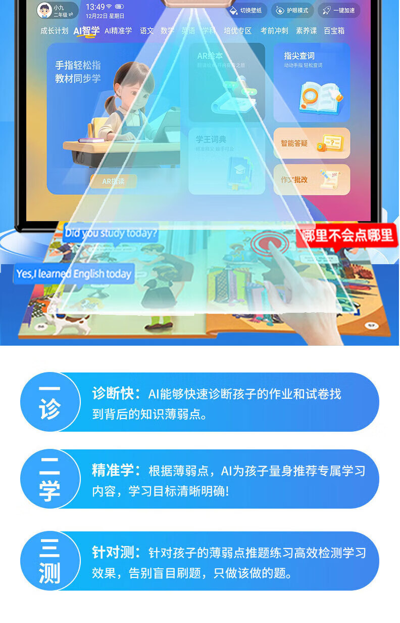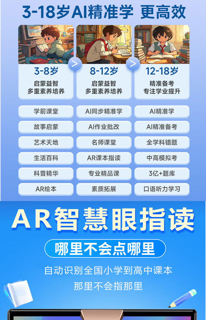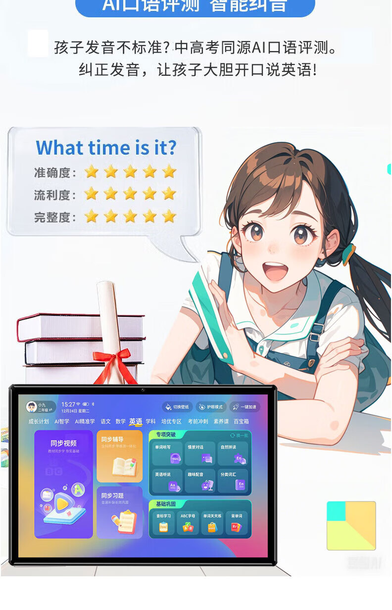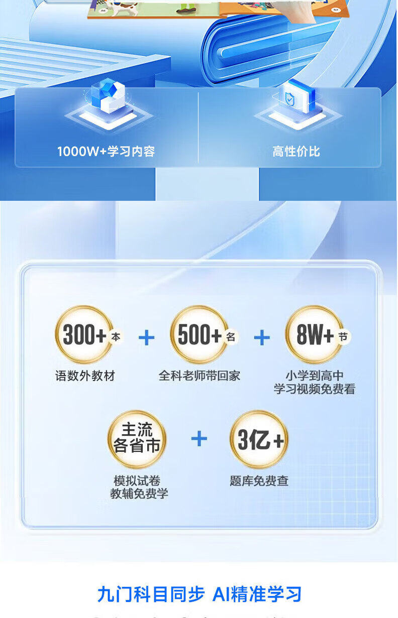 Step-by-step learning machine tablet computer for first grade to middle school and high school students English learning machine primary school reading machine Sky Blue Full subject synchronization + permanent free 12+512 official standard configuration