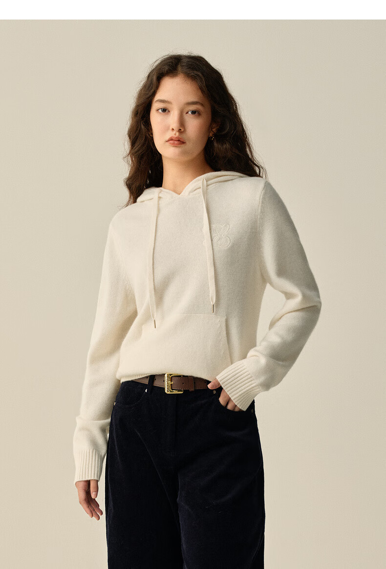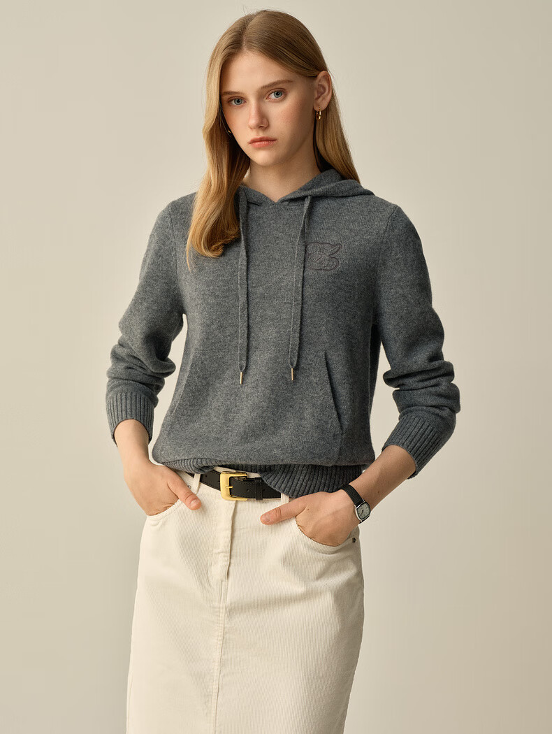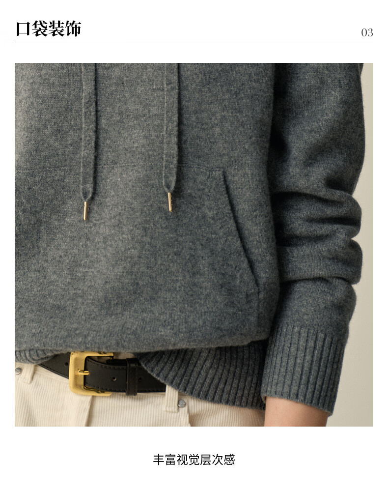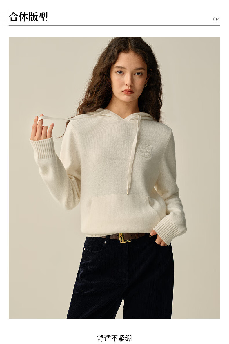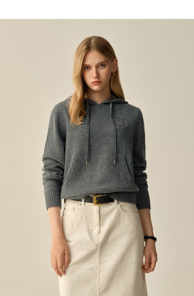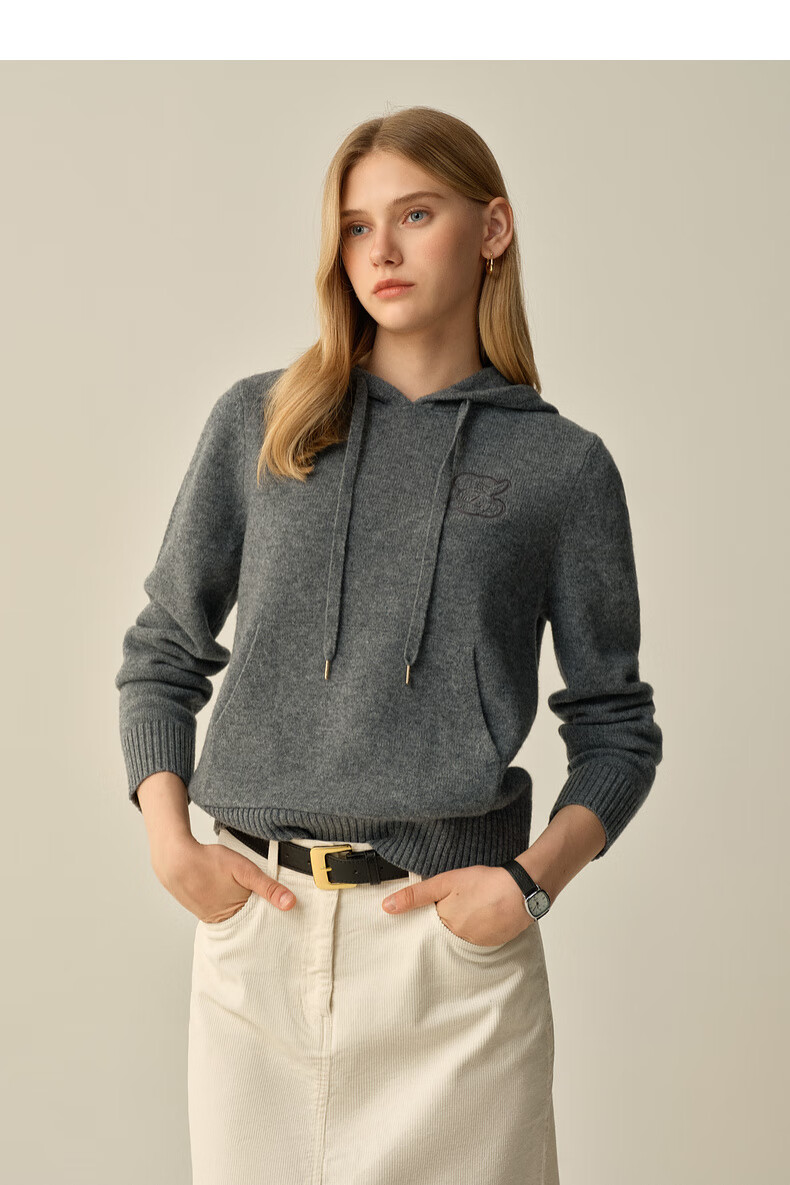 ELAND Yilian sweater women's fashion hooded thickened warm pullover sweater 2025 winter new style dark gray (17) D/Grey S /160
