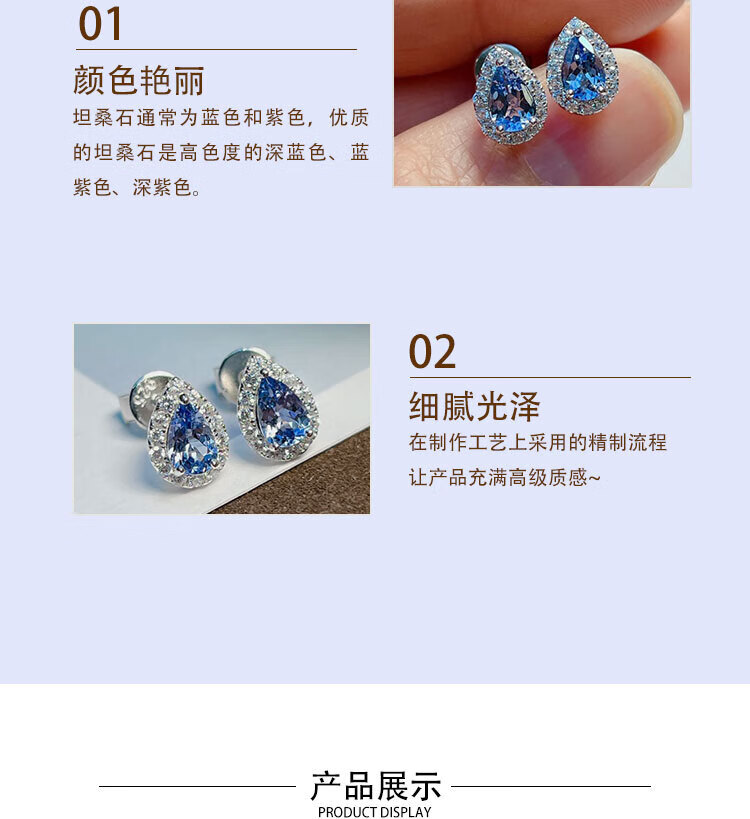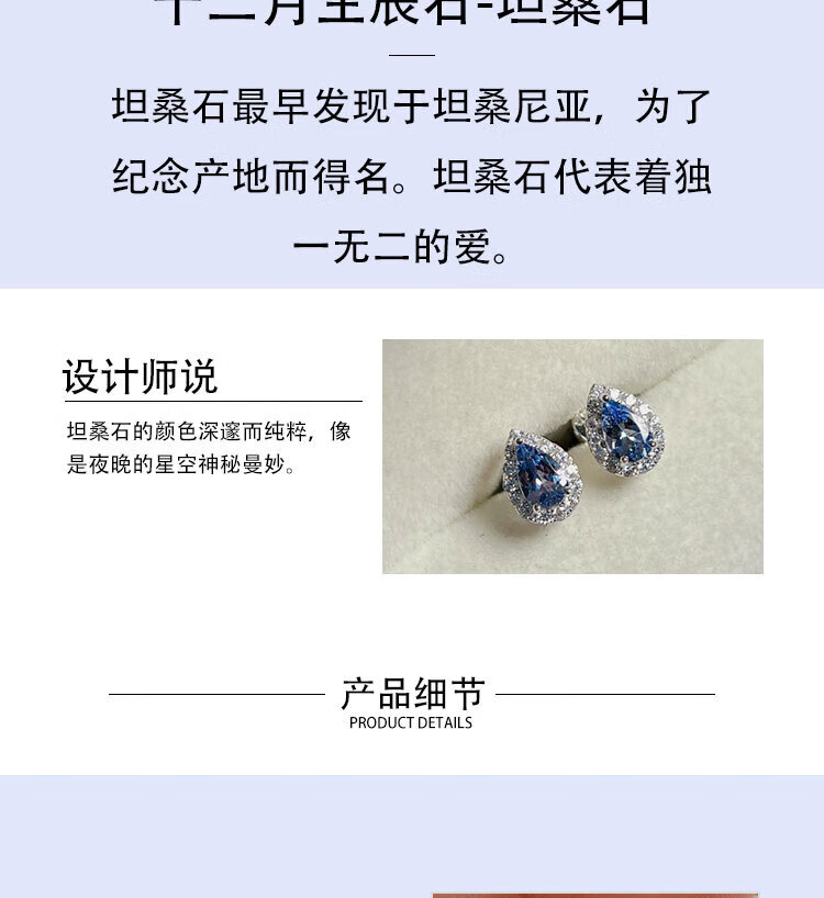 Zezhijia 0.75 carat tanzanite earrings for women, colored gemstones, 925 silver inlaid tanzanite earrings