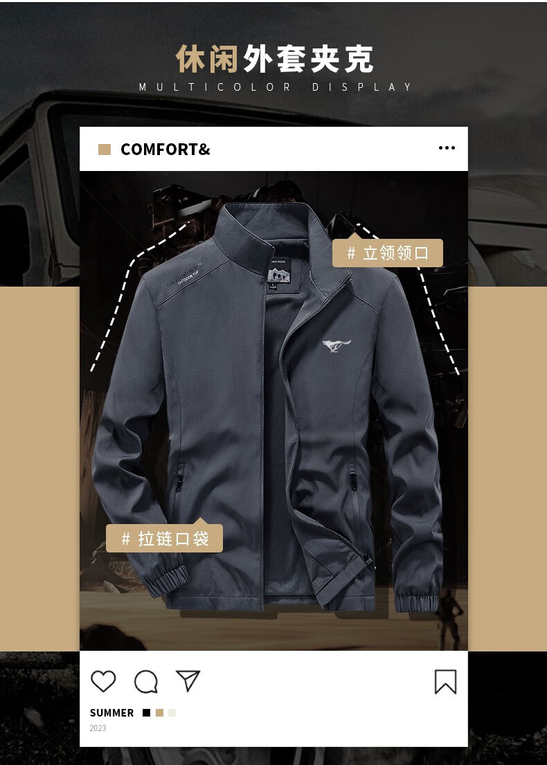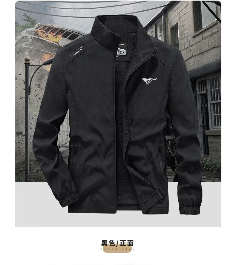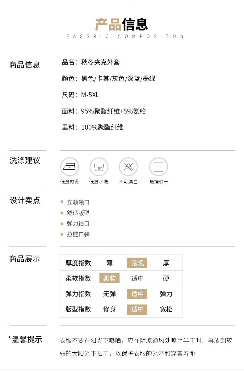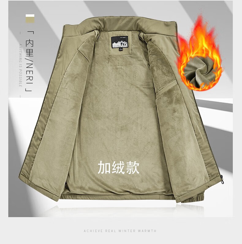 Septwolves new men's jacket spring and autumn business casual winter warm large size young and middle-aged loose stand-up collar pure black plus velvet XL recommended 130-150Jin Jin equals 0.5 kg