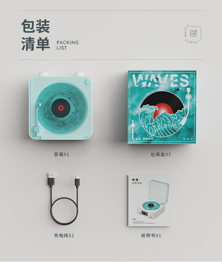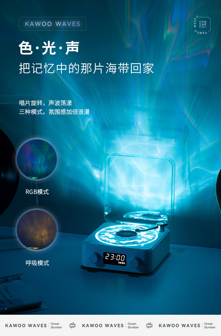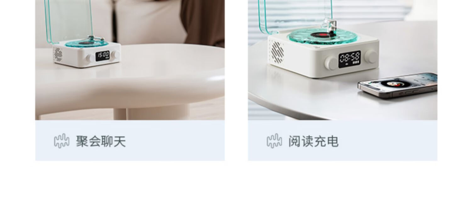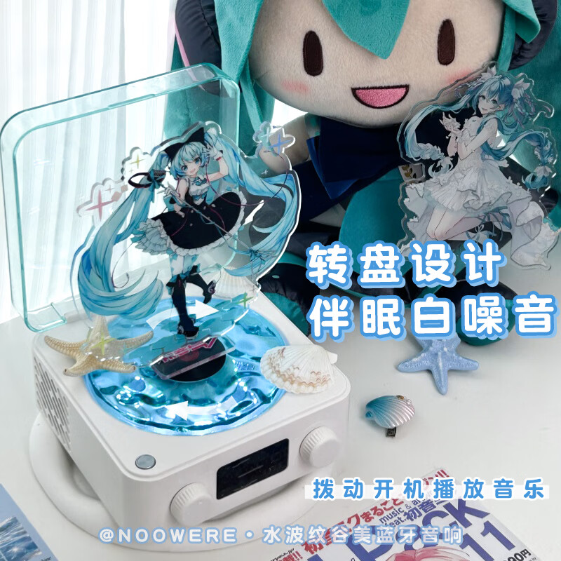 NOOWERE Water Ripple Bluetooth Audio Listening to the Sea Vinyl Speaker Wireless Record Player Chinese Valentine's Day Birthday Gift KTV Player CD Player Record Player Vinyl Small Steel Cannon Glaze Dark Night Black Listening to the Sea Audio No Specifications