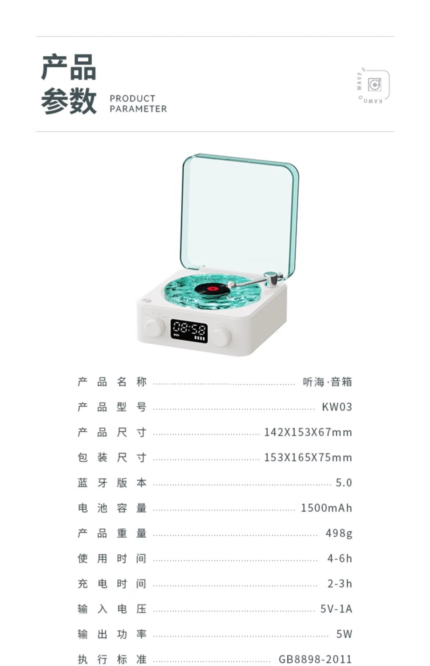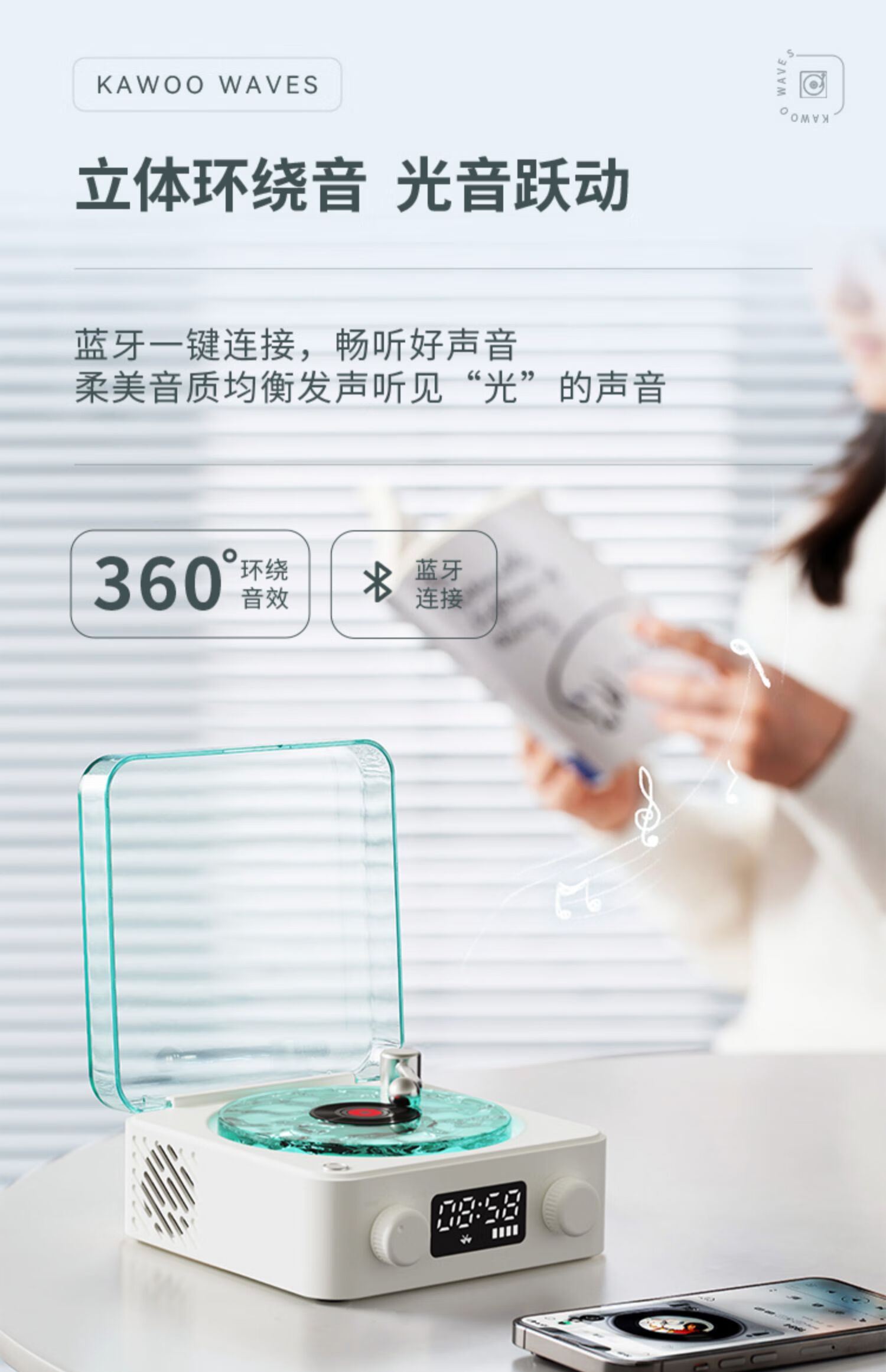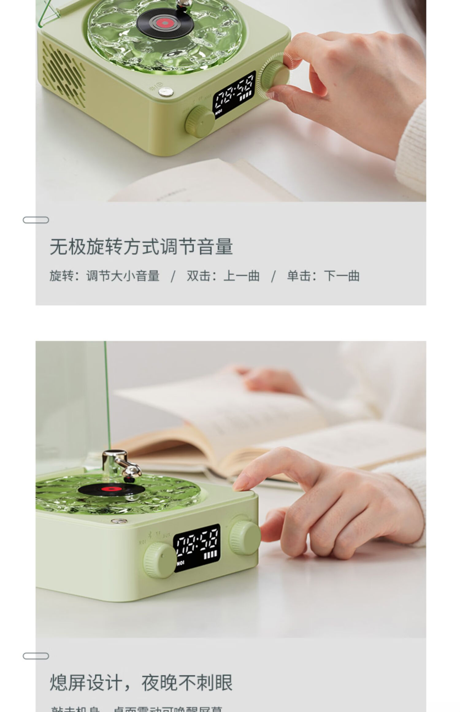 NOOWERE Water Ripple Bluetooth Audio Listening to the Sea Vinyl Speaker Wireless Record Player Chinese Valentine's Day Birthday Gift KTV Player CD Player Record Player Vinyl Small Steel Cannon Glaze Dark Night Black Listening to the Sea Audio No Specifications