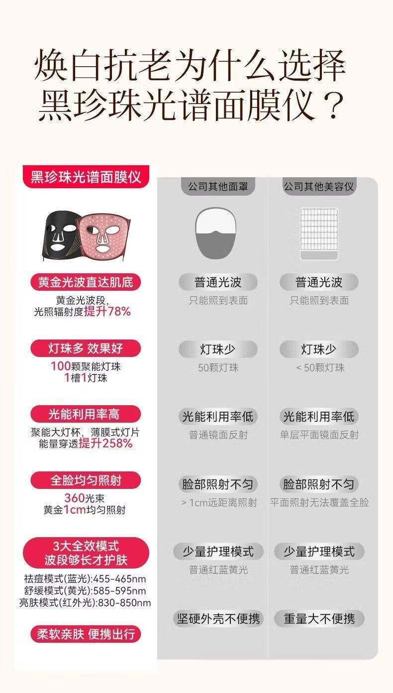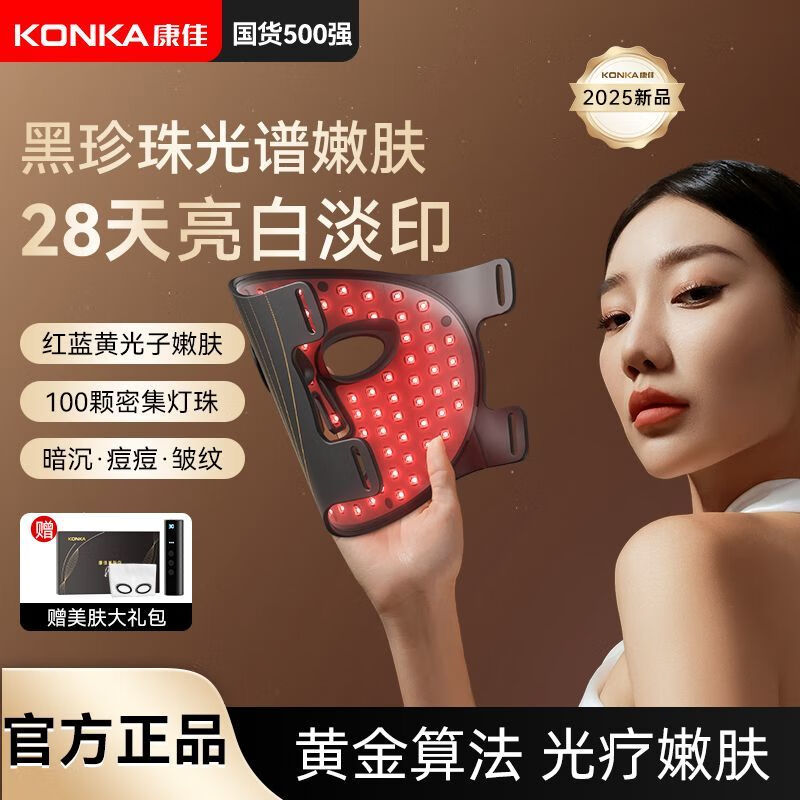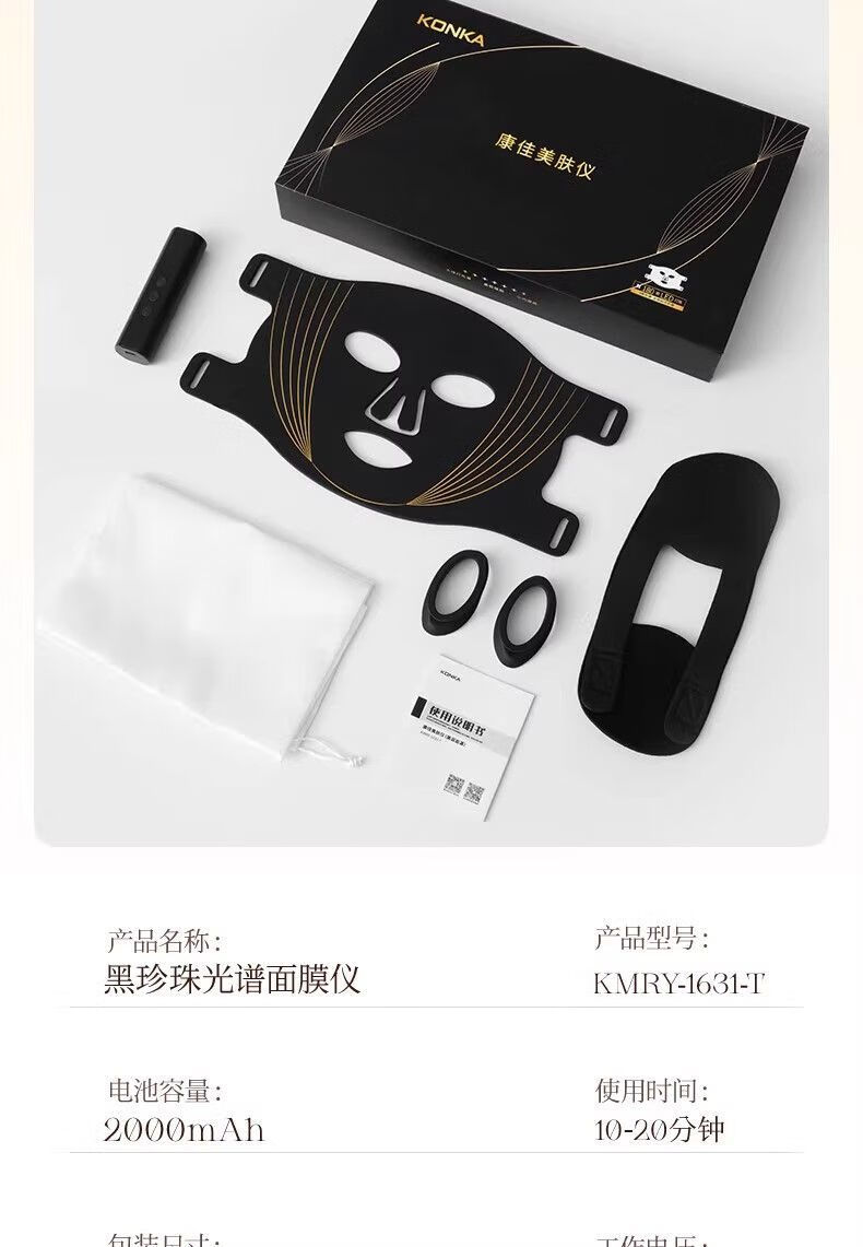 KONKA Mask Beauty Instrument Large Bar Light Red Yellow Blue Acne Remover Photon Rejuvenation Artifact Home Facial Whitening Mask Tail Cargo Machine Quality Barrier/28 Days to Reshape Skin Age/Ten Years Black Pearl Spectrum Model-28 Days Repair-Phototherapy to Create Young Skin