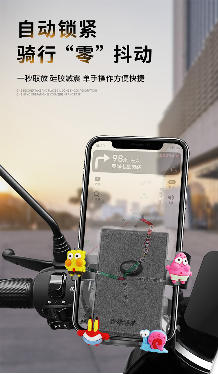 Yusenyi Electric Vehicle Mobile Phone Holder Motorcycle Navigation Takeaway Rider Car Battery Car Bicycle Fixed Rearview Mirror SpongeBob SquarePants