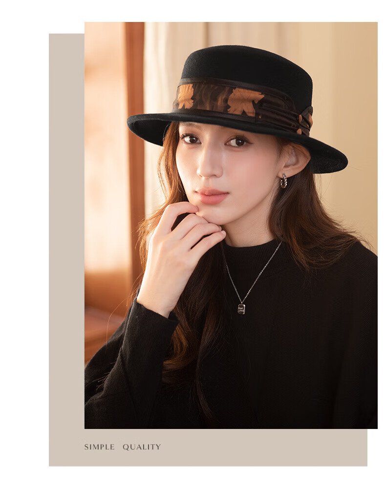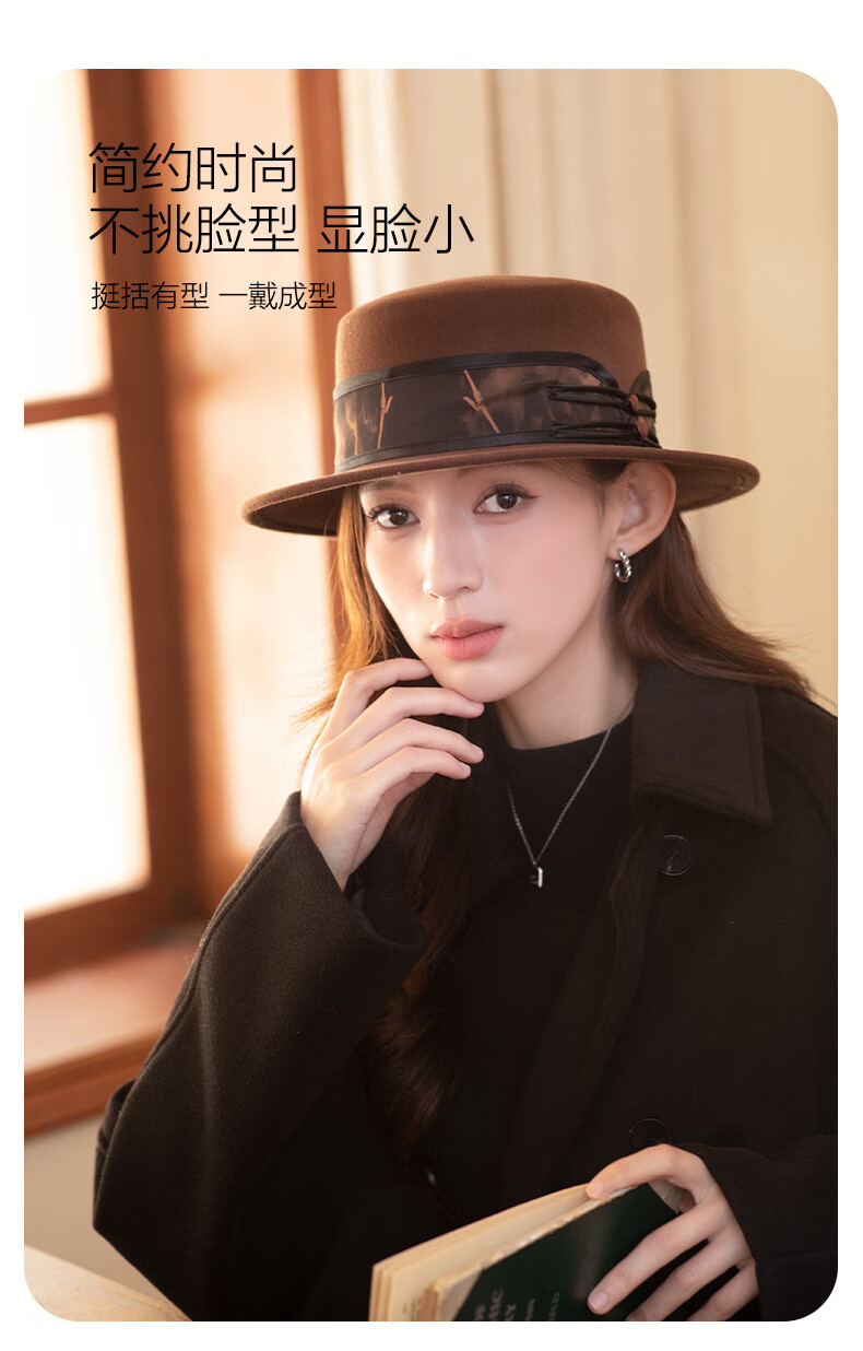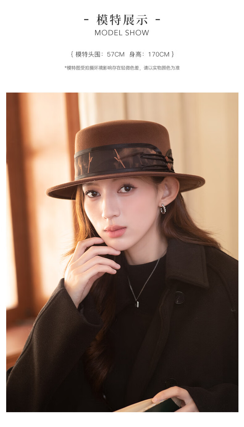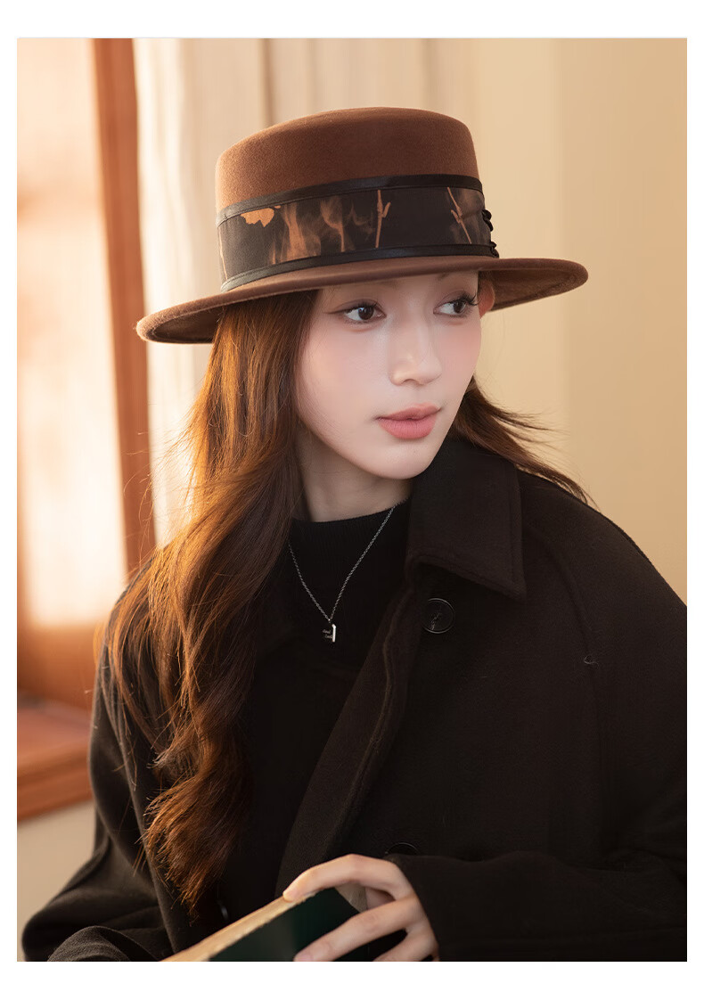 GEFWEIMKL Merino Wool Hat Women's Autumn and Winter French Flat Brim Wool Felt Hat Women's Korean Style Versatile Jazz Hat Women Camel (Foldable) M (56-58cm)