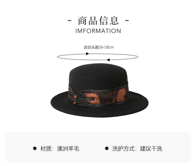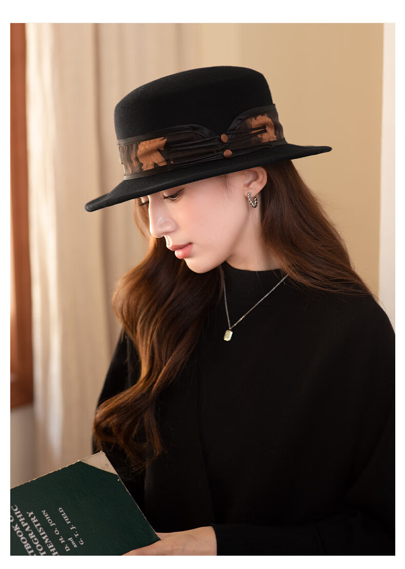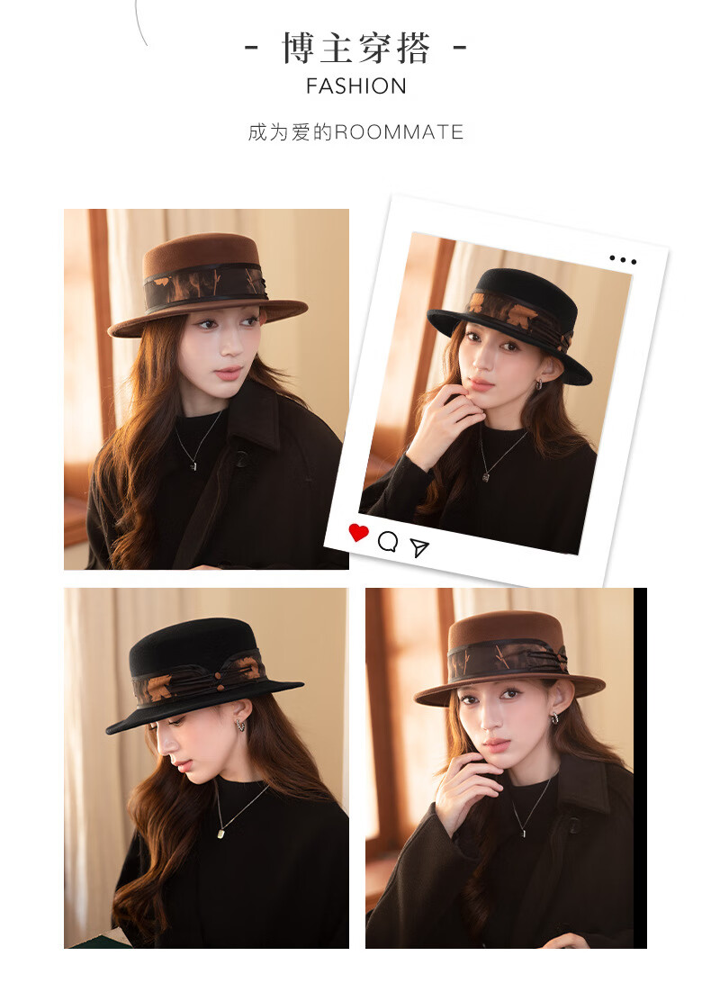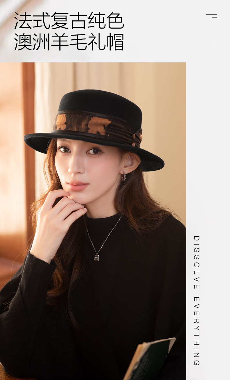 GEFWEIMKL Merino Wool Hat Women's Autumn and Winter French Flat Brim Wool Felt Hat Women's Korean Style Versatile Jazz Hat Women Camel (Foldable) M (56-58cm)
