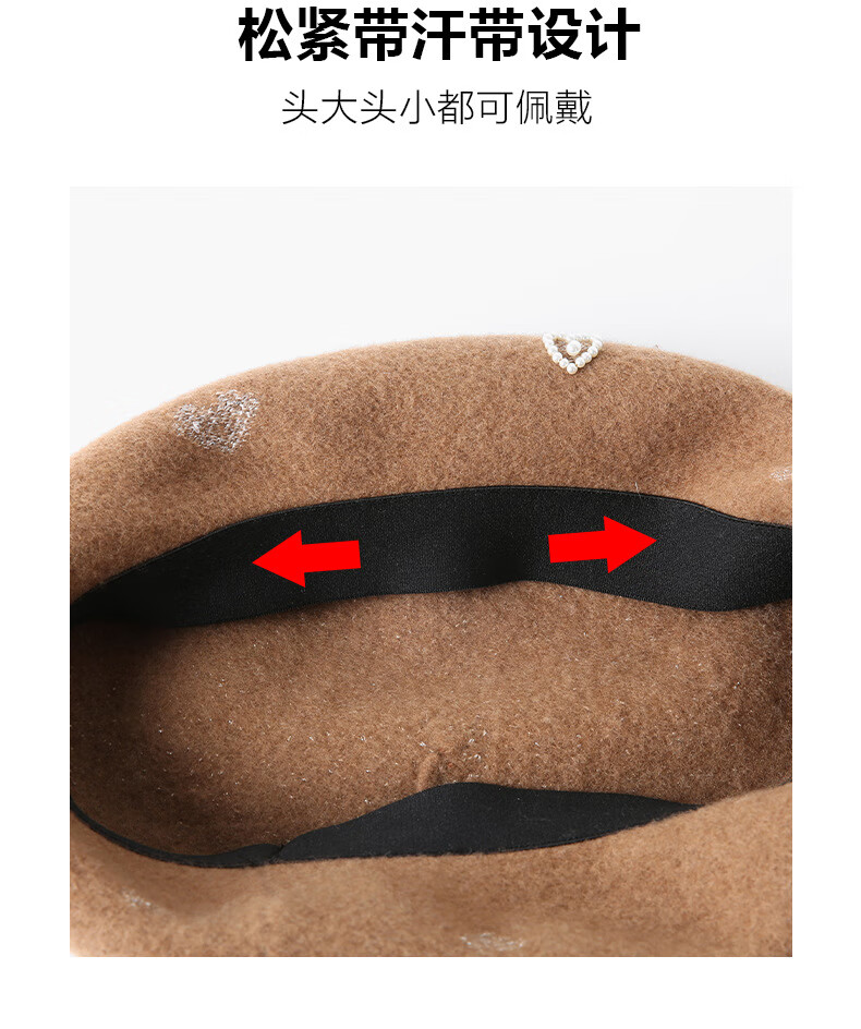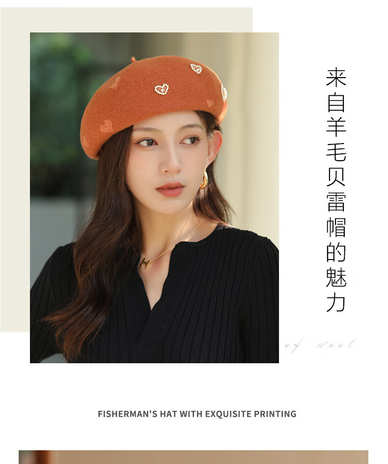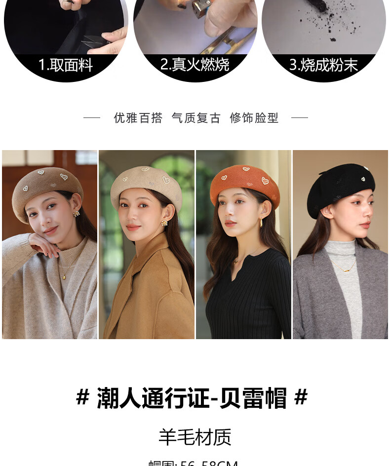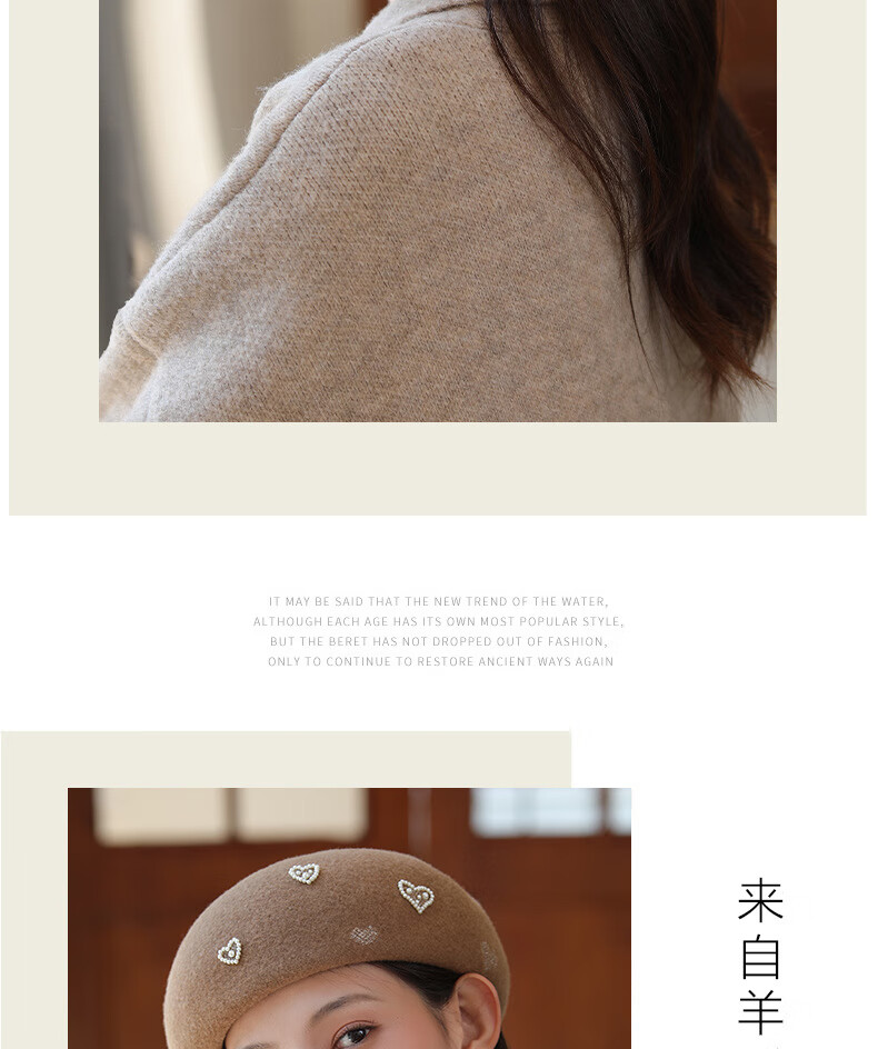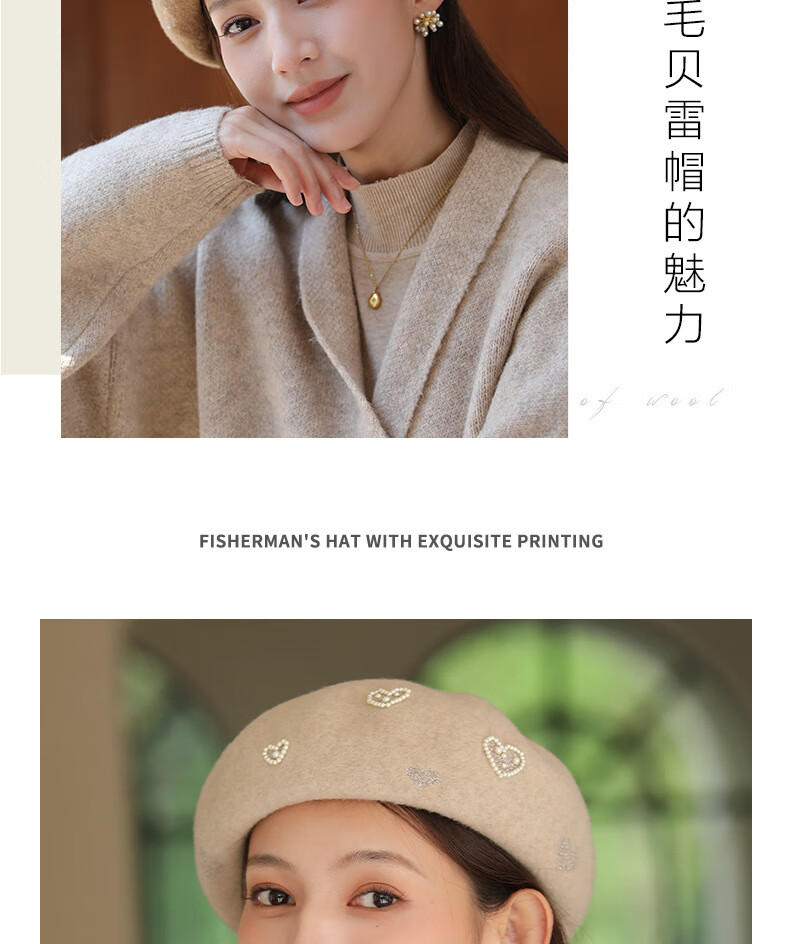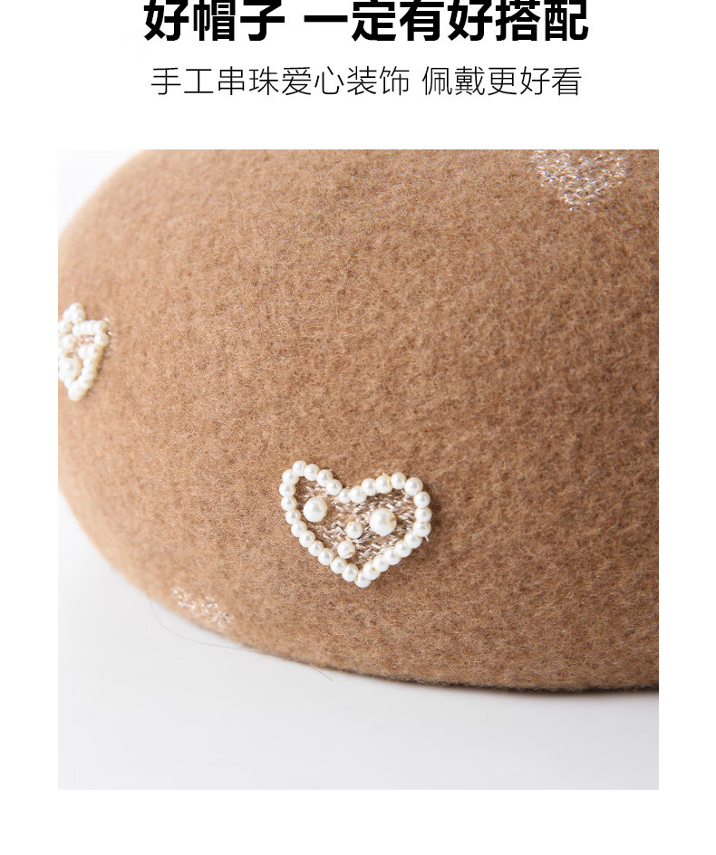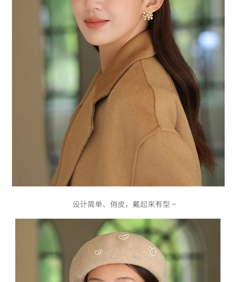 GEFWEIMKL Merino wool beret women's autumn and winter fashion versatile painter's hat women's face-showing small woolen octagonal hat camel M (56-58cm)