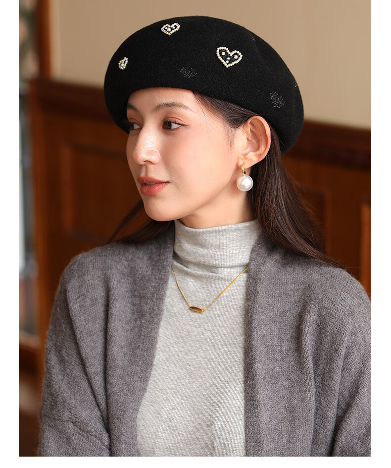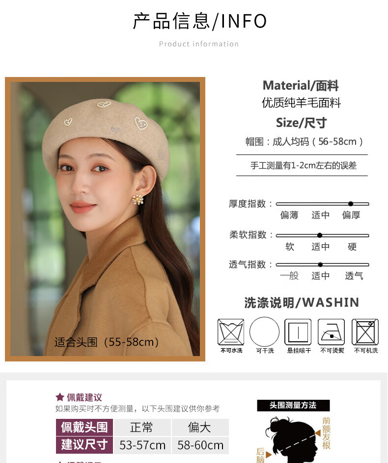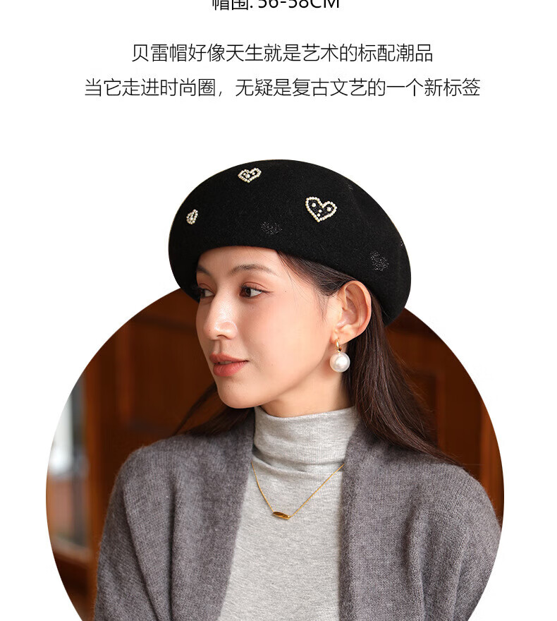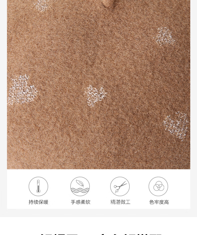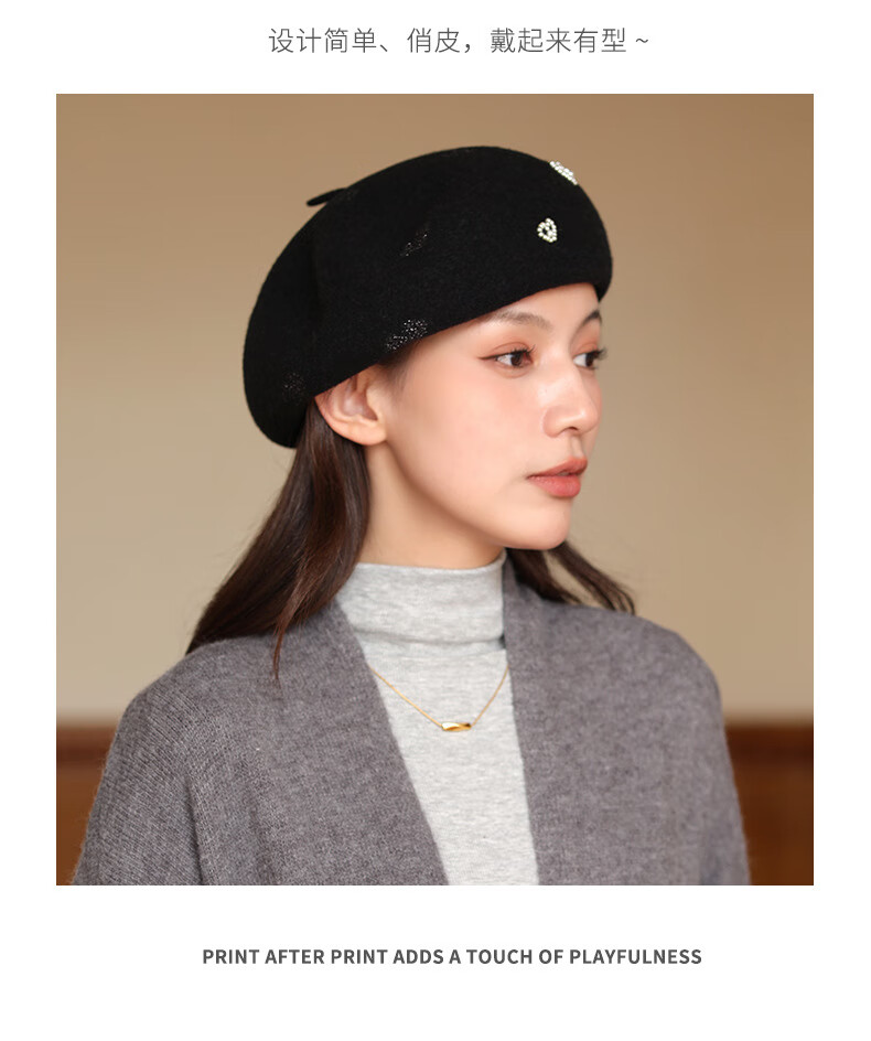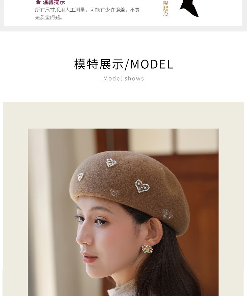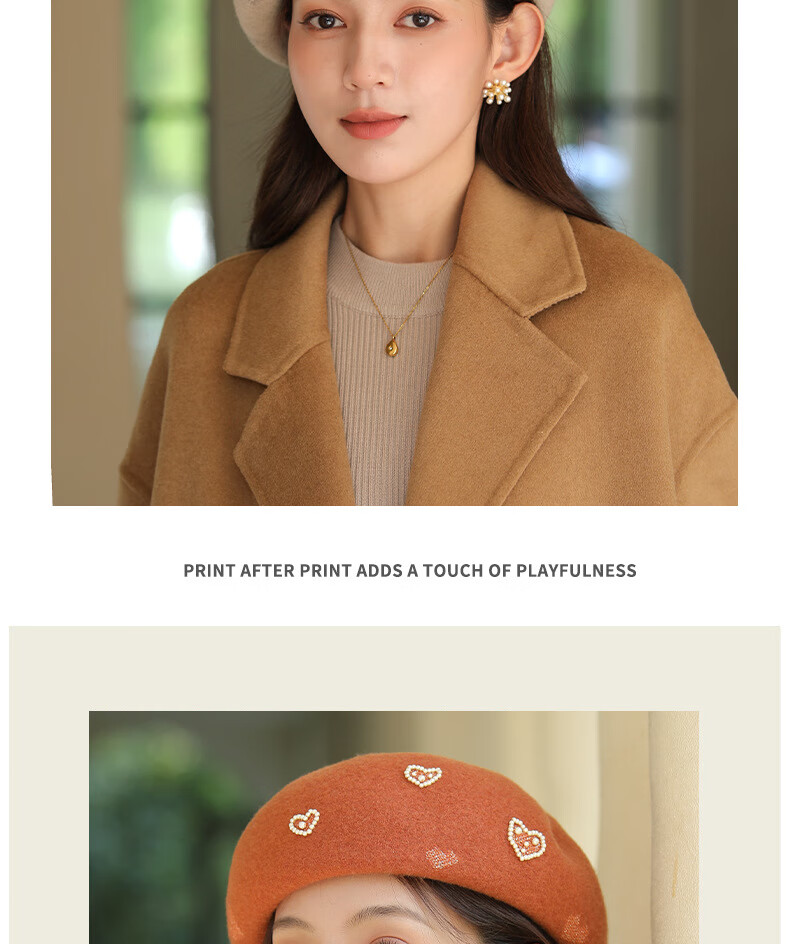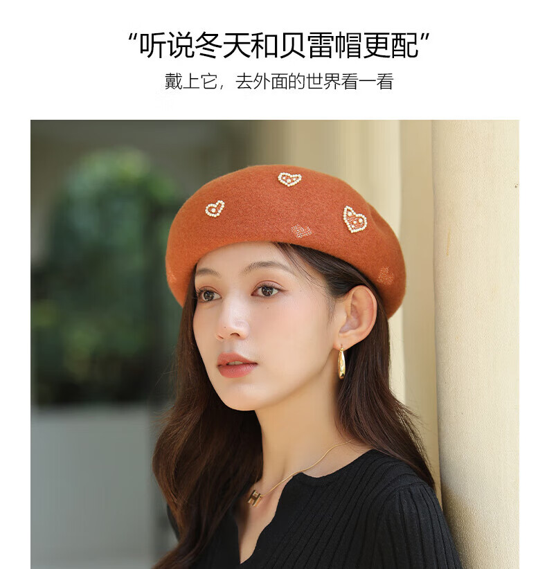 GEFWEIMKL Merino wool beret women's autumn and winter fashion versatile painter's hat women's face-showing small woolen octagonal hat camel M (56-58cm)