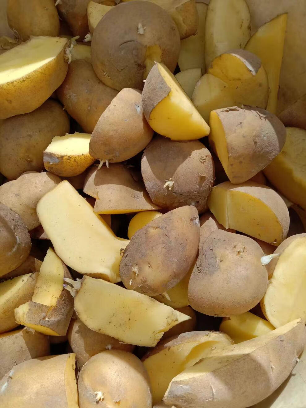 Authentic Qiuying Dutch fifteen-year-old potatoes with yellow hearts and yellow skins, first-generation potatoes and potato seeds, germinated and shipped whole and cut into pieces 1500g, well cut into pieces, medium-sized fruits, well cut into pieces