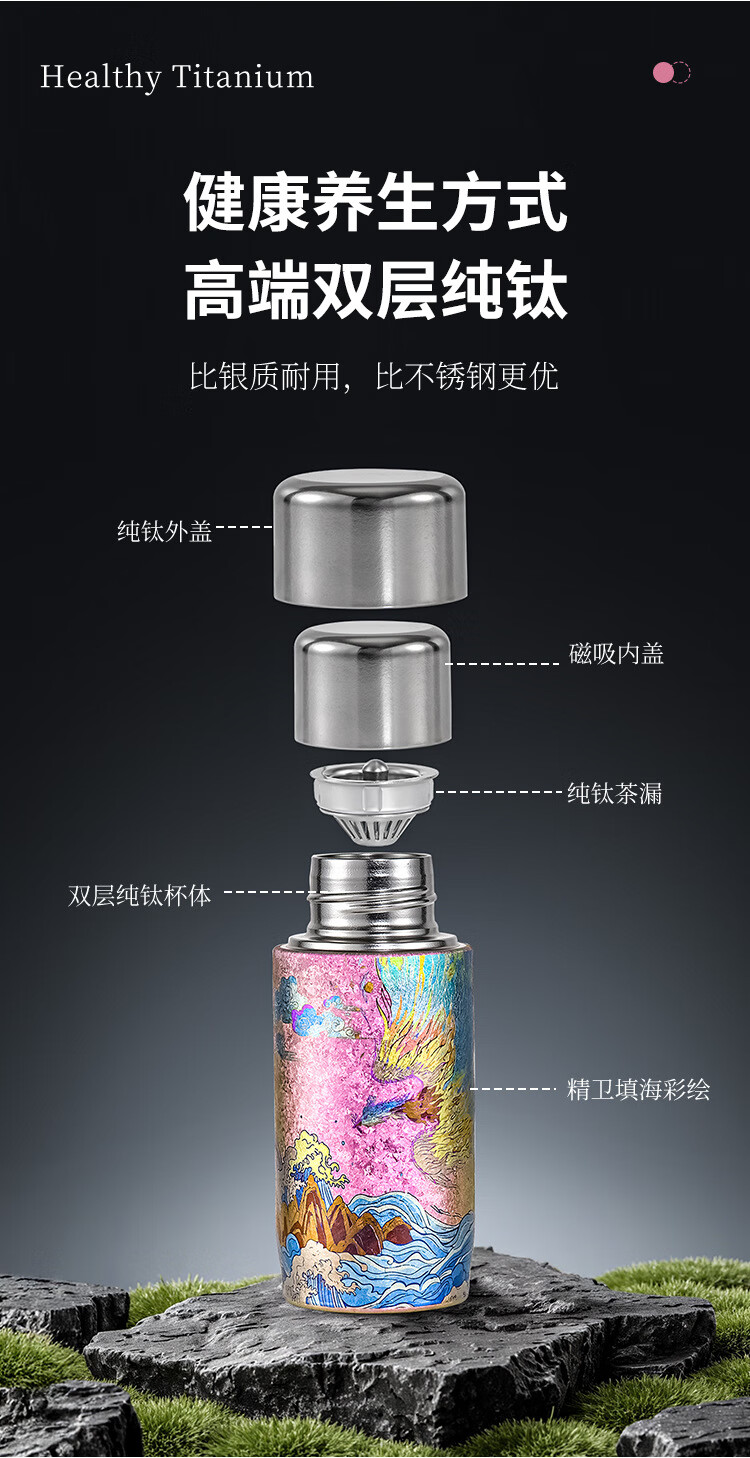 Lanjingge 2025 new double-layer pure titanium multi-purpose coffee cup thermos cup thermos goddess cup creative portable titanium portable Jingwei 330ml