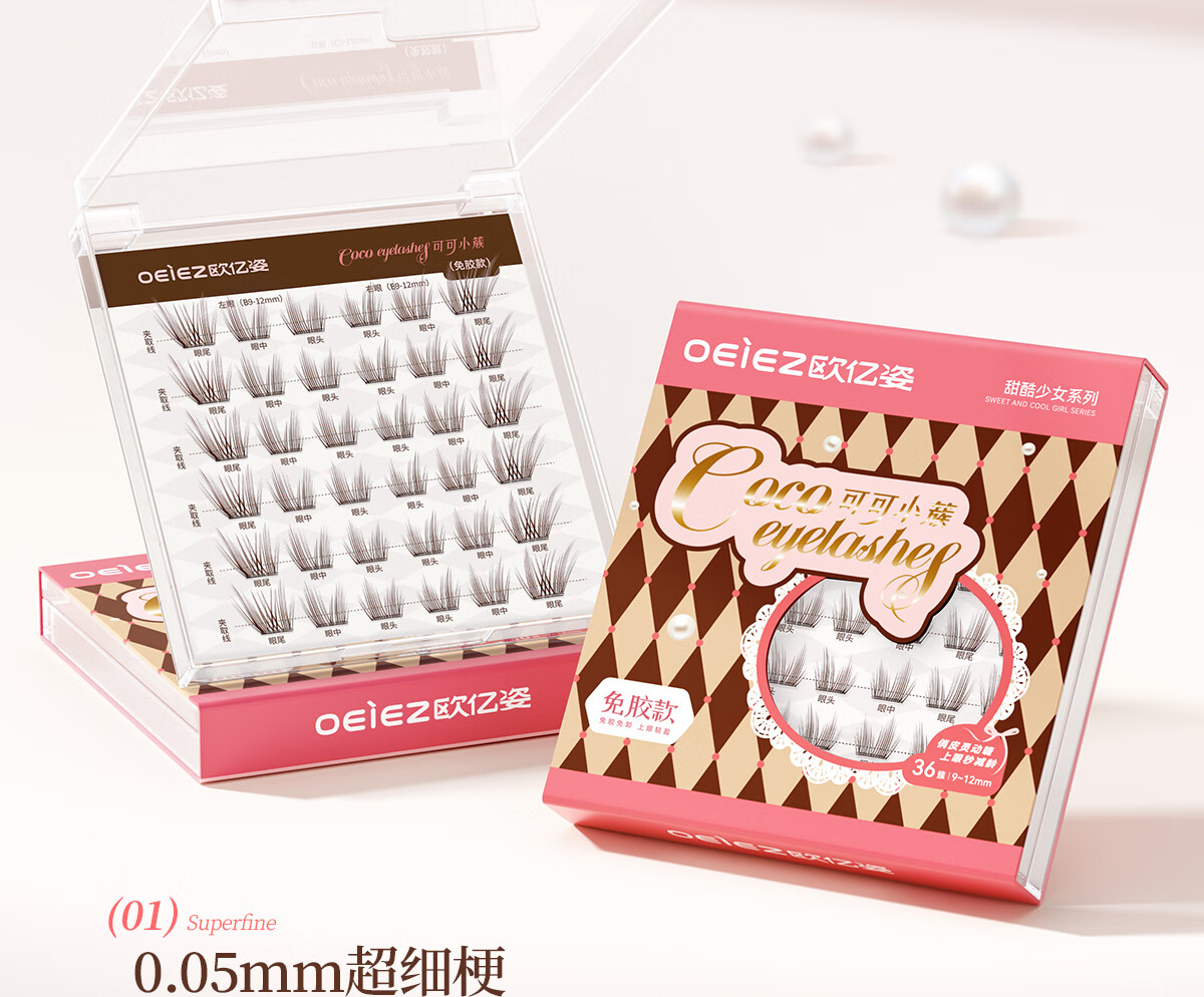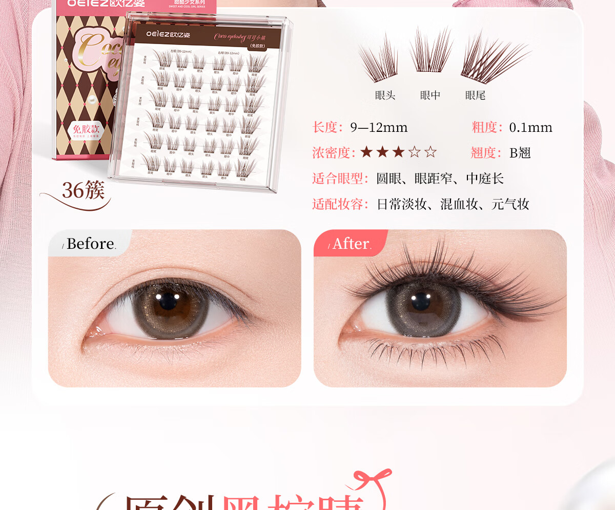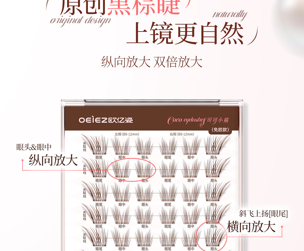 Oeiez Glue-free False Eyelashes Bionic Vitality Makeup Natural Mommy Feeling 0-sense Eye-catching Eye Shape Enlarges Eyes Glue-Free Cocoa Small Clusters *1 Box