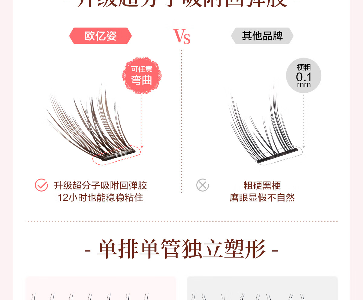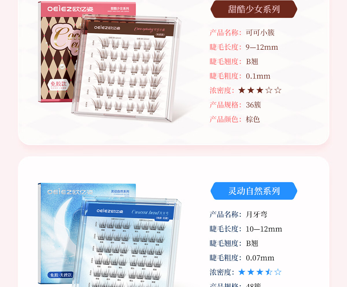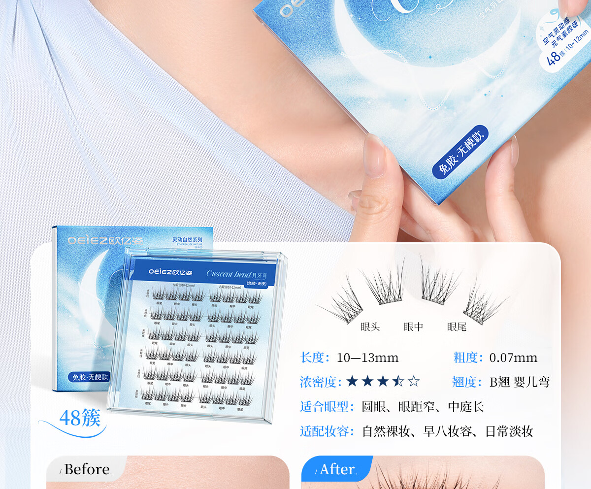 Oeiez Glue-free False Eyelashes Bionic Vitality Makeup Natural Mommy Feeling 0-sense Eye-catching Eye Shape Enlarges Eyes Glue-Free Cocoa Small Clusters *1 Box