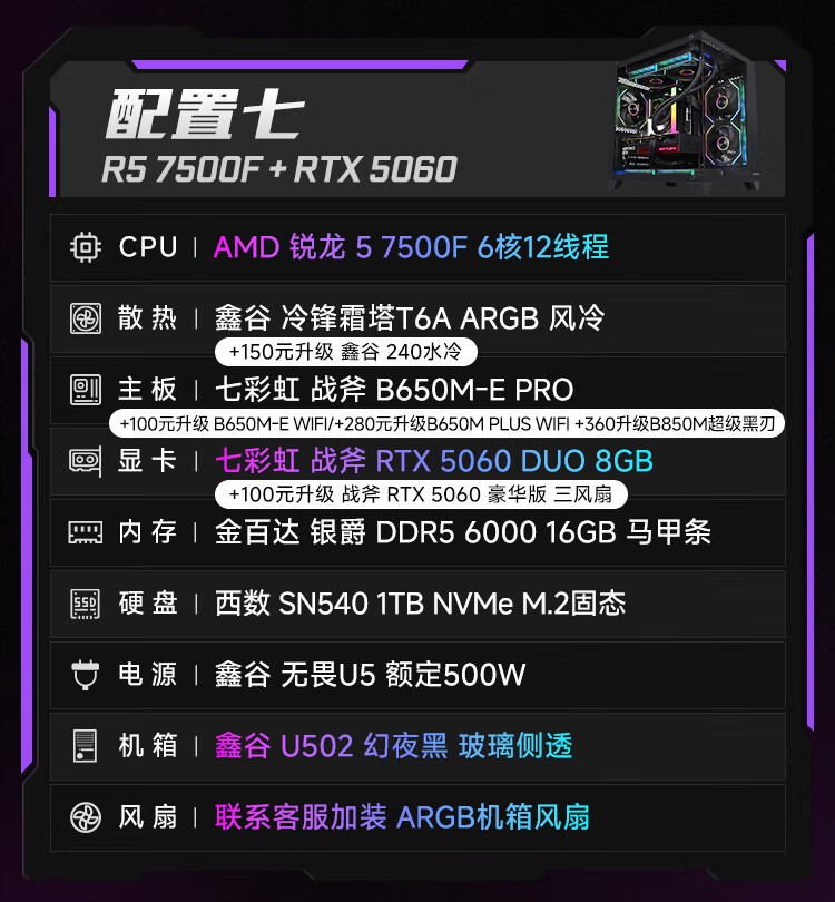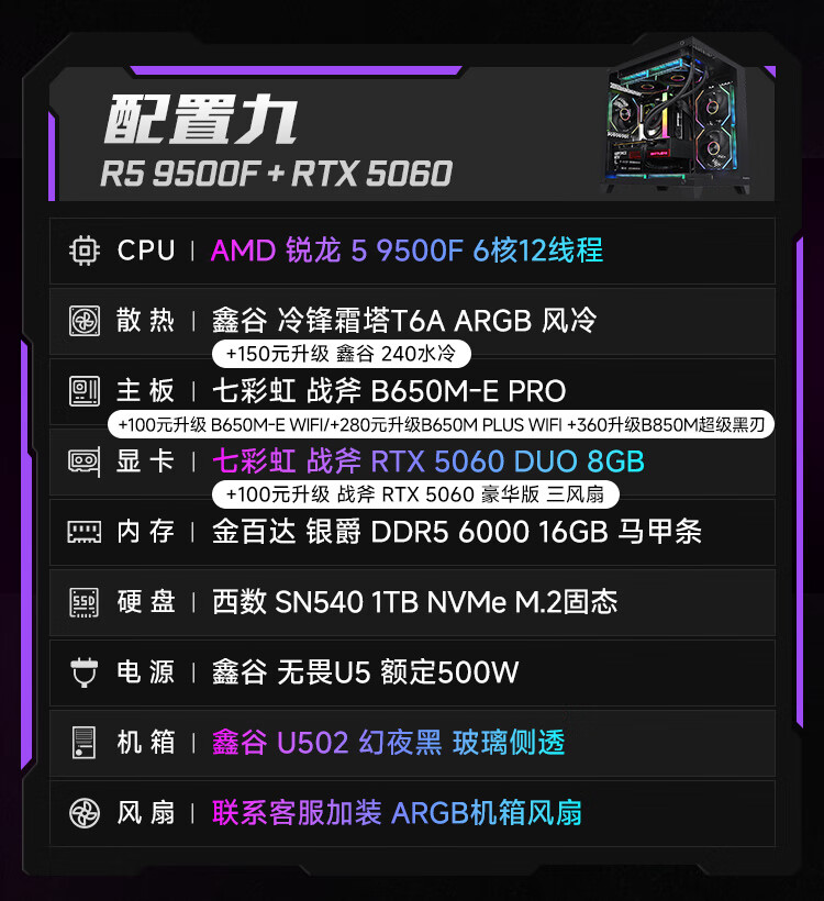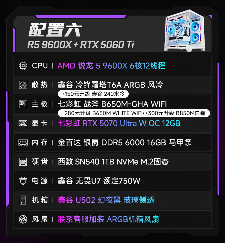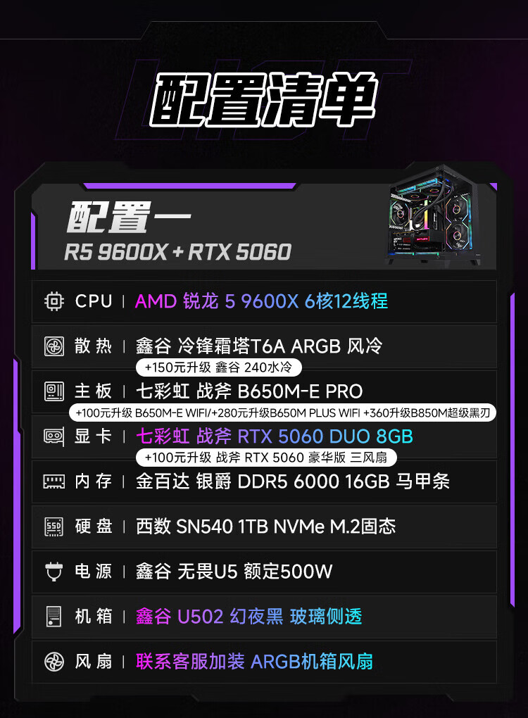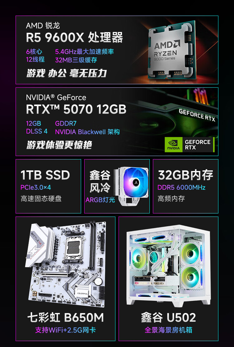 Colorful Ruilong 9600X/7500F/5060/5060ti/5070 game console 3A masterpiece live desktop computer productivity AI model rendering DIY assembly machine with one 9600X+RTX5060 black single host