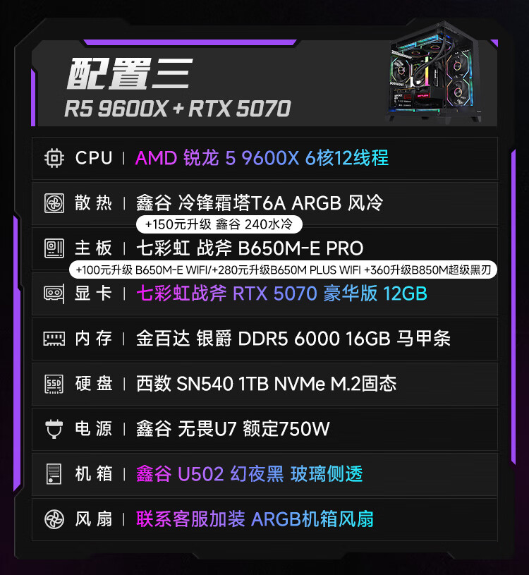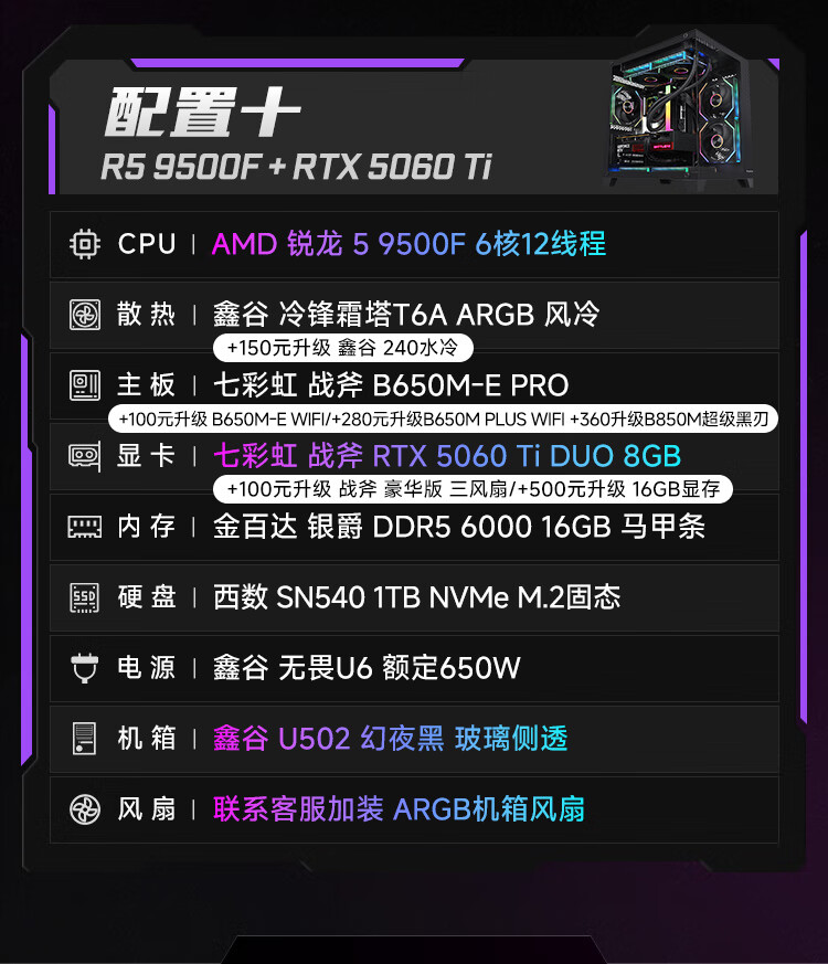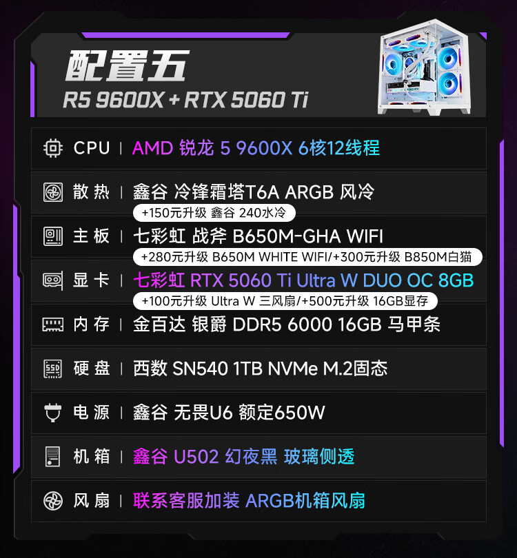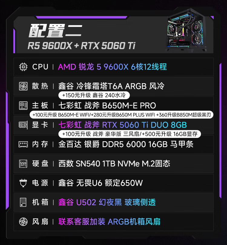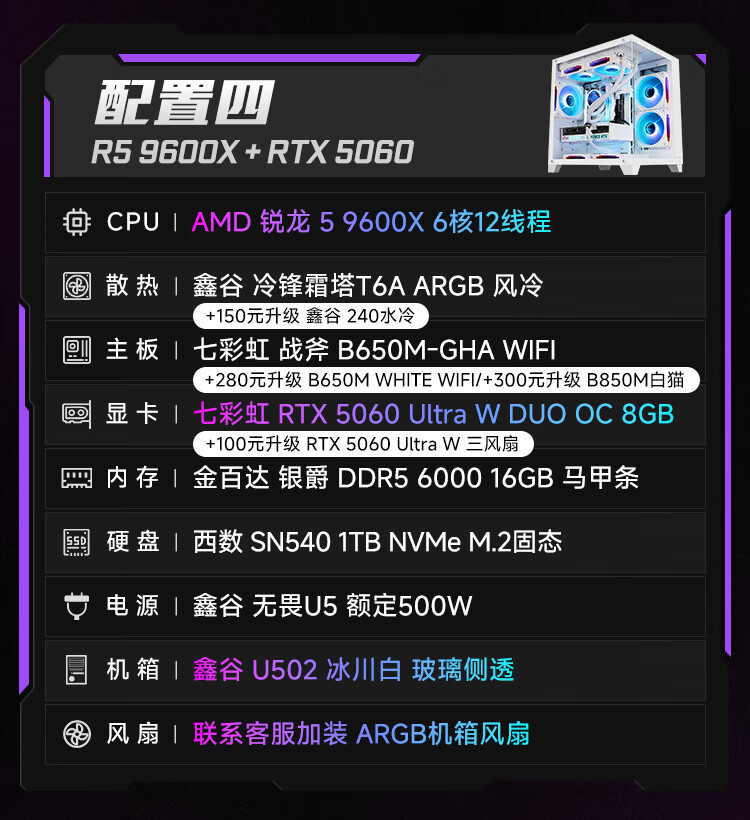 Colorful Ruilong 9600X/7500F/5060/5060ti/5070 game console 3A masterpiece live desktop computer productivity AI model rendering DIY assembly machine with one 9600X+RTX5060 black single host