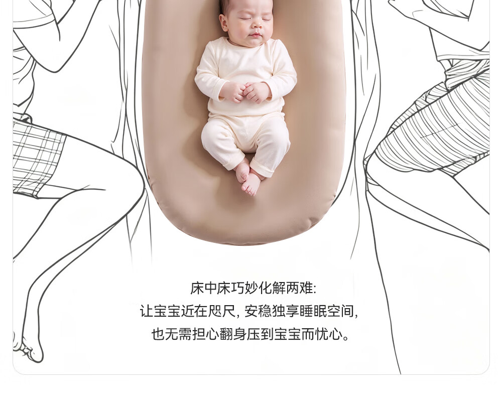 YEEHOO shopping mall same model crib mid-bed newborn anti-jump baby coaxing bed breathable skin-friendly sleeping mat cocoa brown
