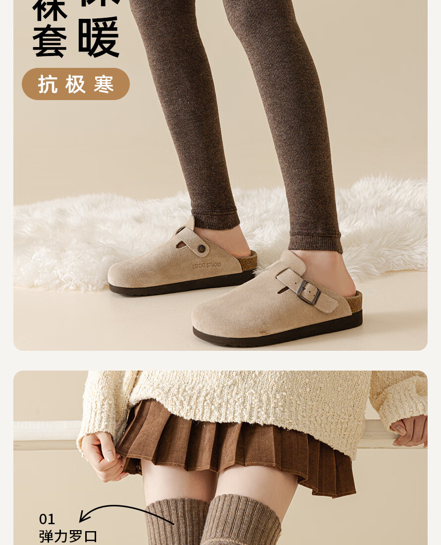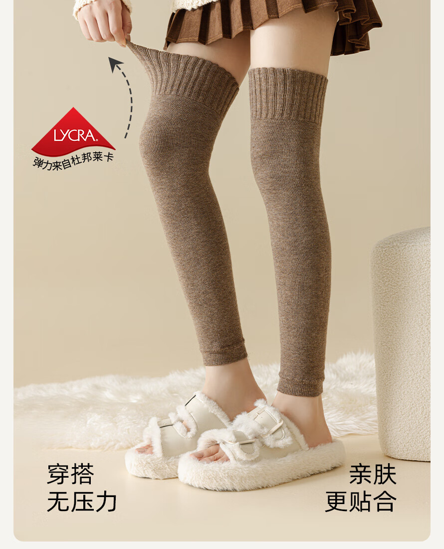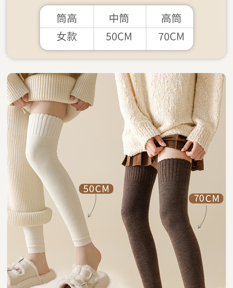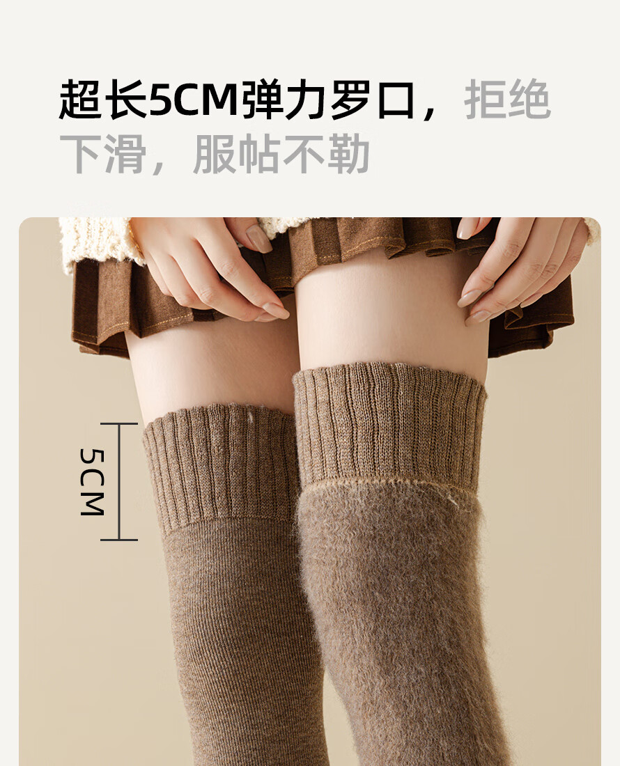 JCZS German quality knee pads plus velvet over-the-knee stockings for women, autumn and winter anti-slip, warm knee-protecting leg socks, light coffee, regular style 50CM