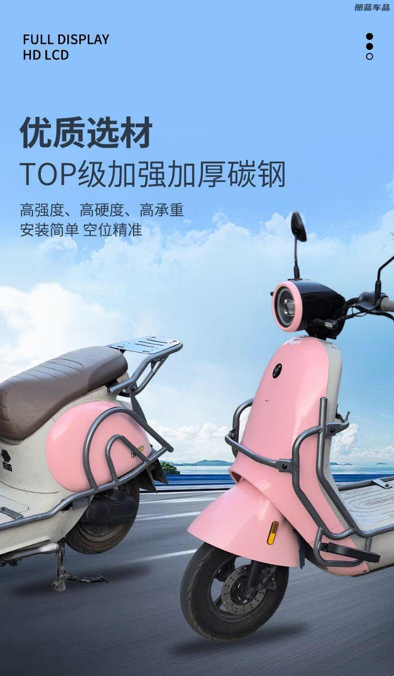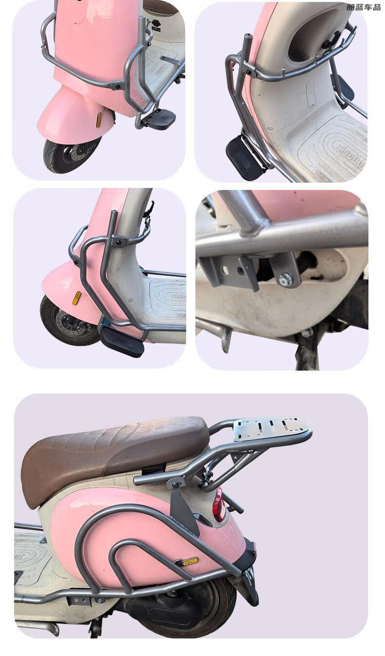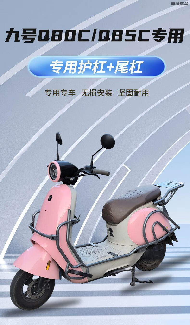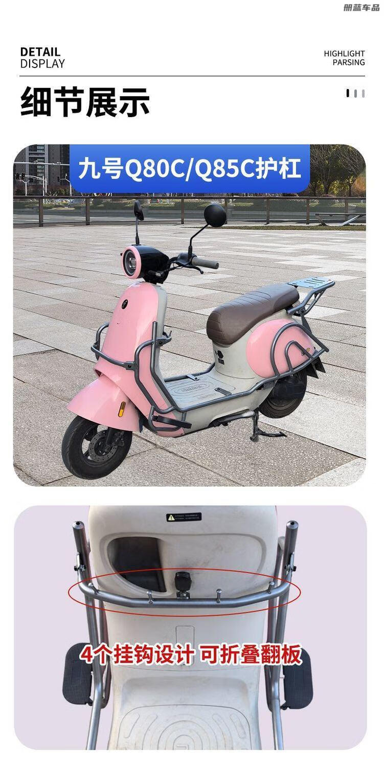 Suitable for No.9 Q80C/Q85C electric motorcycle premium bumper made of thickened carbon steel No.9 Q80C-Q85C bumper (silver gray) front bumper with foot pedal + rear bumper + tailstock 2 anti-collision blocks included