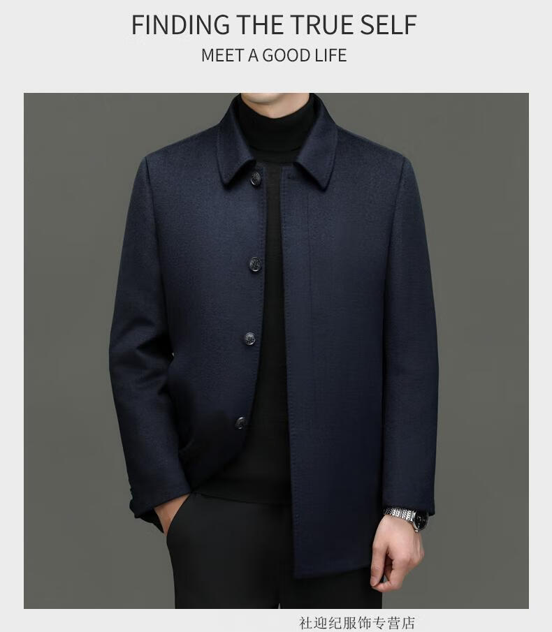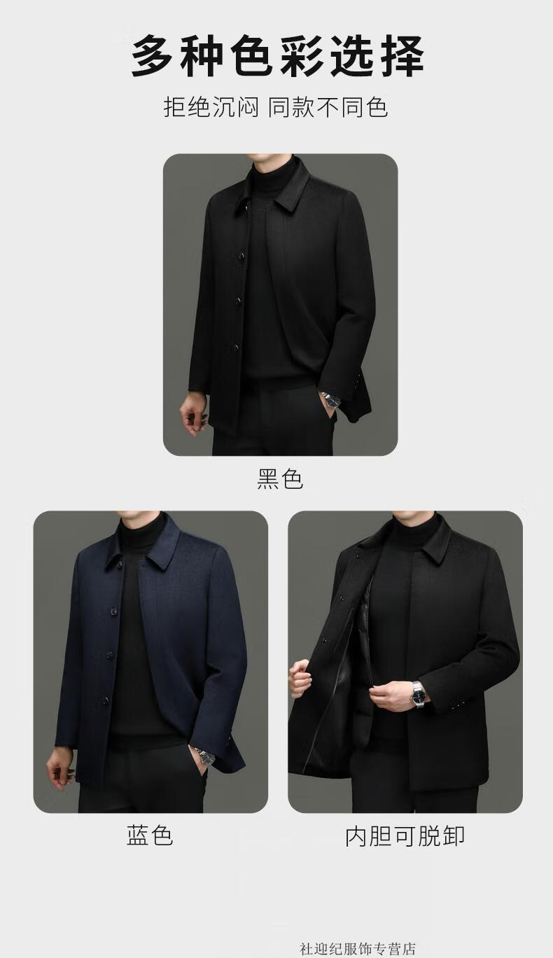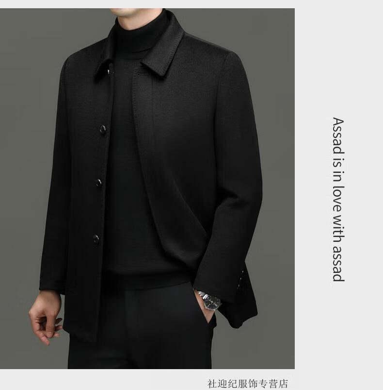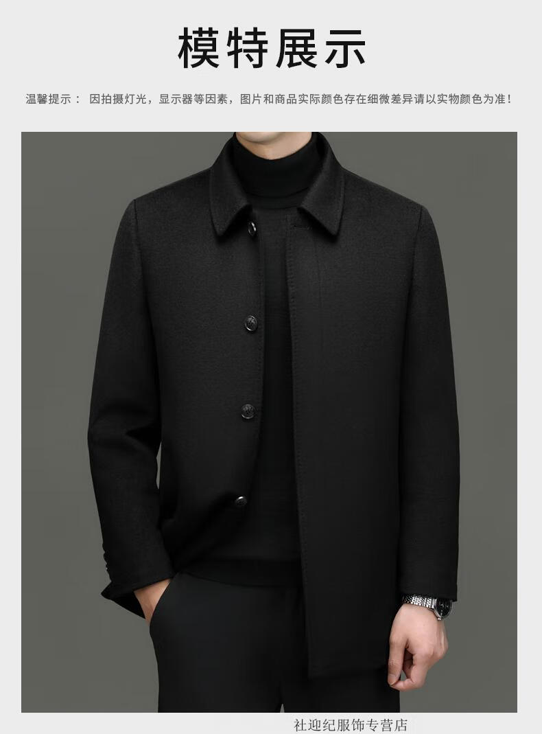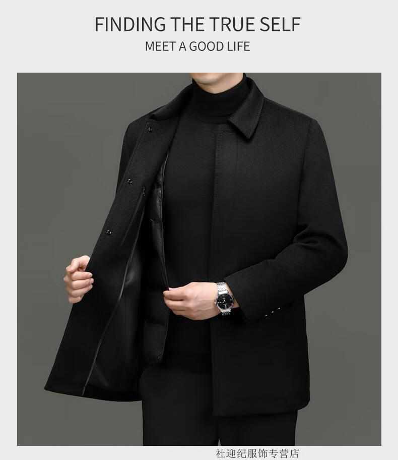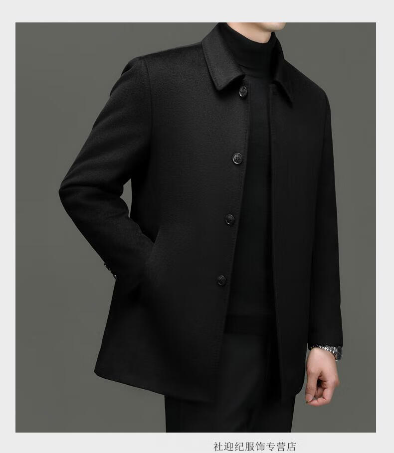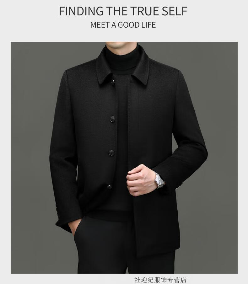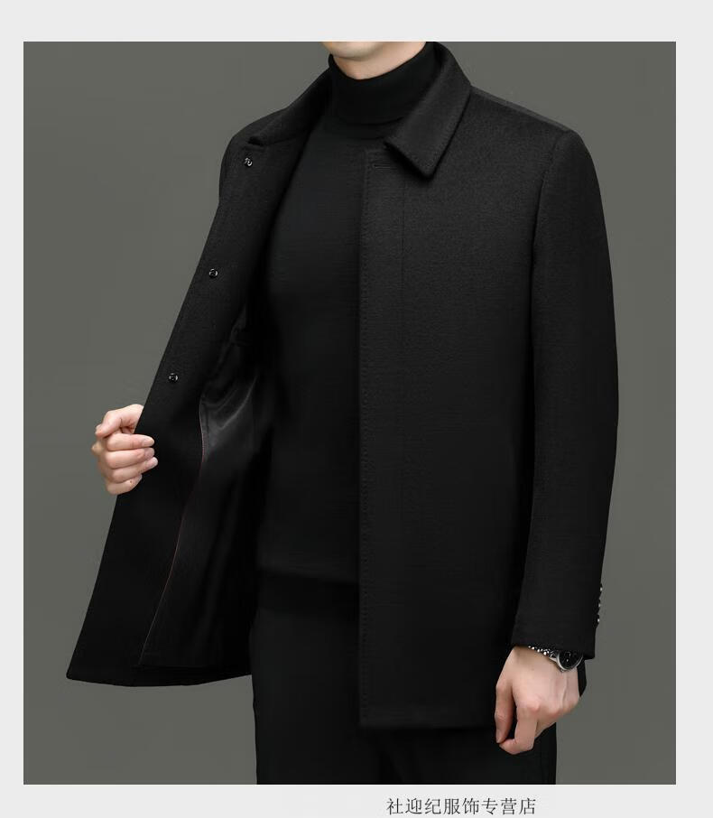 HARTMARX Youngor Cashmere Coat Men's Winter Lapel Wool Woolen Men's Winter Liner Dad's Warm Jacket Black M 170 Recommended 95-125 Jin Jin equals 0.5 kg