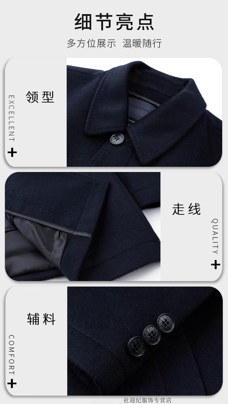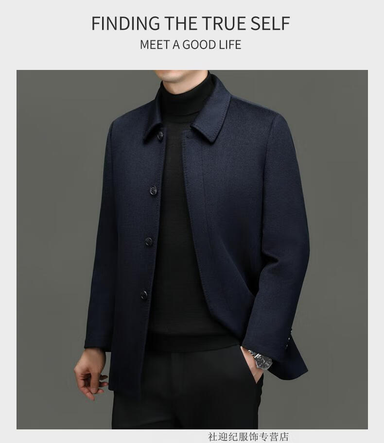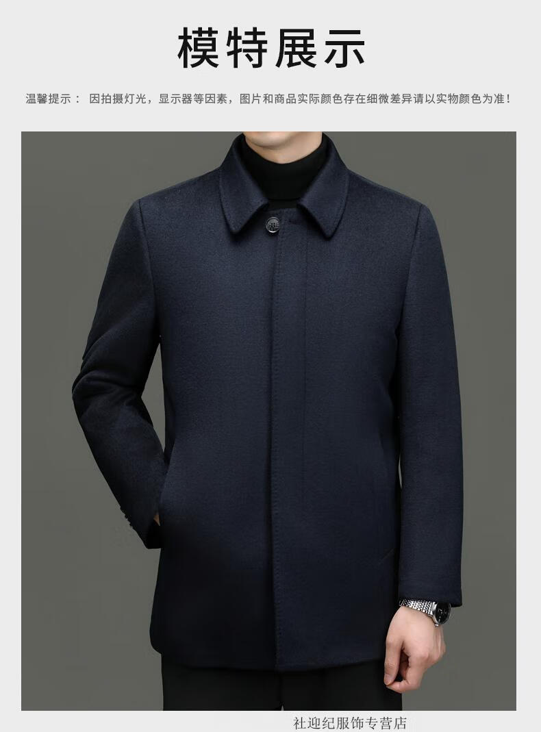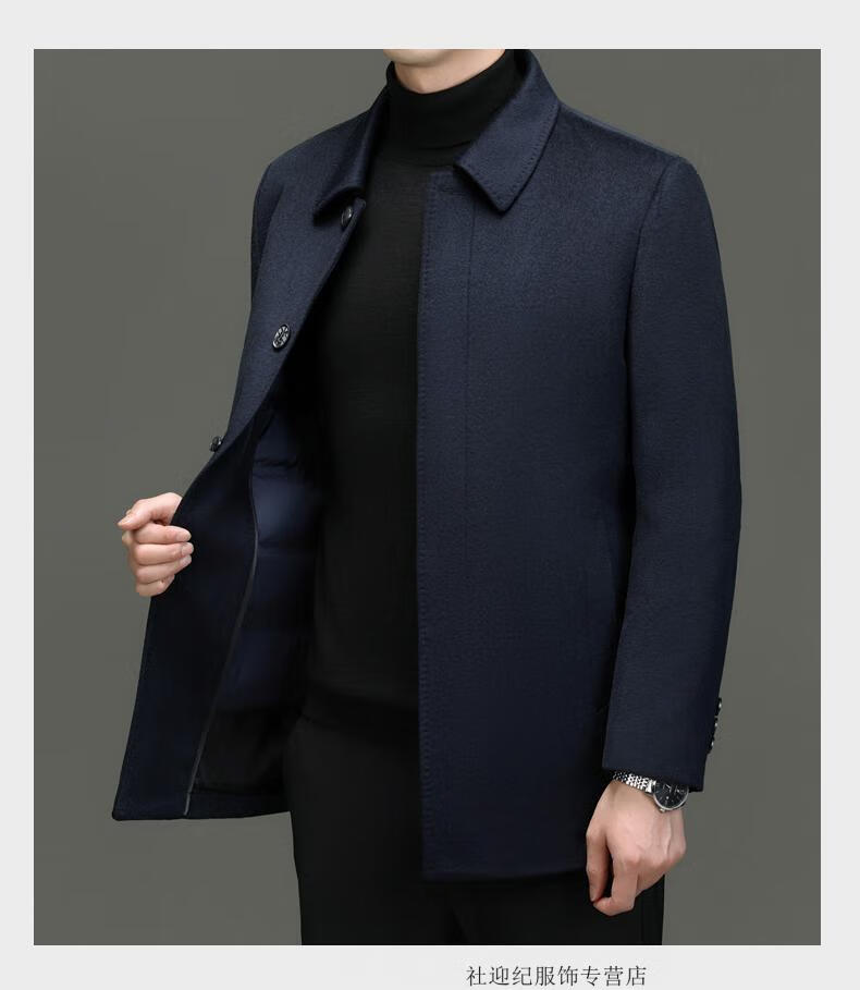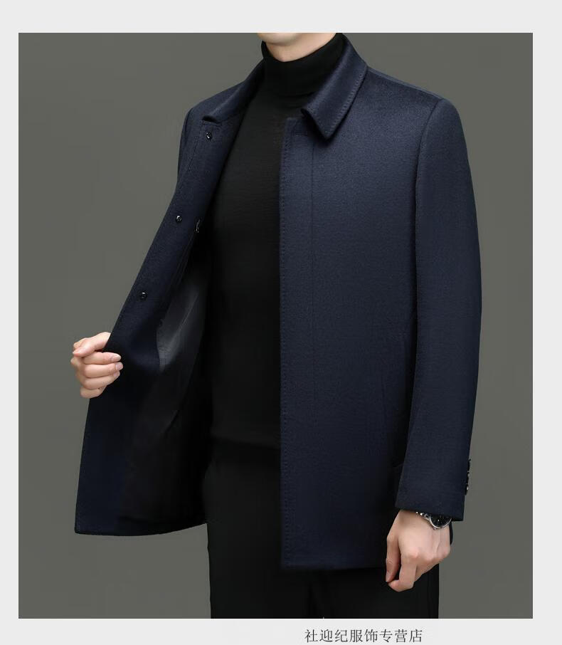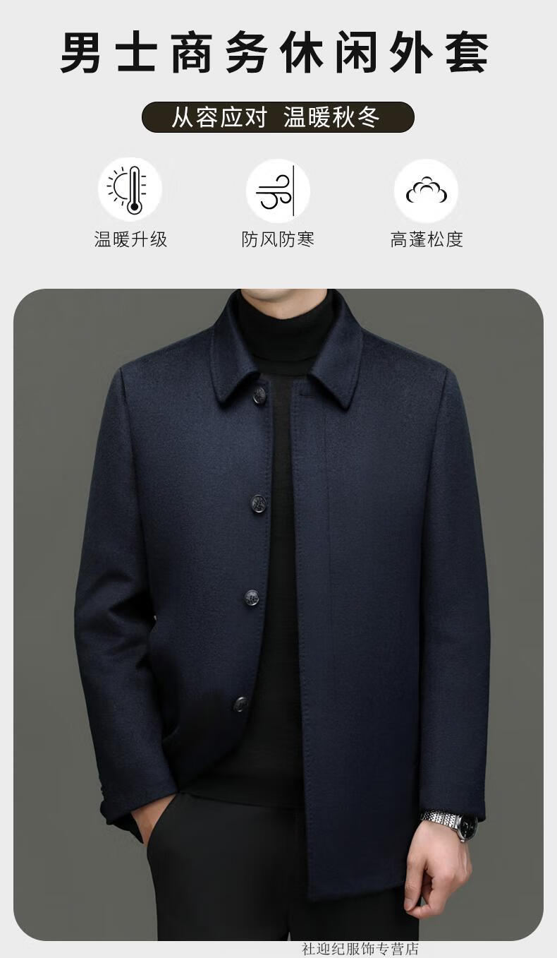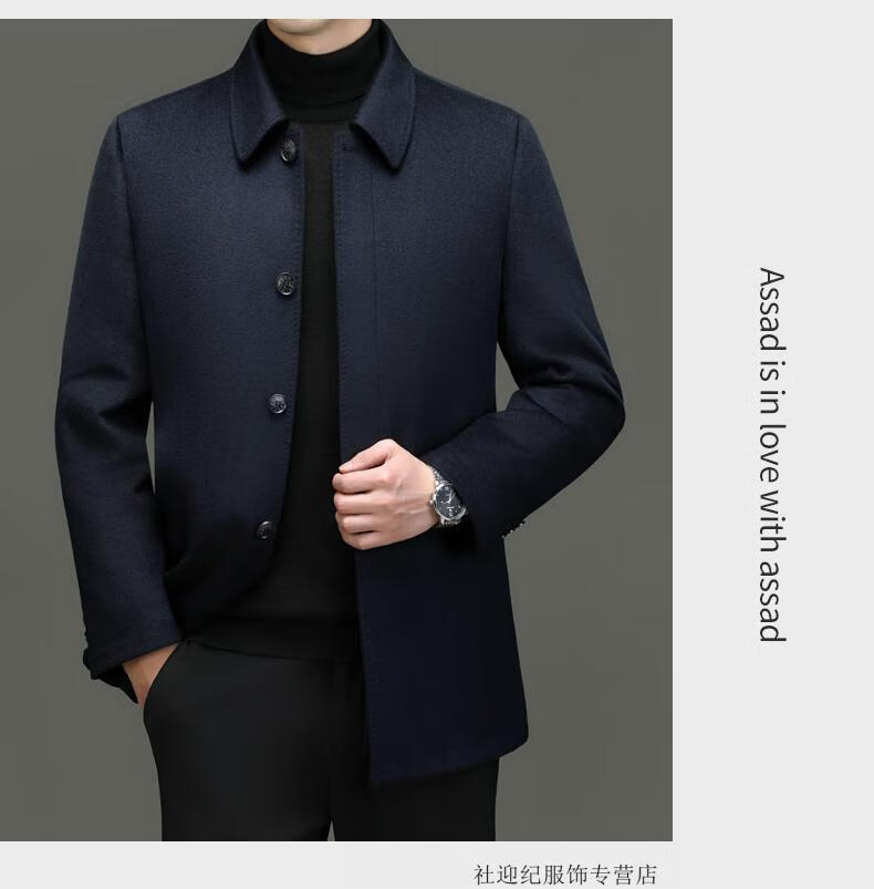 HARTMARX Youngor Cashmere Coat Men's Winter Lapel Wool Woolen Men's Winter Liner Dad's Warm Jacket Black M 170 Recommended 95-125 Jin Jin equals 0.5 kg