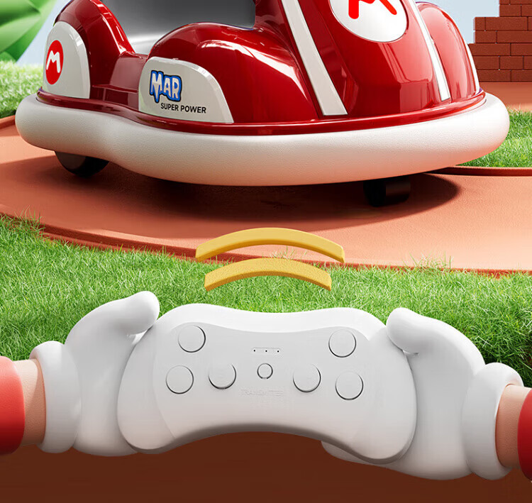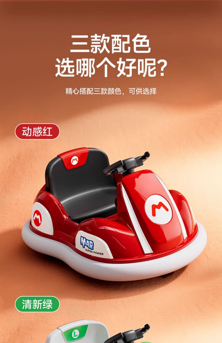 Hoyos German children's electric bumper car children's baby toy car can sit with remote control baby four-wheel car dual dual-drive remote control can 360 Drift Green + 4A large battery