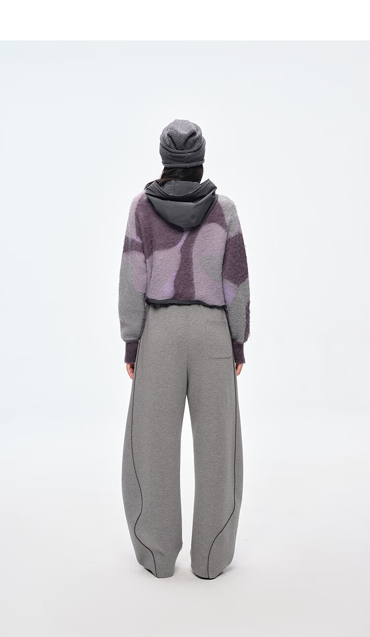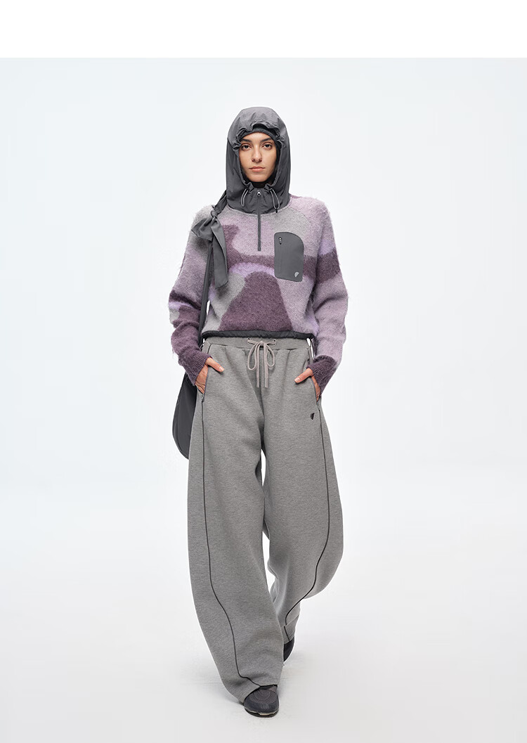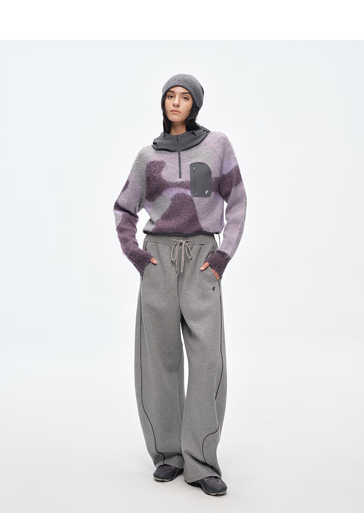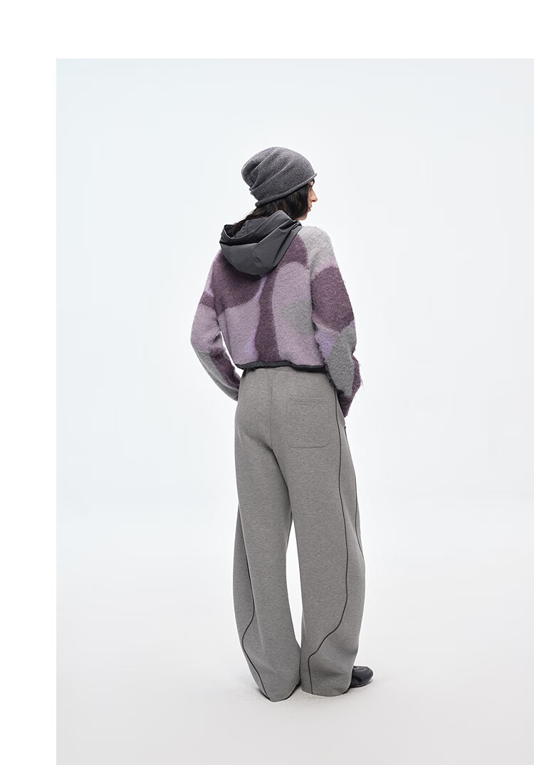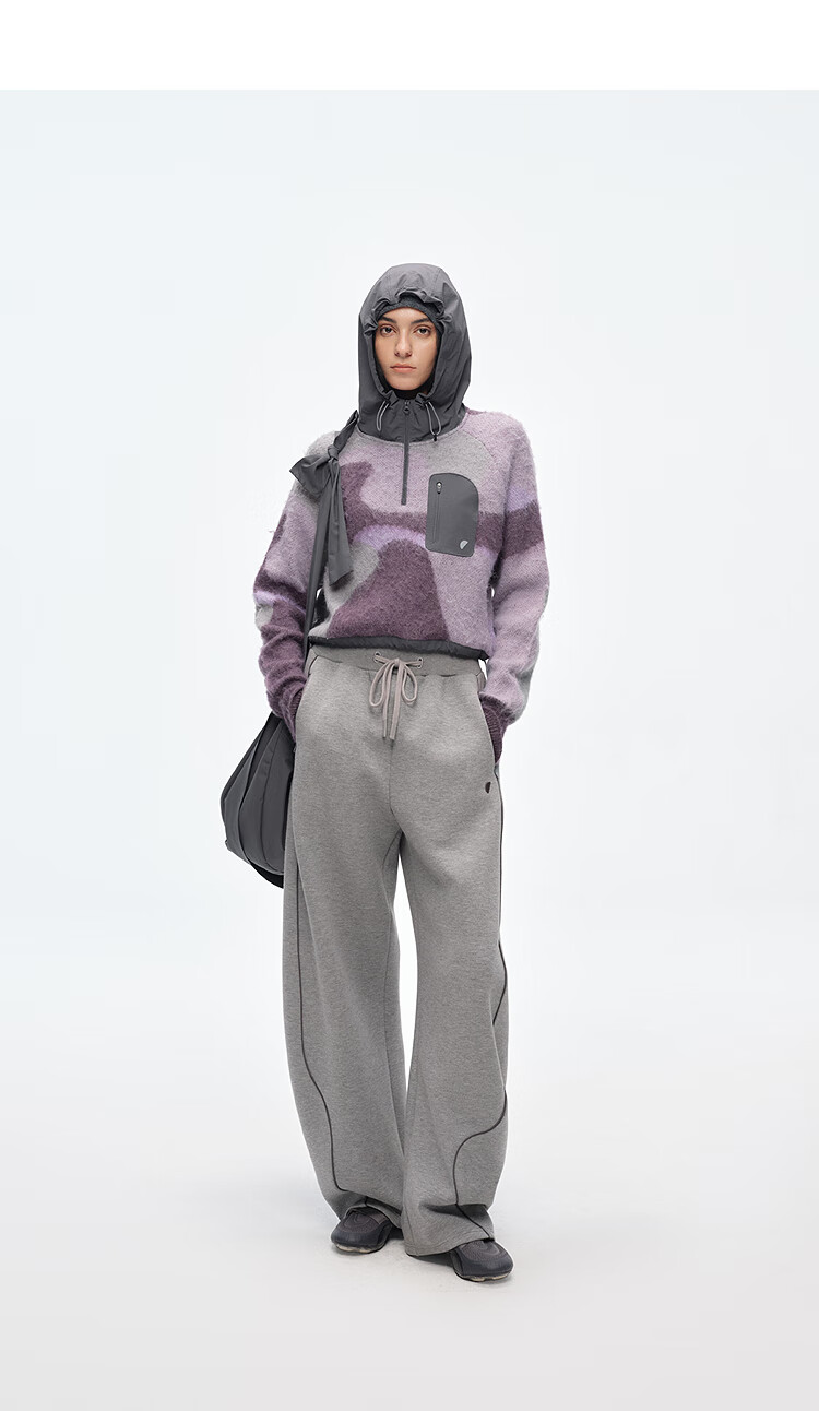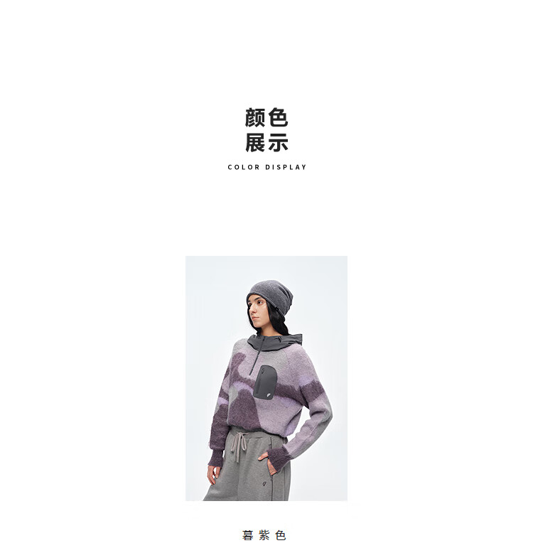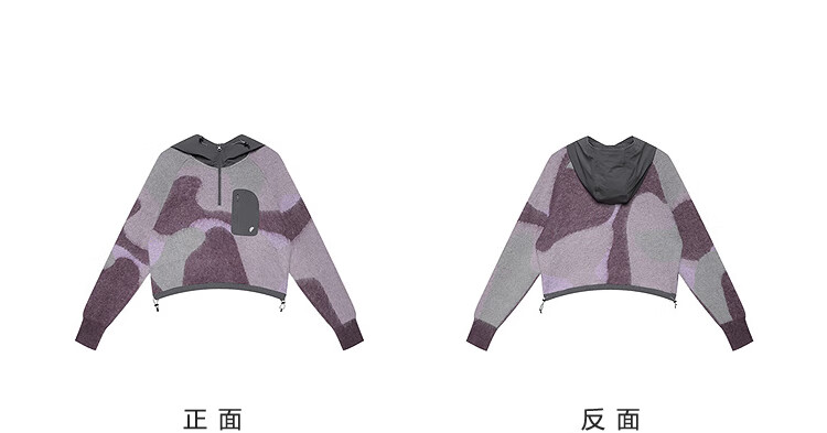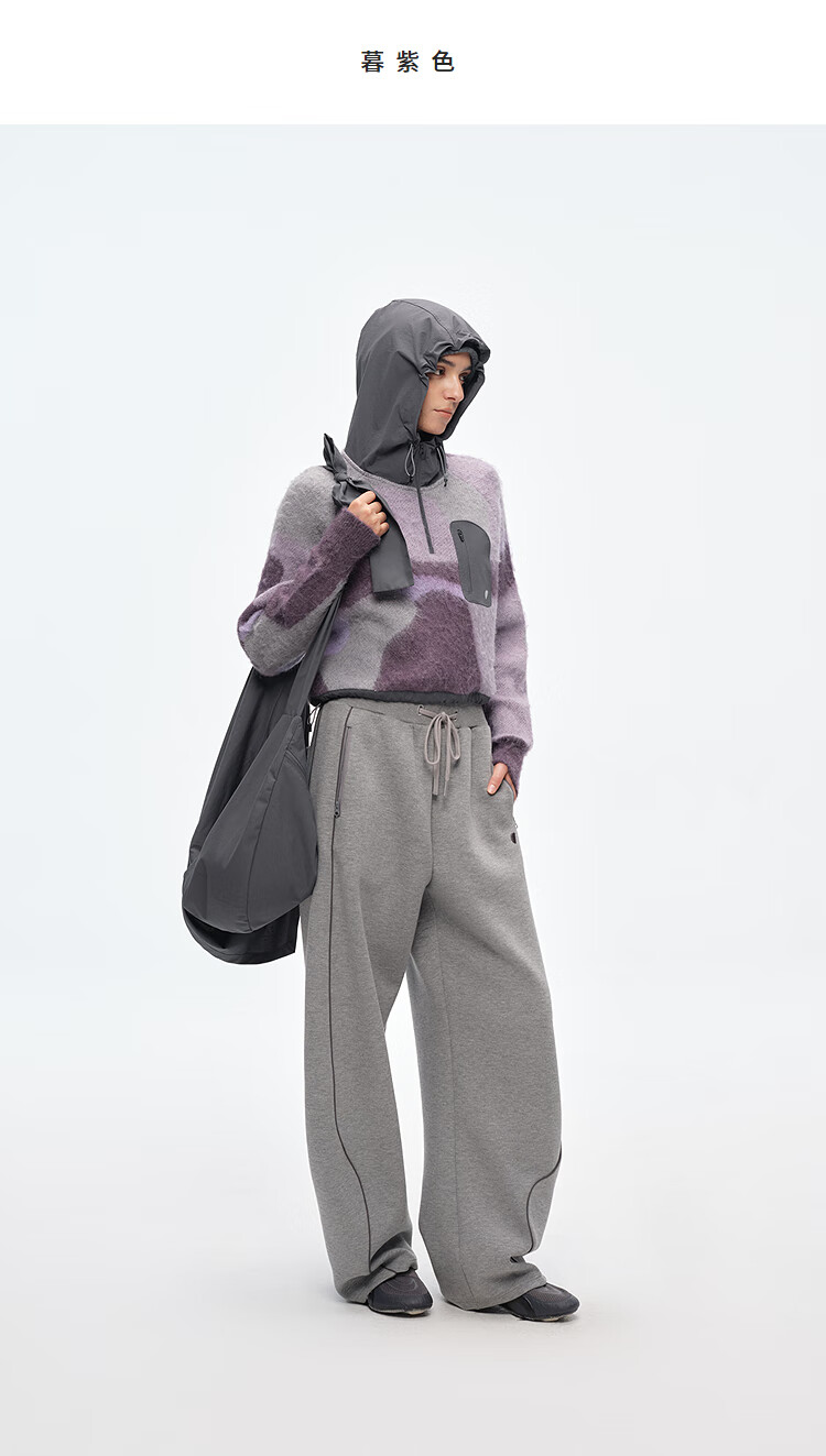 Semicircular three-color yarn interwoven women's sports 2025 winter hooded irregular jacquard texture sweater for women, twilight purple (pre-sale) M