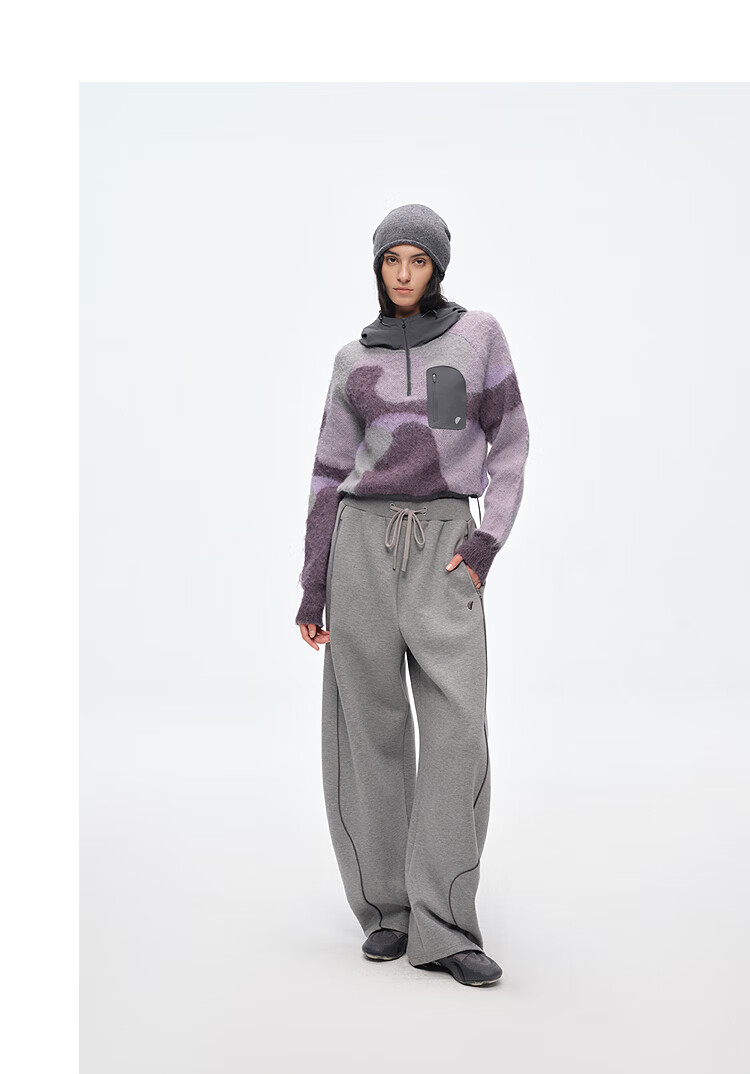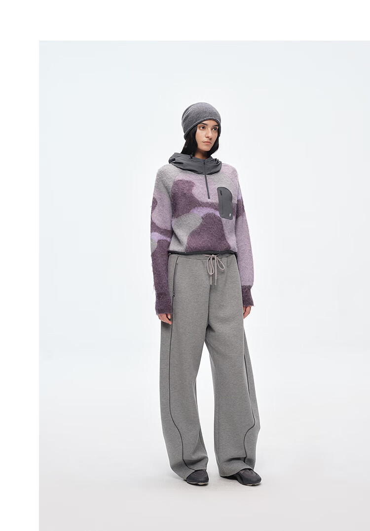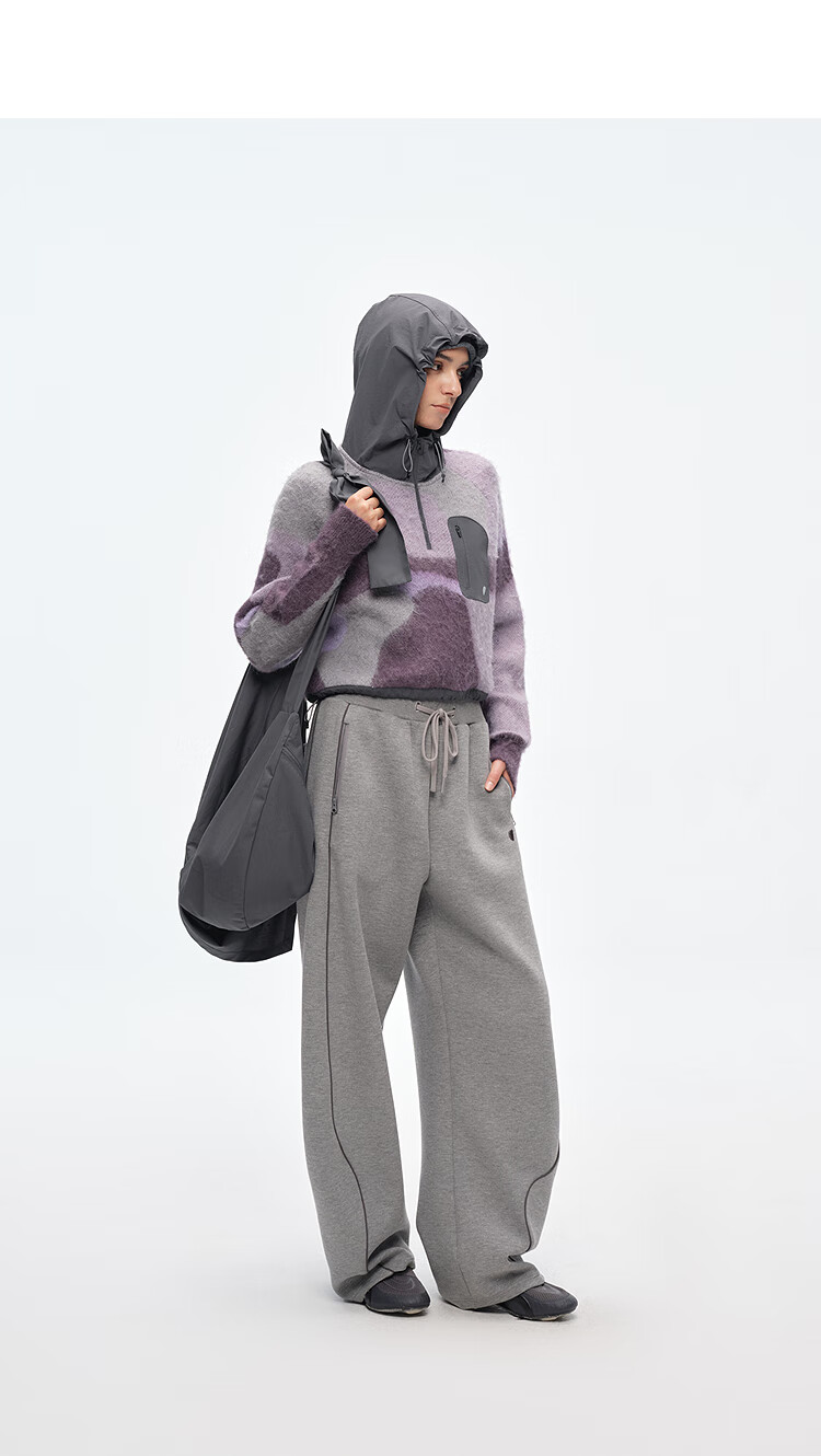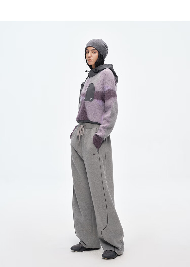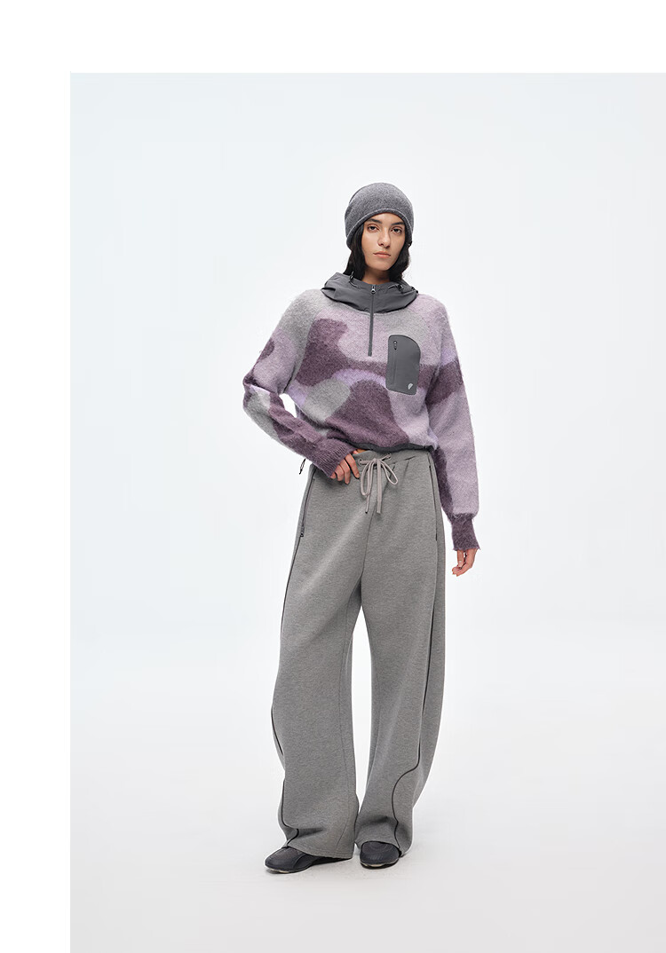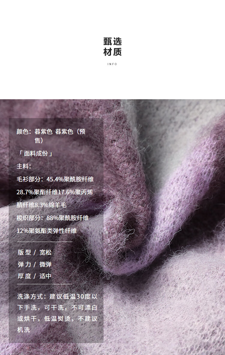 Semicircular three-color yarn interwoven women's sports 2025 winter hooded irregular jacquard texture sweater for women, twilight purple (pre-sale) M
