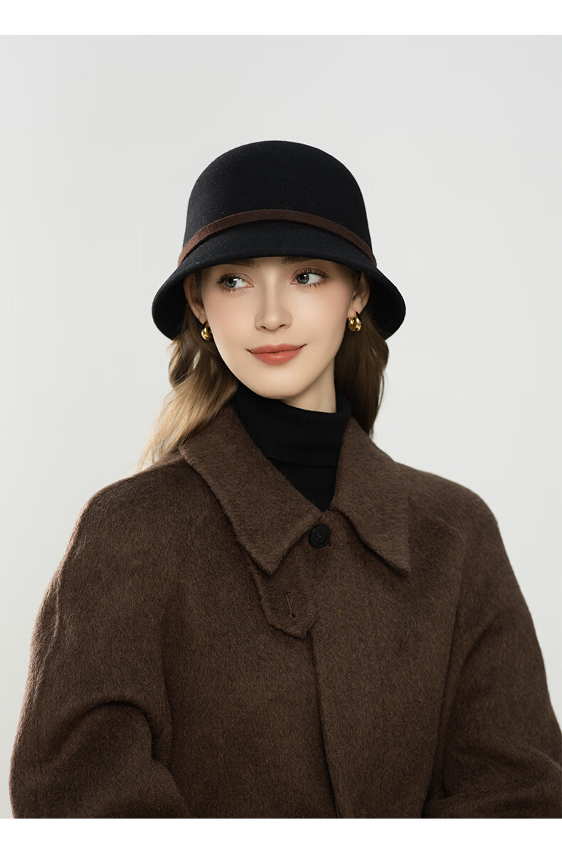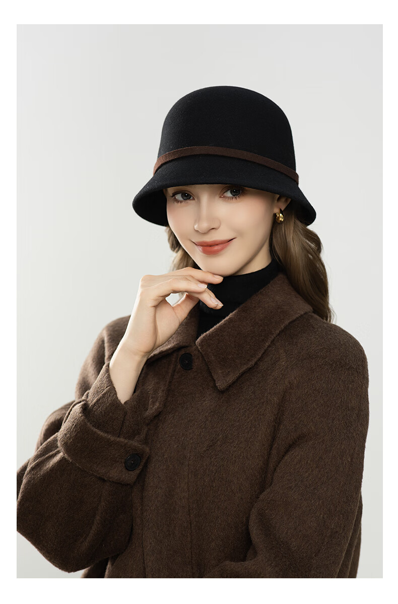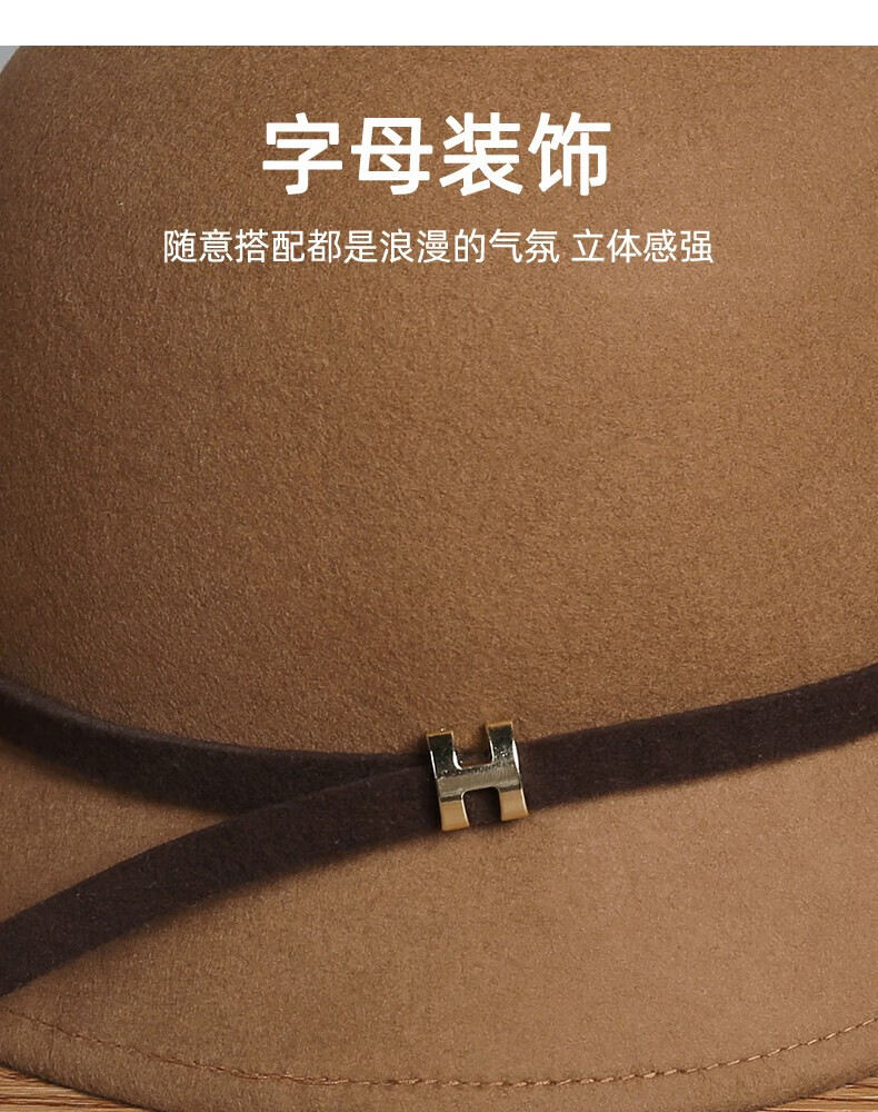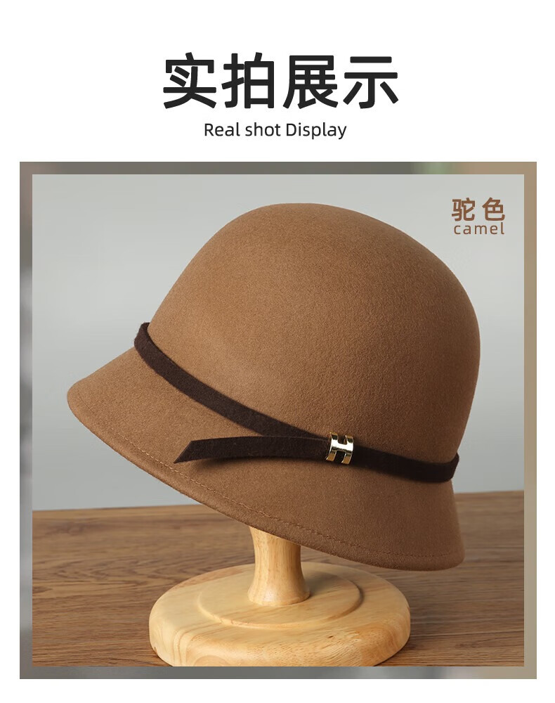 Lanshimengdai 2025 new autumn and winter retro wool basin hat top hat for women, elegant temperament, versatile hat, fashionable and elegant, camel 56-58cm