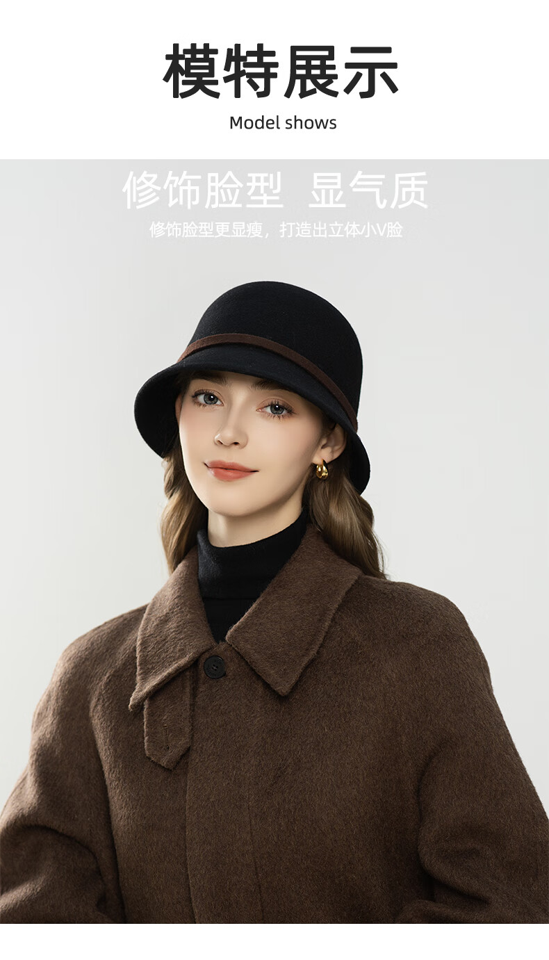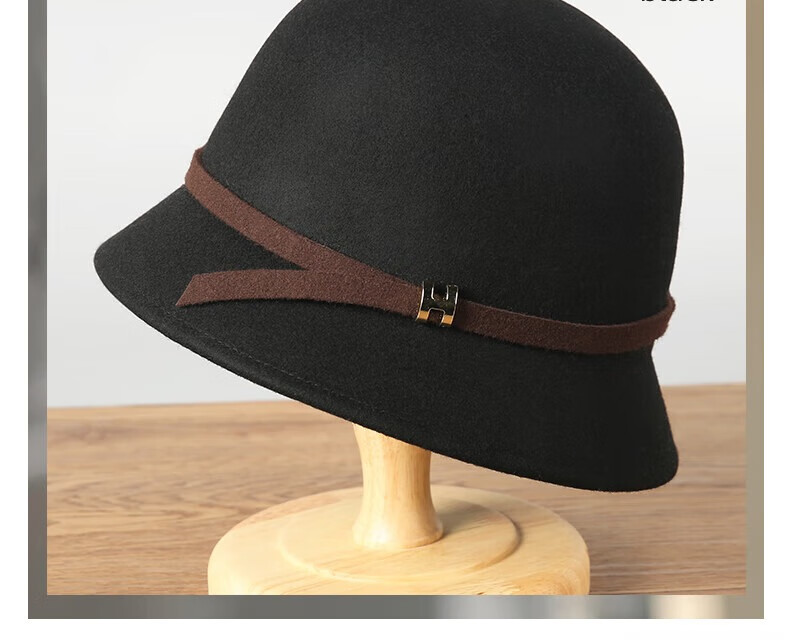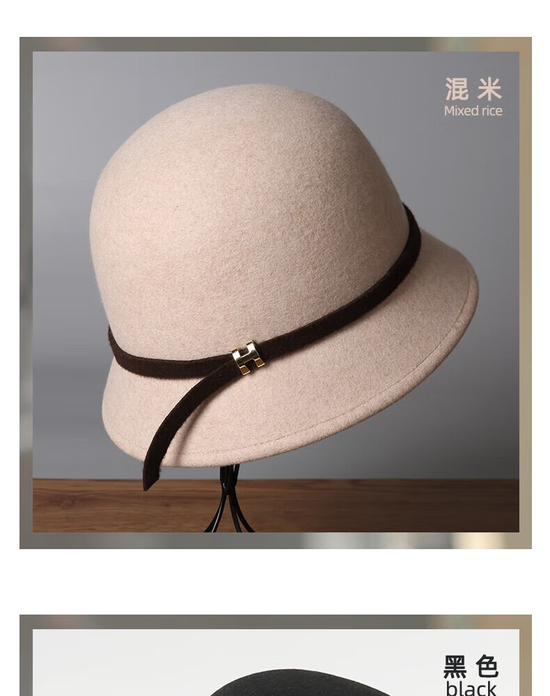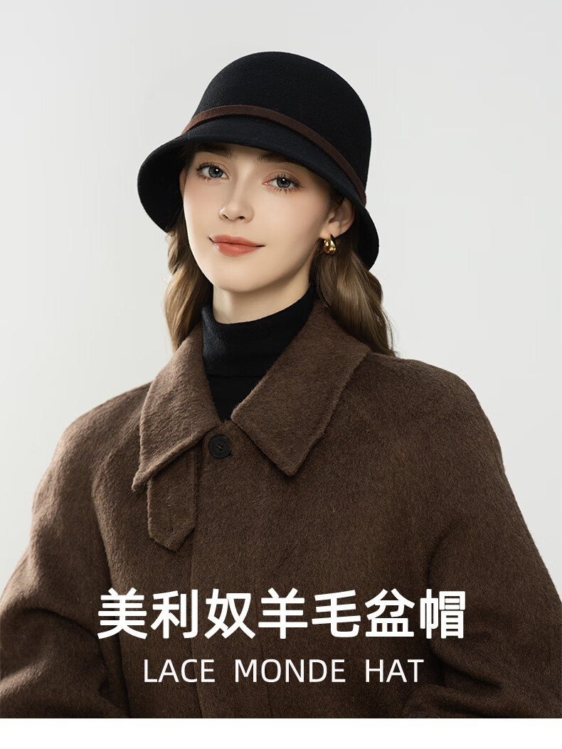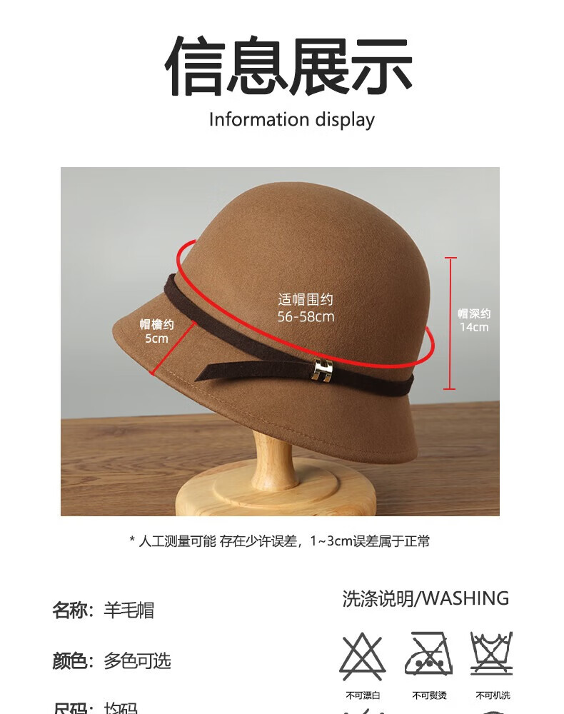 Lanshimengdai 2025 new autumn and winter retro wool basin hat top hat for women, elegant temperament, versatile hat, fashionable and elegant, camel 56-58cm