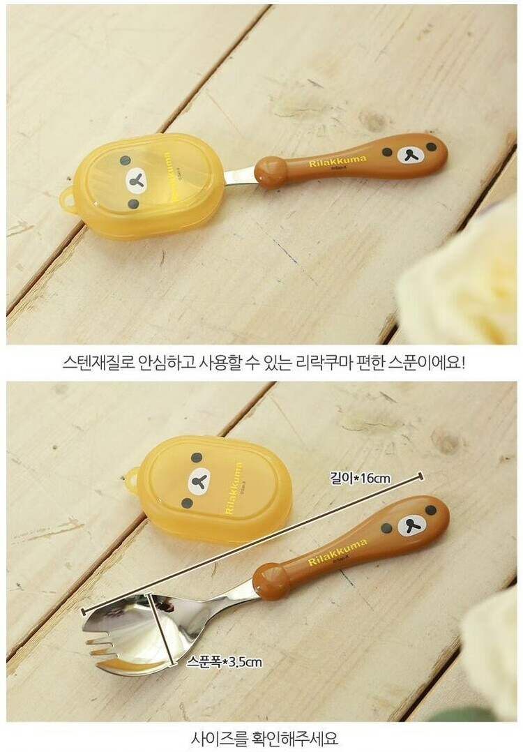 Bear (Bear) rilakkuma stainless steel fork spoon children's tableware portable feeding spoon 3 years old and above brown bear fork spoon