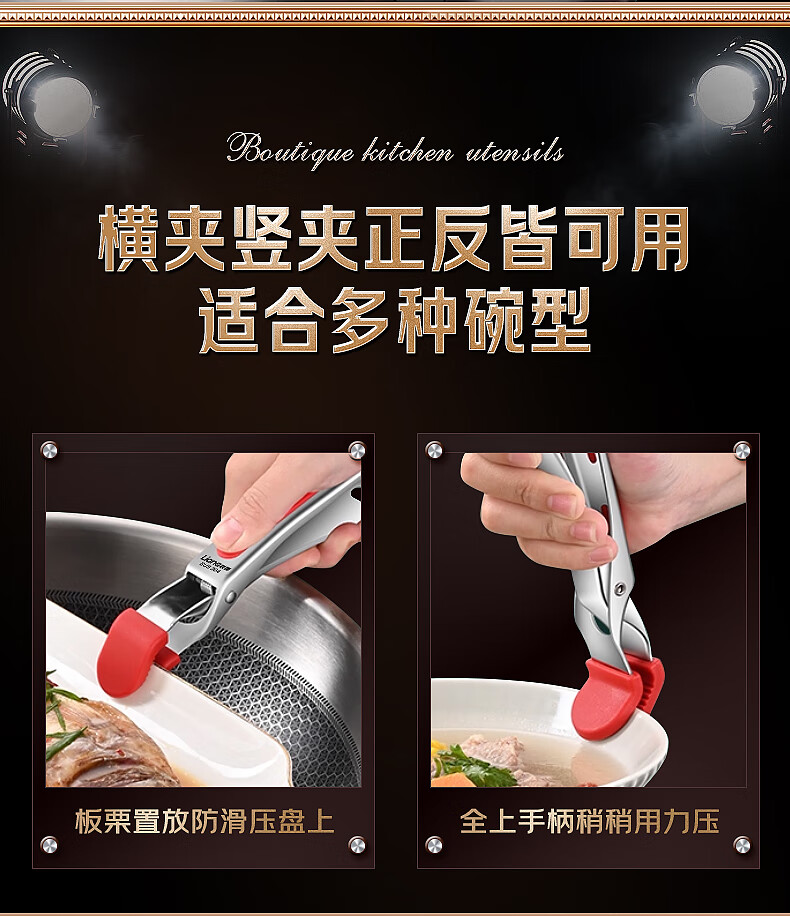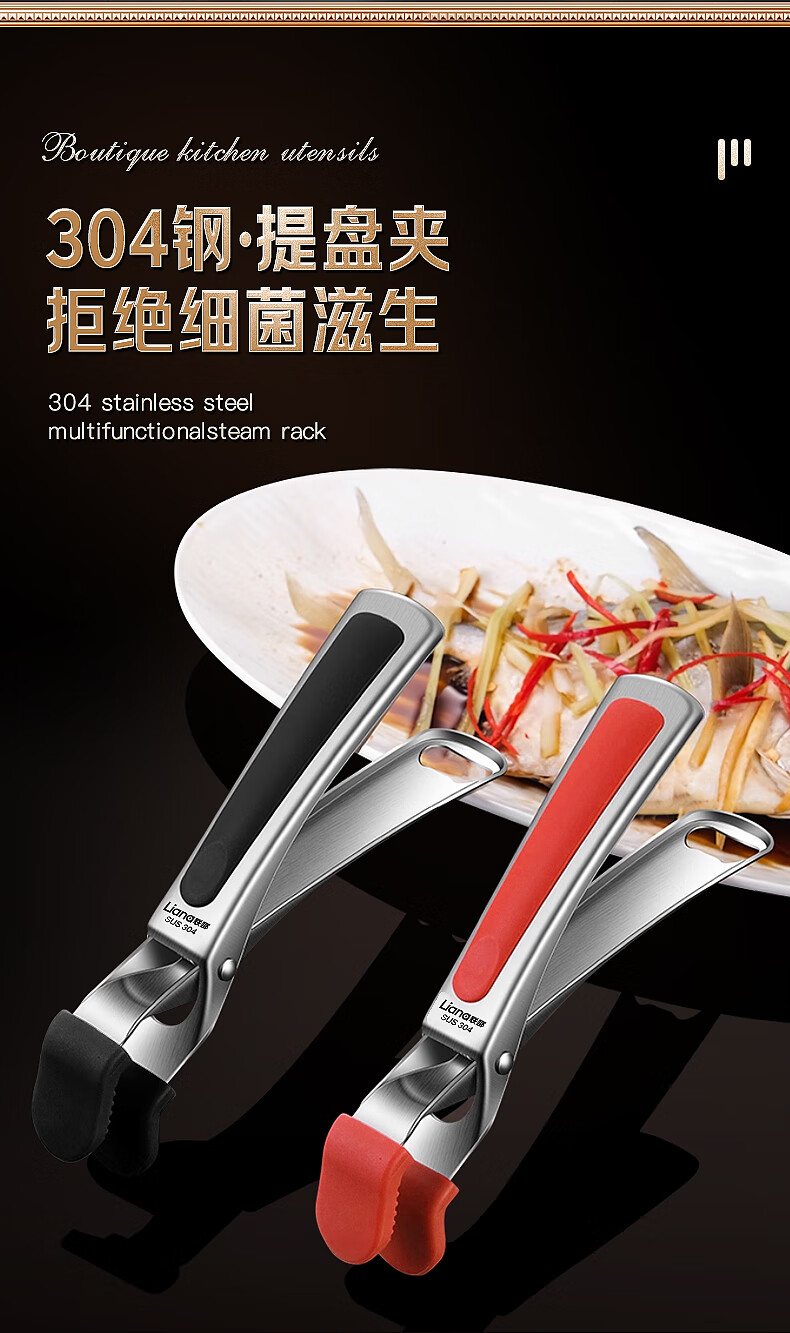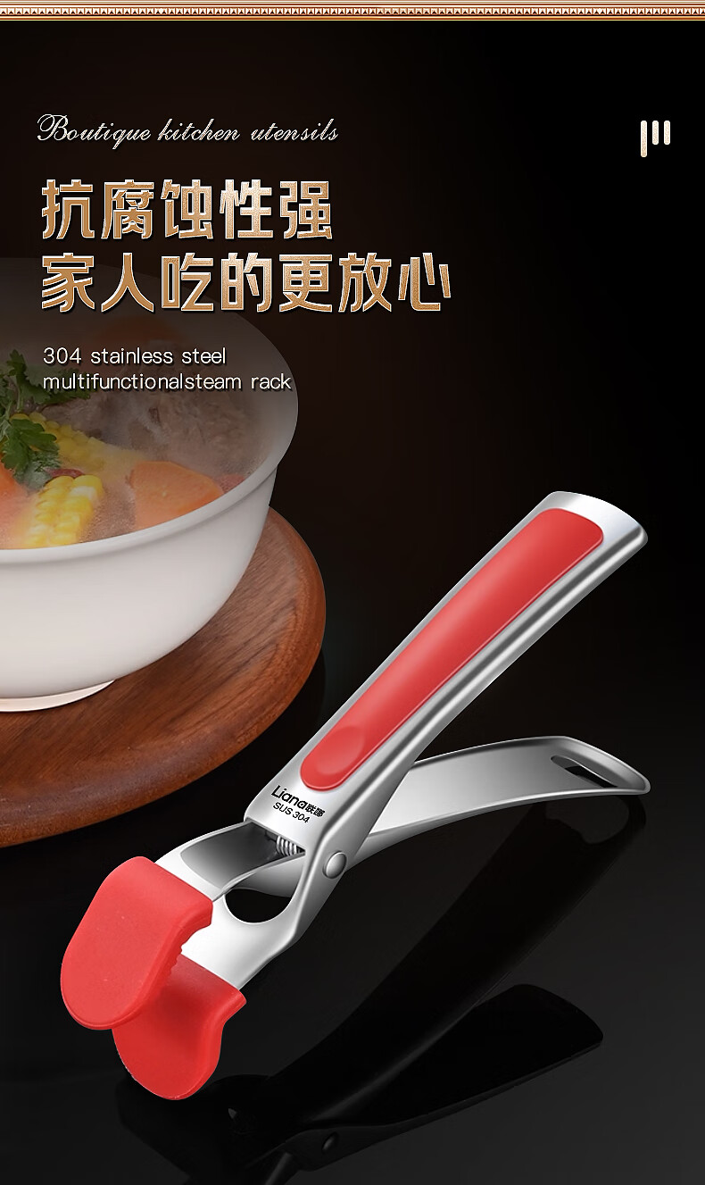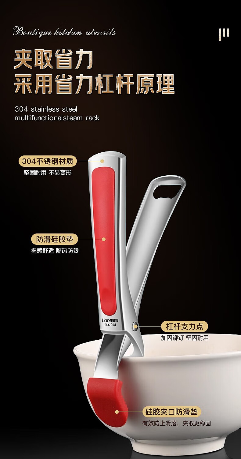 Lianna 304 stainless steel anti-scalding bowl and plate bowl clamp steamer dish lifter anti-slip heat insulation end new artifact eagle beak anti-scalding clip Chinese red