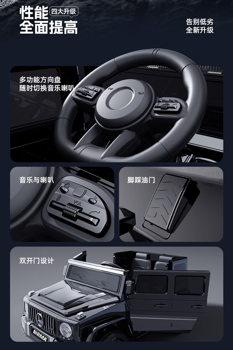 Beibele children's electric car four-wheel 1-3-5-7 year old boy can sit on a double off-road vehicle remote control toy electric car standard black dual drive 12V4 + Bluetooth remote control + swing
