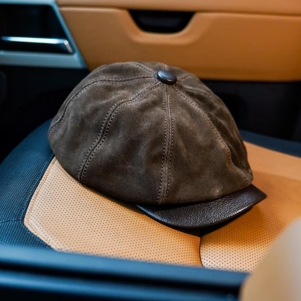 Kawakudaichi genuine leather hat men's cowhide painter's hat men's British beret octagonal hat women's fisherman hat melon skin hat newsboy hat L (55-56cm) adjustable