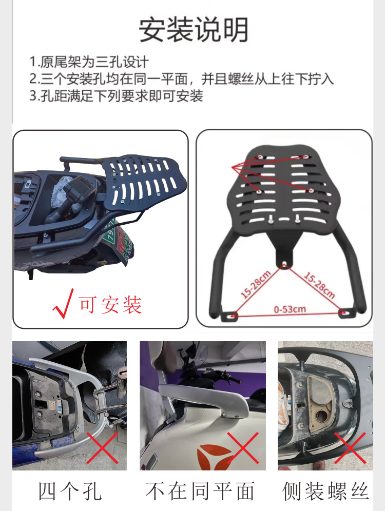 Haofanjie Electric Vehicle Rear Tail Rack Tail Box Trunk Bracket Integrated Rack Universal Shelf Motorcycle Takeout Box Fixer Black Universal Style Thickened Tail Box Rack