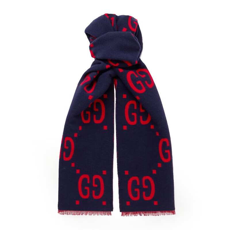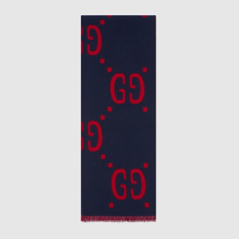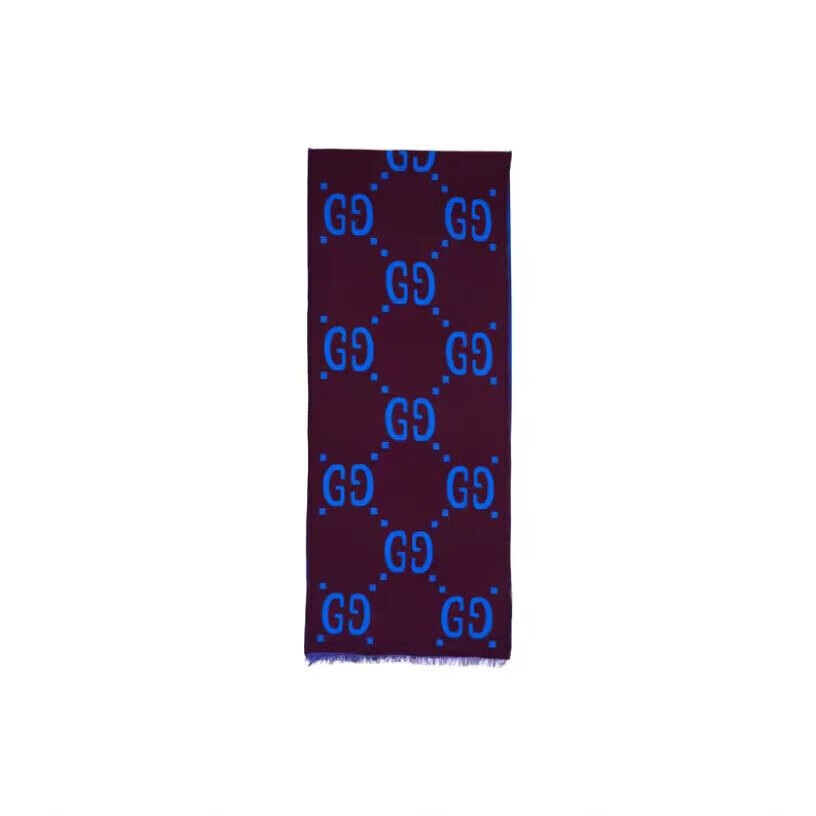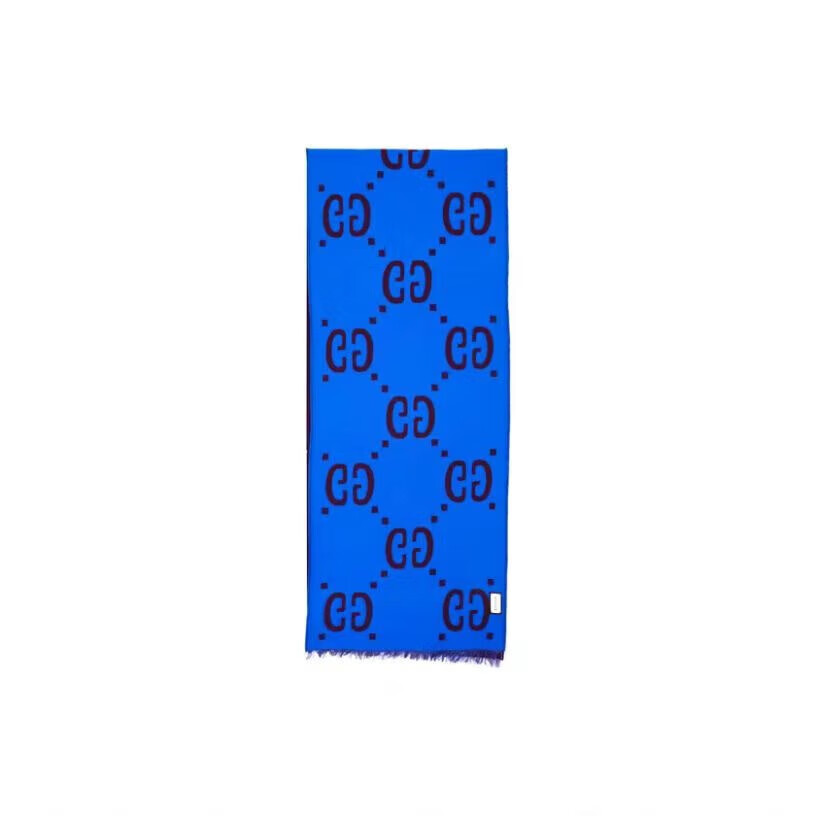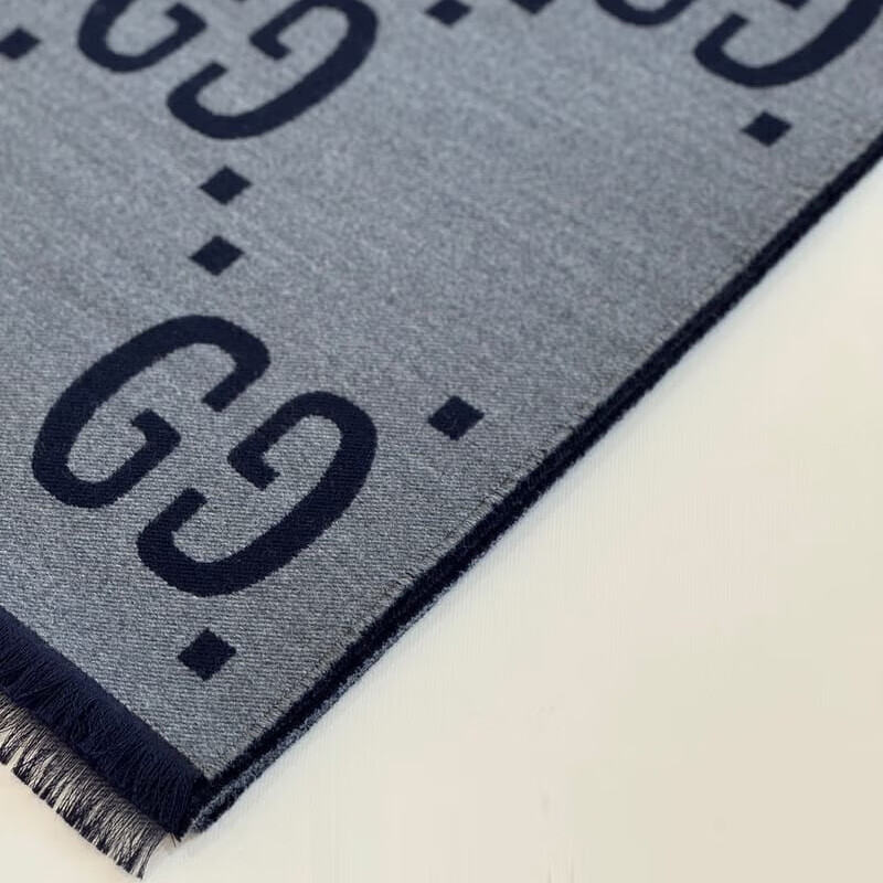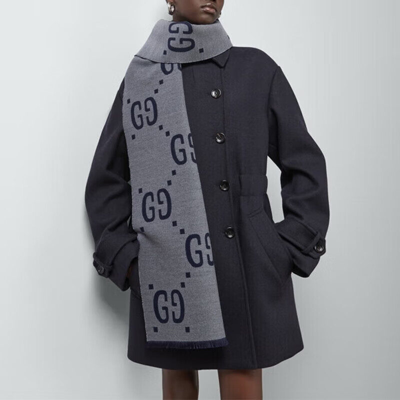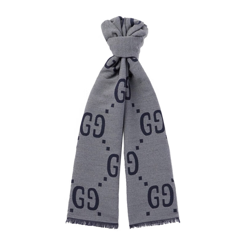 Gucci (GUCCI) scarf double G pattern jacquard wool dark and light color double-sided scarf couple model 190x35cm New Year gift light gray/dark blue 495592 4G350 4063