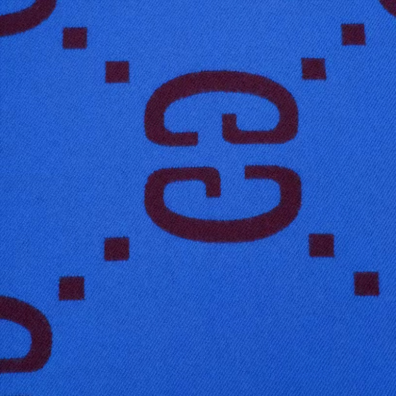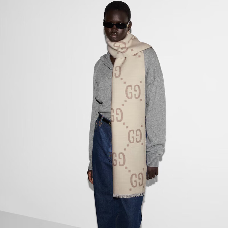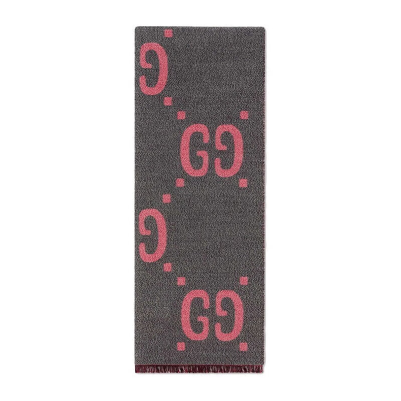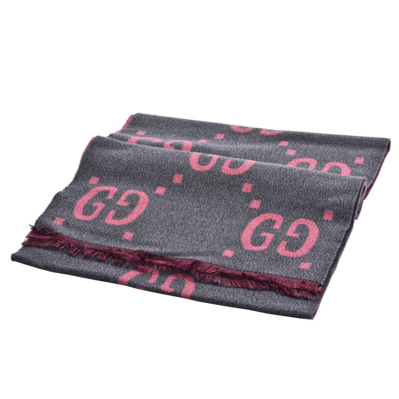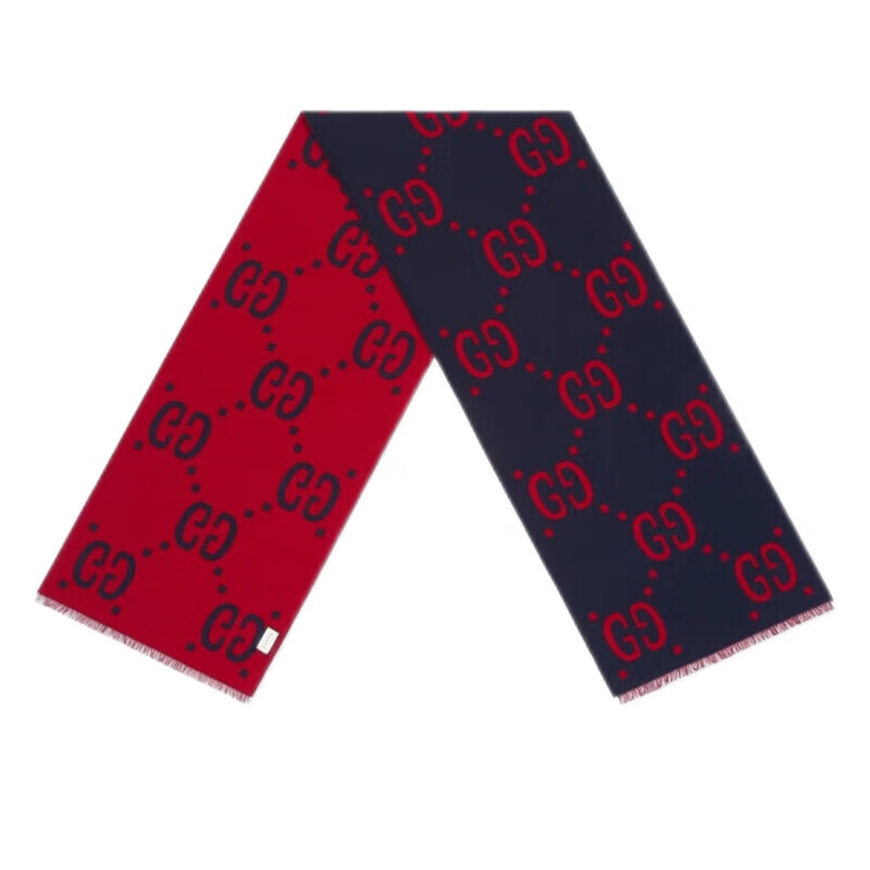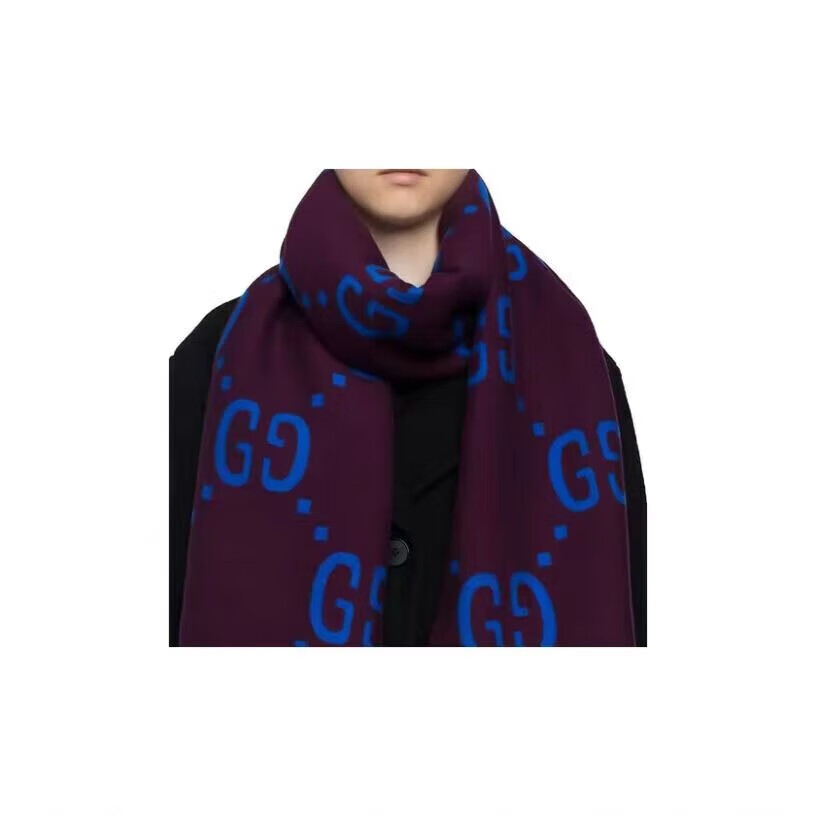 Gucci (GUCCI) scarf double G pattern jacquard wool dark and light color double-sided scarf couple model 190x35cm New Year gift light gray/dark blue 495592 4G350 4063