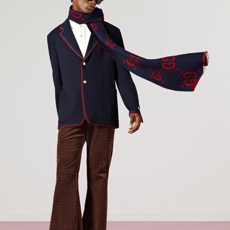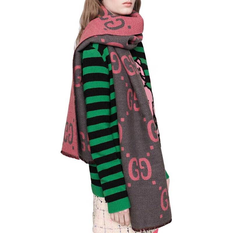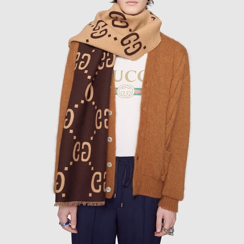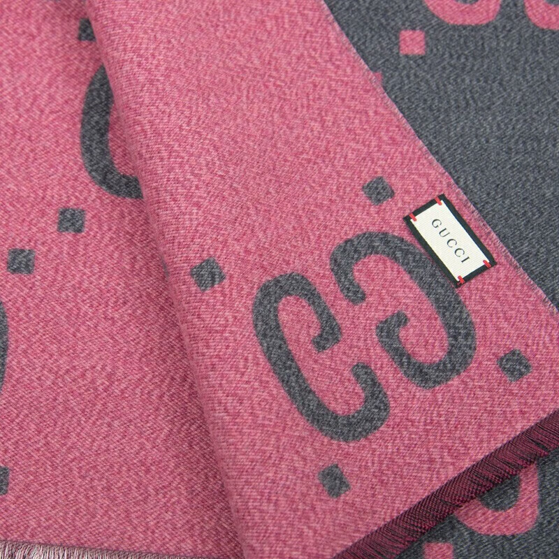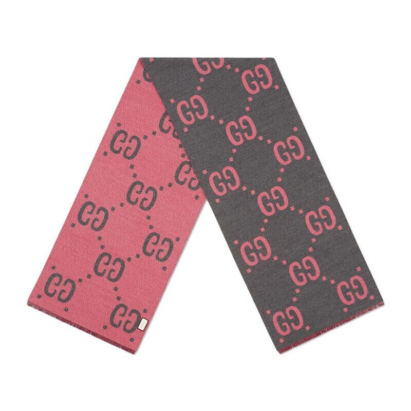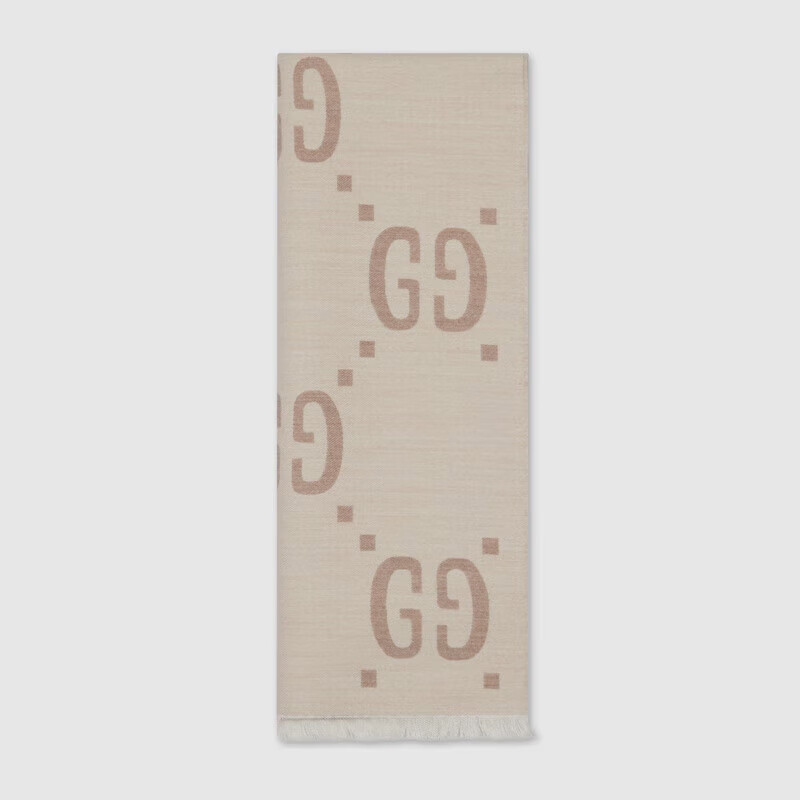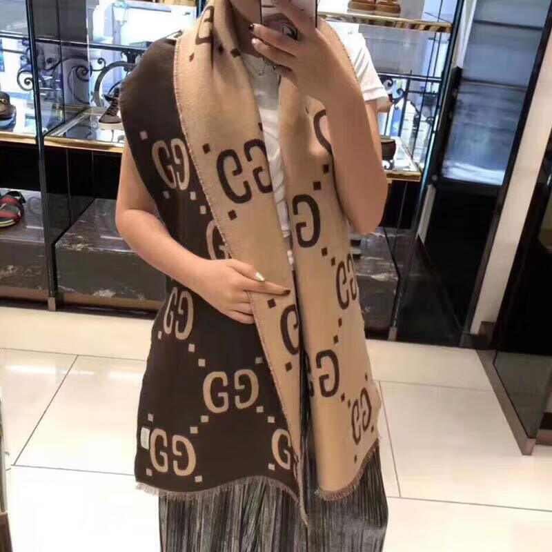Gucci (GUCCI) scarf double G pattern jacquard wool dark and light color double-sided scarf couple model 190x35cm New Year gift light gray/dark blue 495592 4G350 4063