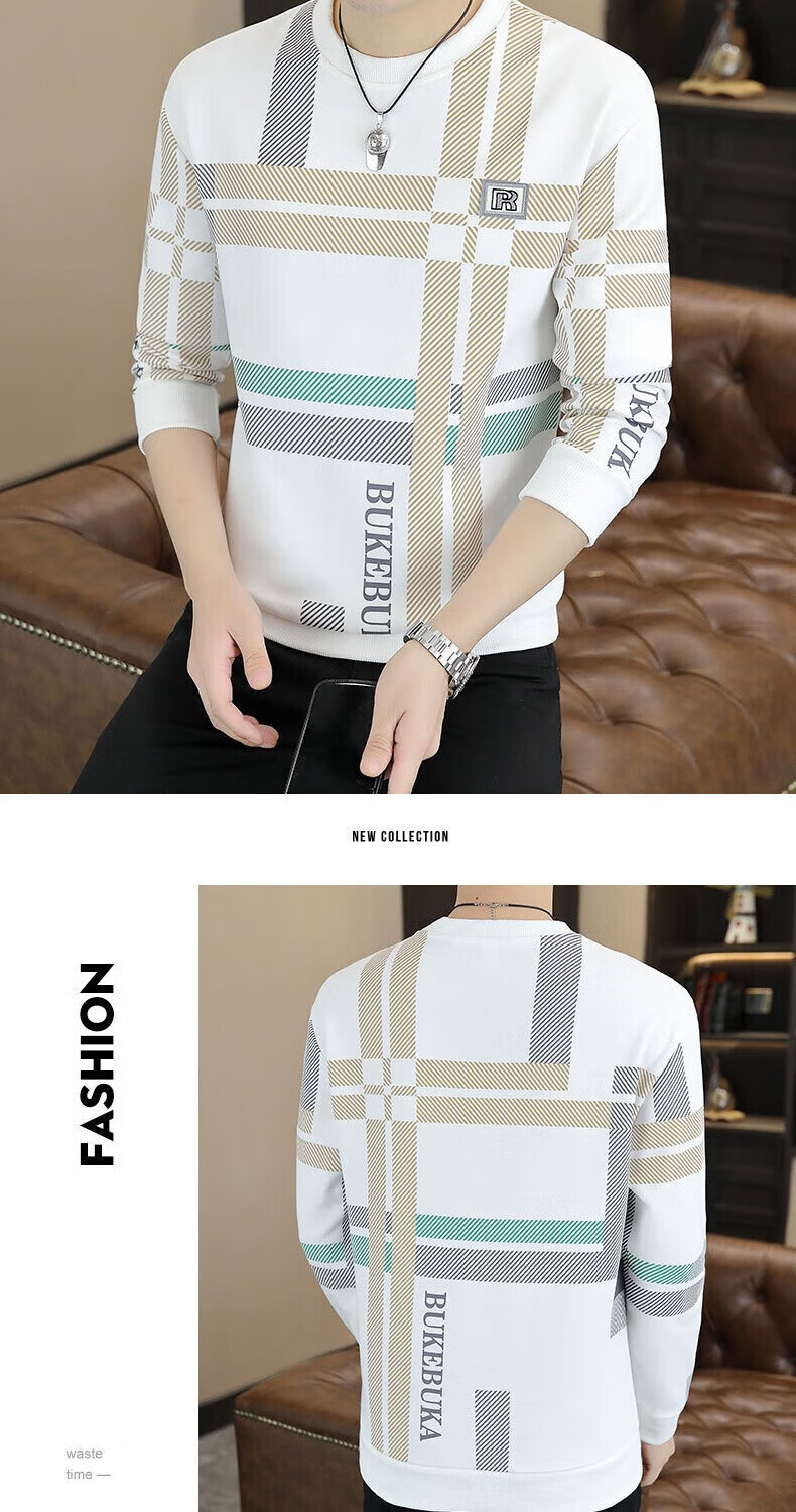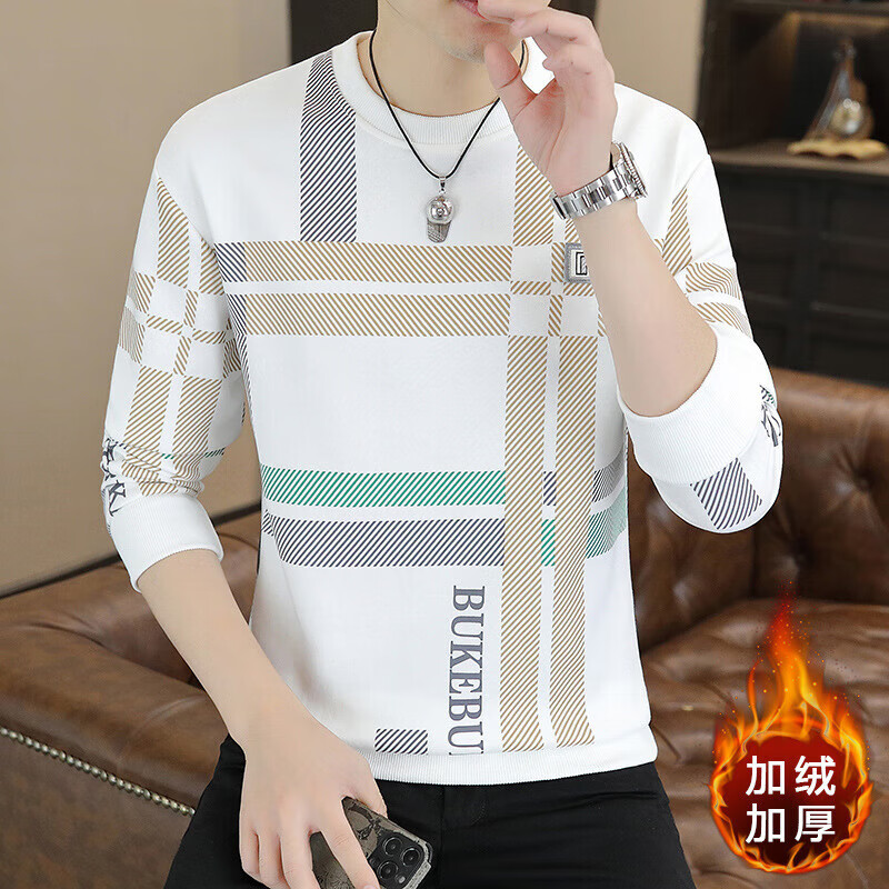 Counter genuine sweatshirt men's autumn and winter trendy slim fit plus velvet thickened warm round neck long-sleeved sweatshirt dk black (velvet thickened) L (recommended 115-135Jin Jin equals 0.5 kg)