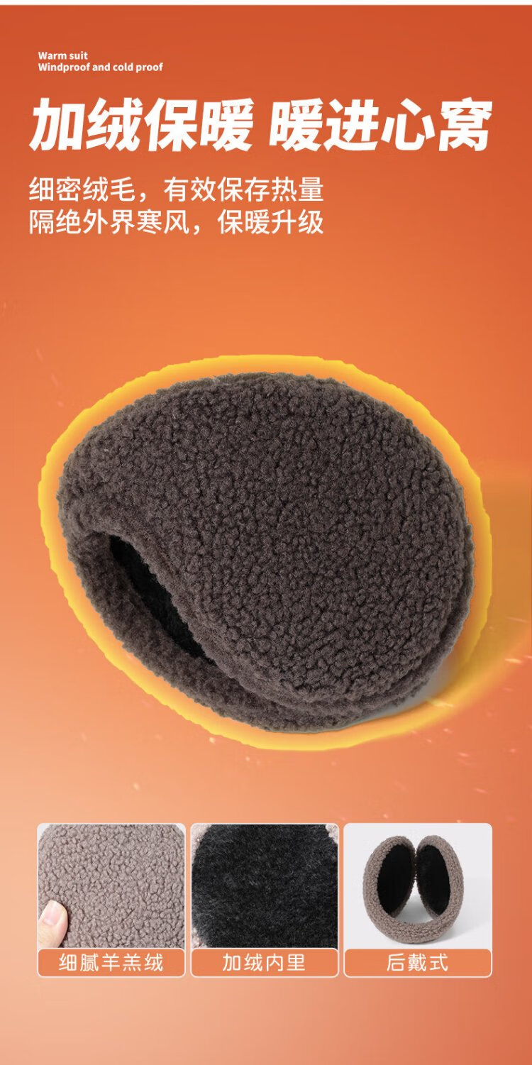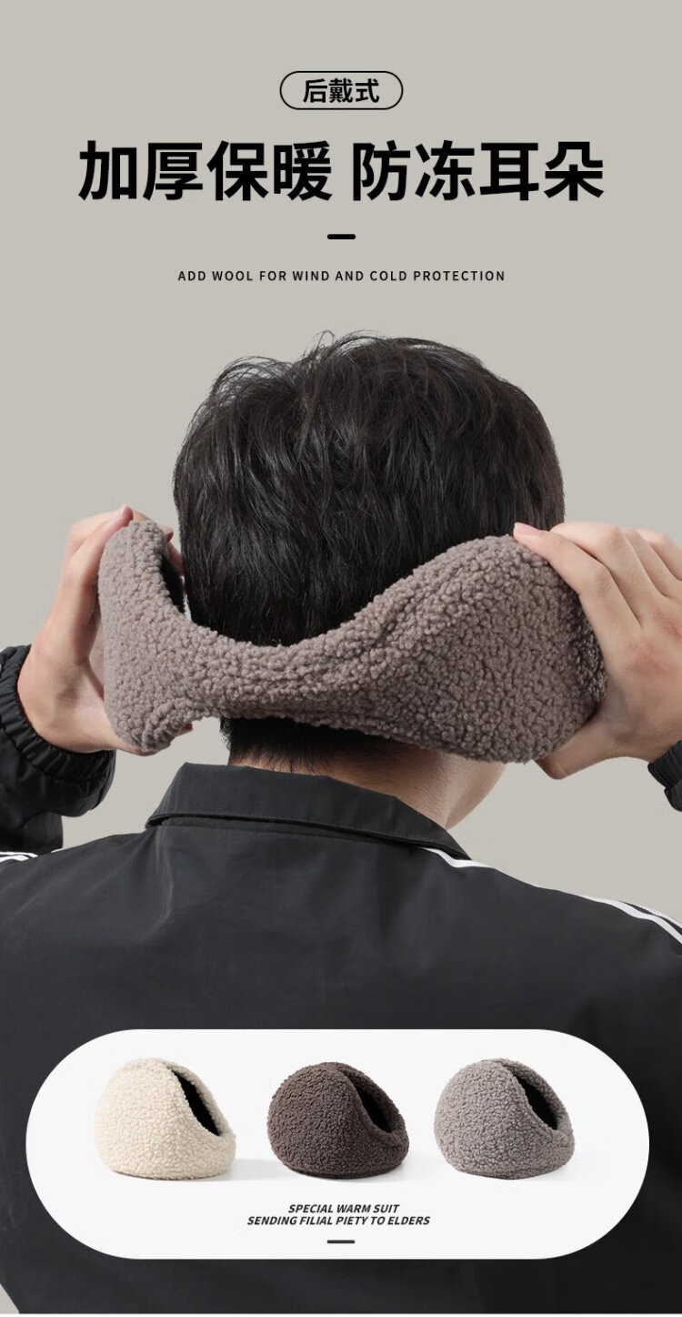 Miniso premium earmuffs, men's back-worn winter cycling warm earmuffs, student ear warmers, cycling anti-cold earmuffs, dark brown, enlarged and thickened
