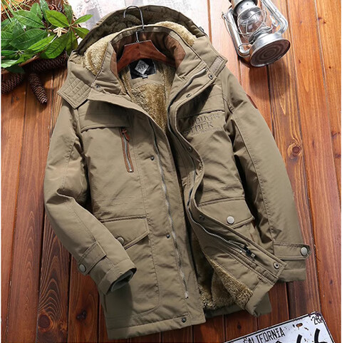 Woodpecker thickened winter coat, men's cold-proof and warm cotton coat, down jacket, men's labor insurance, work casual cotton jacket, men's QC8186 military green 3XL about 145-160Jin Jin is equal to 0.5 kg
