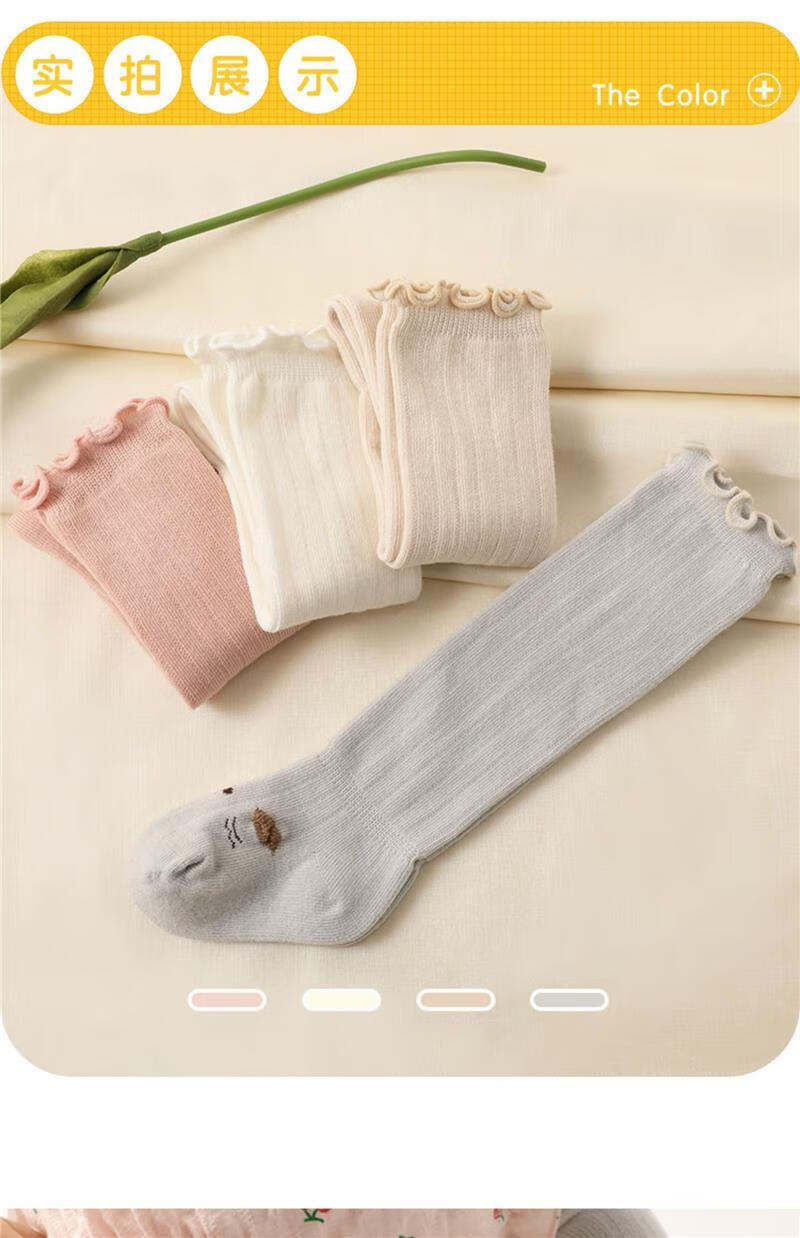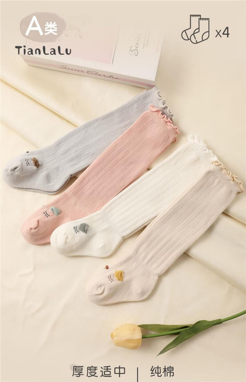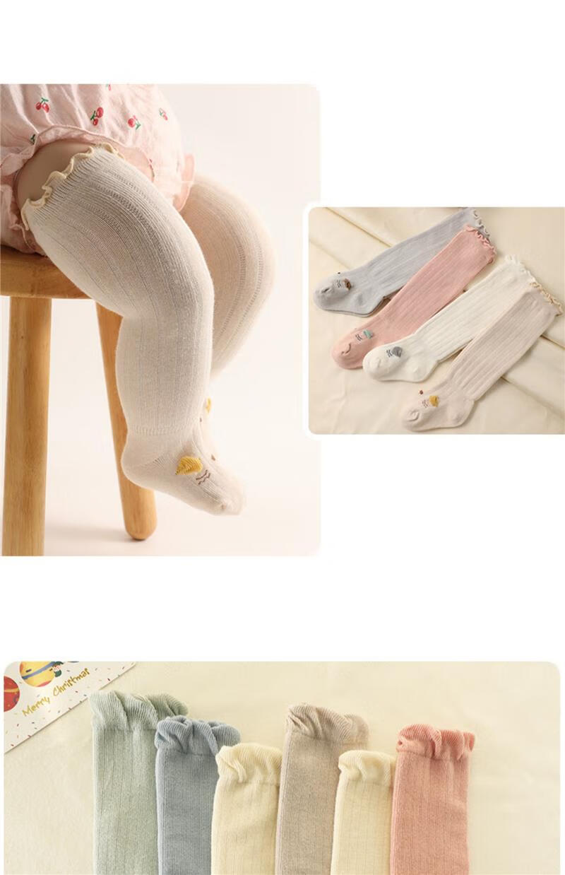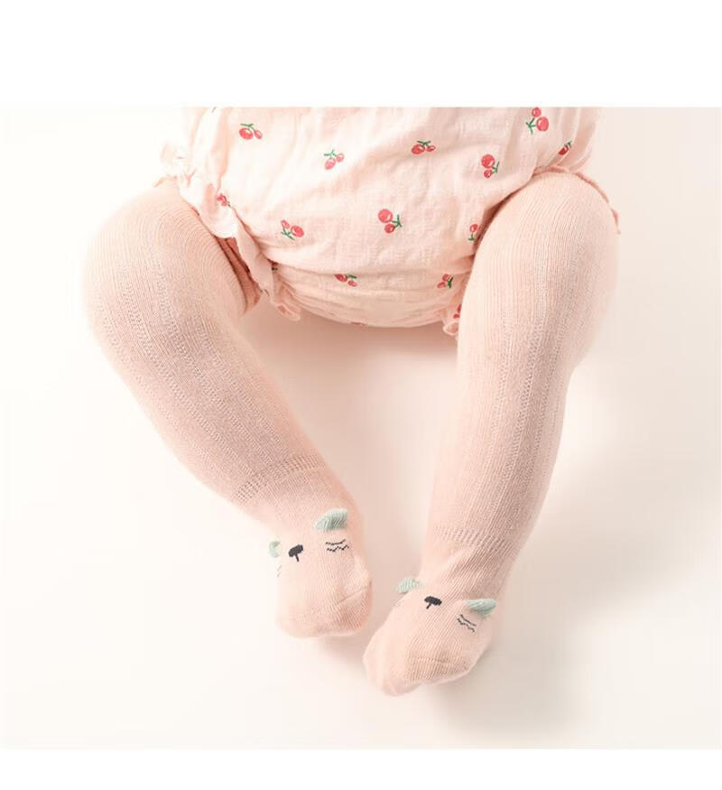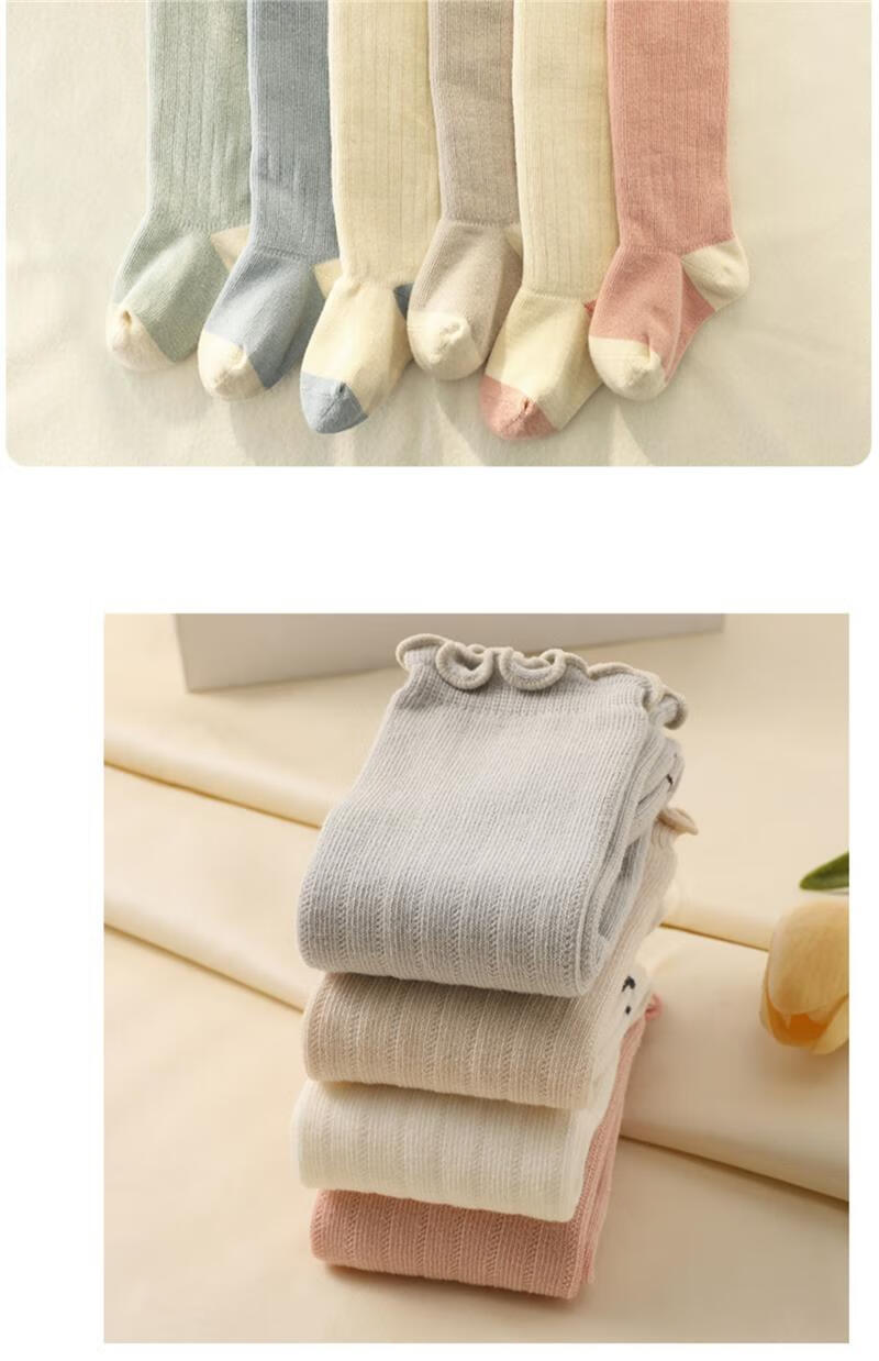Jingyouyu baby stockings autumn and winter pure cotton newborn over-the-knee autumn and winter 0-3 months non-leg A type baby socks autumn and winter pink + khaki 2 pairs 0-6 months S size 0-6 months recommended foot length 8